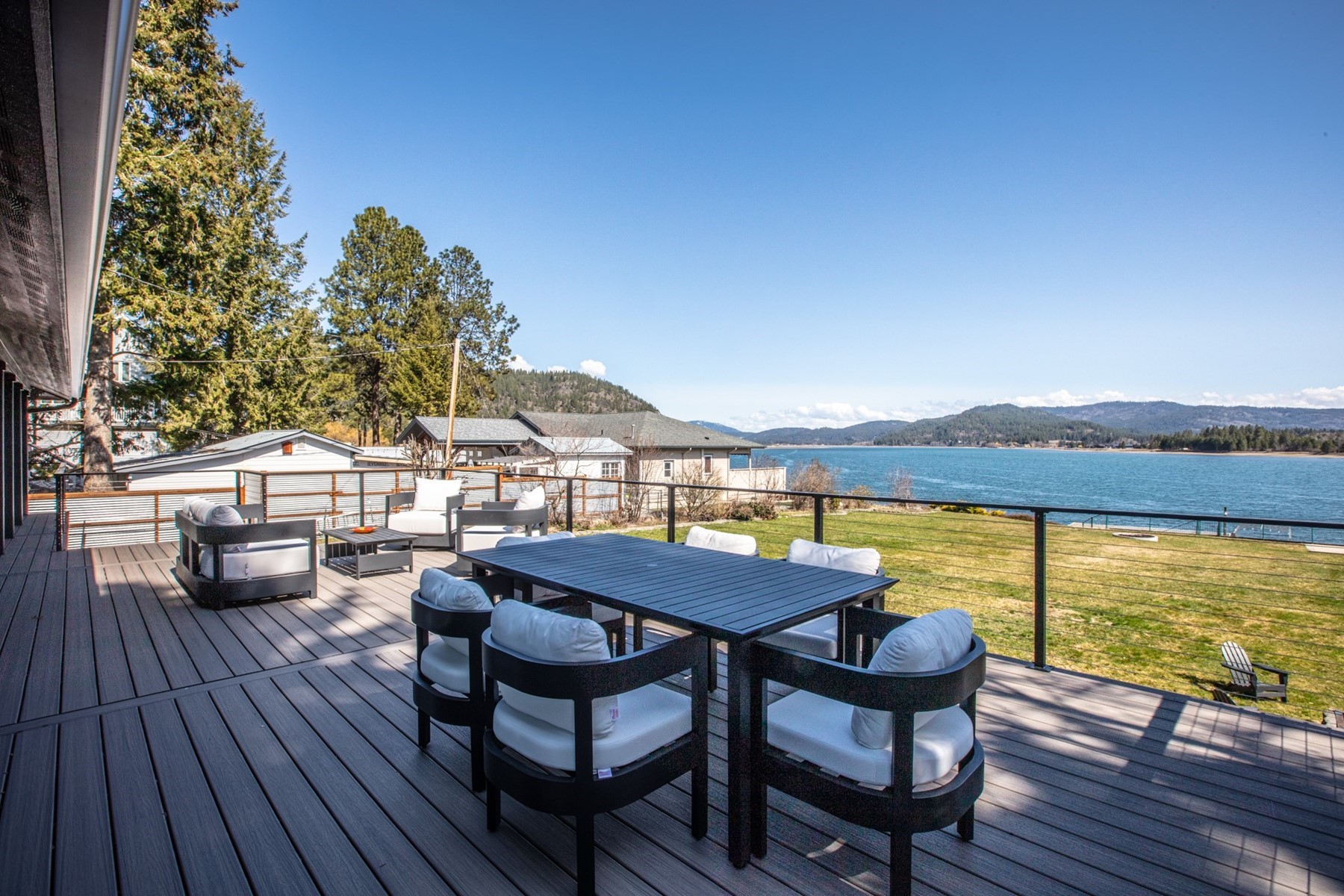 Experience refined waterfront living on .47 level acres with 100 ft of frontage and a private, pristine clear deep-water dock with boat lift in a quiet clam bay, perfect for swimming, paddle sports, motor sports, and fishing off the dock. This 3,500 sq ft home, updated throughout in 2024, offers 4 beds and 3 baths with open living on both levels, expansive windows showcasing spectacular views, gorgeous kitchen featuring quartz countertops, a large island, and new appliances. Quartz finishes continue in the baths and custom bar, with new LVP, carpet, and tile throughout. The home can easily sleep up to 12 and features a Trex deck, multiple outdoor living spaces, and a level yard to the water. Ample parking plus a two-car garage with boat/RV space. Steps to a community beach and boat launch, near golf and hiking, 20 minutes to Sandpoint and close to Schweitzer for year-round recreation.