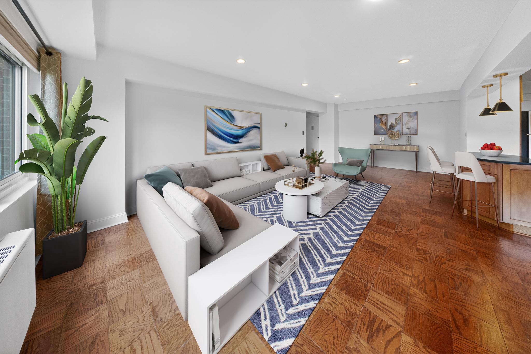 Welcome to this beautifully remodeled 1-bedroom, 1-bath residence in the coveted Towers Condominium. This sophisticated city retreat combines generous proportions with an extensive list of modern updates and full-service amenities, offering an effortless, lock-and-leave lifestyle across 1,045 square feet. The open floor plan features a large living room and separate dining area with ample wall space for art and media. The updated kitchen offers an island with breakfast bar, stainless steel appliances, and tile backsplash. The king-sized bedroom provides excellent closet spaces (two) and room for a full furniture suite or home office corner. Adding value to this spectacular offering is an assigned parking space (separately deeded, tax ID: 1601//3061).Residents of The Towers enjoy a wealth of amenities, including a 24 hour desk person, well-equipped fitness center, beauty salon, large grocery store with wine and liquor, large outdoor swimming pool, tennis court, elegant lobby, beautifully maintained common grounds, and more.