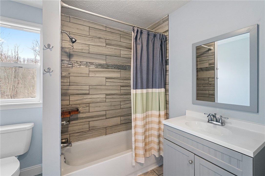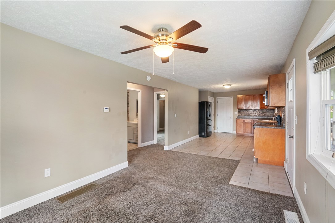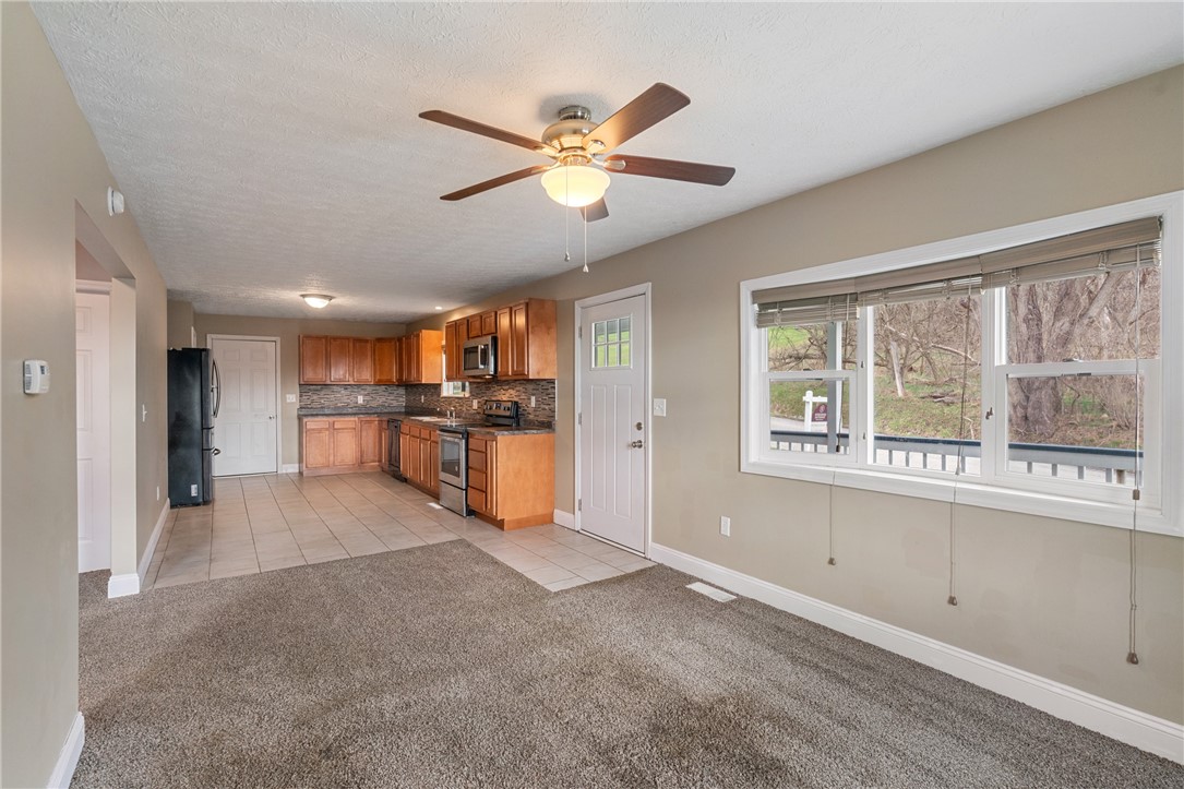 Whether you're searching for the perfect starter home or ready to simplify and downsize, this charming property offers comfort, style, and easy living. Step inside to a spacious kitchen featuring beautifully tiled floors, abundant cabinetry, generous counter space, and sleek appliances. It's a functional, modern space designed for cooking, gathering, and everyday convenience. The open-concept layout seamlessly connects the kitchen, dining area, and living room. The living room is anchored by a large bay window that fills the space with natural light, creating a warm and welcoming atmosphere ideal for relaxing, working, or entertaining. The primary bedroom feels airy and inviting, complete with a walk-in closet. Downstairs, you'll find a fully finished basement that offers incredible flexibility. Whether you envision a cozy hangout, a game room, or a private MIL suite, this space is ready for it all. It features a beautifully tiled full bathroom and its own separate entrance - ideal for guests or extended living. Basement has been fully waterproofed and has newer LVP flooring (2024)! Step outside to a large, mostly flat backyard, perfect for play, gardening, or simply relaxing while you take in the surrounding wildlife. The property offers the peace of an idyllic country setting while still keeping you close to everyday conveniences. You're just minutes from Washington, PA, Tanger Outlets, shopping, restaurants, and more. With easy access to Rt 70, commuting is a breeze. To top it off, the home was completely remodeled in 2017 and has been thoughtfully maintained ever since. All you need to do is move in!