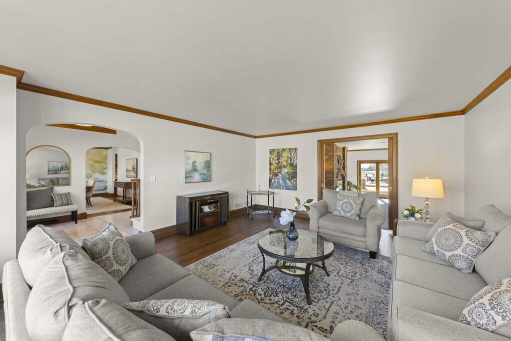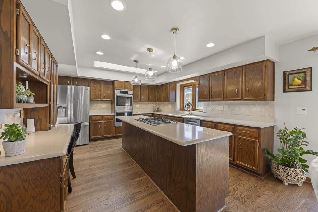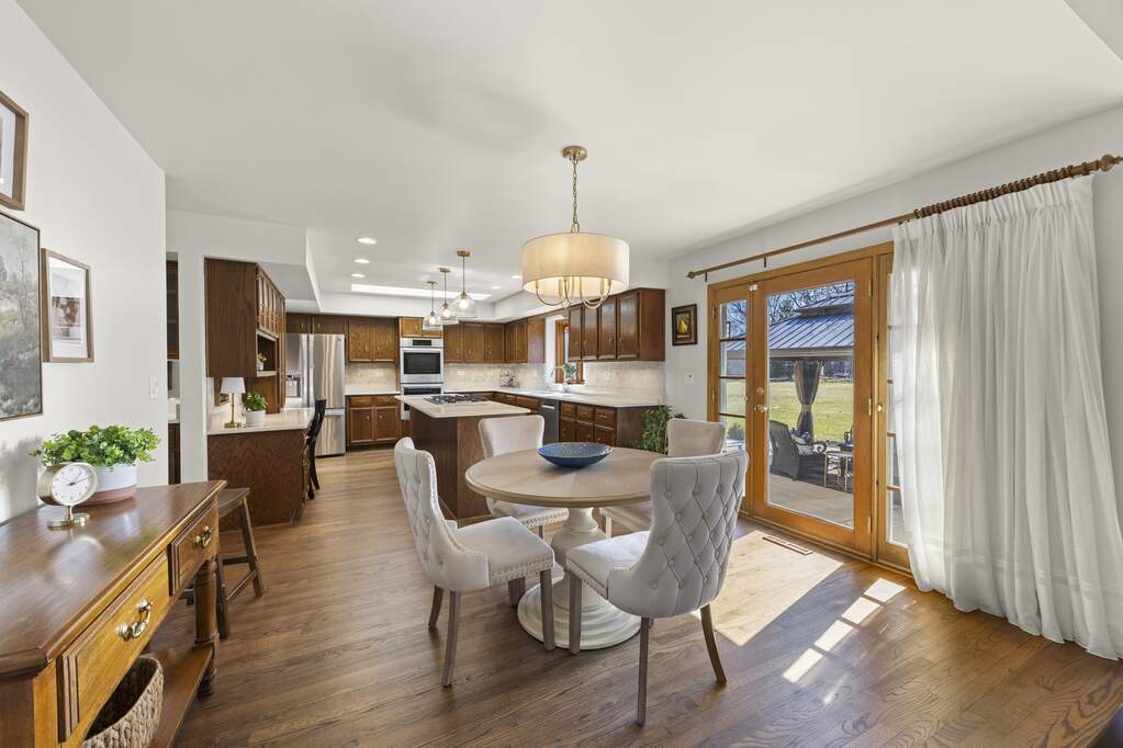 Located in the prestigious Woods of Cantigny, this exceptional brick estate sits in one of the area's most distinctive residential neighborhoods. Surrounded by protected forest preserves, the community is known for its mature trees, expansive homesites, and architectural individuality, with each residence situated on a minimum three quarter acre parcel. Spanning nearly 4,000 square feet, the home showcases rich walnut hardwood floors, intricate millwork, and striking wood beam accents throughout. A grand two story foyer welcomes guests, while large windows fill the home with natural light. The thoughtfully designed main level blends elegance and functionality with a designated office, formal dining room, and a functional butler pantry connecting the kitchen and dining spaces. A dual sided fireplace anchors the primary living areas, creating a warm and inviting atmosphere. The finished basement with wet bar creates an inviting space for entertaining and gatherings. A dedicated sound insulated media room on the second level offers flexible living space that can easily function as a fourth bedroom, home theater, or private retreat. Additional highlights include a three car garage and separate yard storage shed. Meticulously maintained, the home features numerous updates including fresh interior paint, updated lighting and electrical outlets, newer appliances, HVAC replaced in 2023, exterior painted and windows repaired or replaced in 2025, roof less than 10 years old, a leaf guard gutter system, and radon mitigation system. Conveniently located with easy access to major expressways and Northwestern Medicine Central DuPage Hospital, offering the perfect balance of privacy, craftsmanship, and convenience.