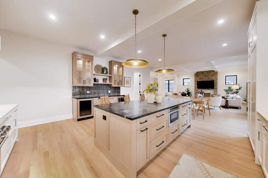 READY NOW! Brand NEW construction by a premier Wilmette builder crafting luxury homes since 1989. Offering 6,152 sq ft on a generous lot in sought-after New Trier district. This 5 bed + office & 3rd floor bonus room (2nd office) 5.1 bath residence blends timeless craftsmanship with modern design. Sun-filled main level features ten foot ceilings, 3 1/4" white oak floors, private office with custom built-ins, and a stunning family room with brick fireplace (gas starter + wood-burning). Chef's kitchen boasts a full Thermador suite including full-size refrigerator & freezer, oversized range with double ovens, two dishwashers, 9' quartzite island, custom rift-cut white oak cabinetry, Venetian plastered hood, walk-in pantry plus beverage & wine fridges. Luxe primary suite with vaulted ceiling, heated marble floors, soaking tub, oversized shower and expansive walk-in closet. Second-floor laundry. Second bedroom with double closets and ensuite bathroom. Third and fourth bedrooms share a beautiful Jack & Jill bathroom. Third-floor bonus room with full bath. Finished lower level includes a recreation room, 5th bedroom, full bathroom, exercise room & storage. Sonos (interior & patio), 300 sq ft patio, attached 2-car garage. Beautiful, tree lined quiet street. A must see for today's living!