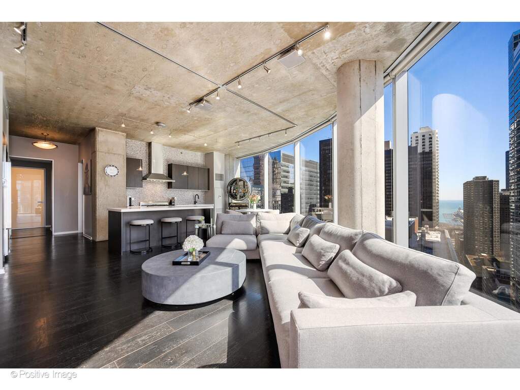 Enjoy spectacular lake and city views from floor-to-ceiling windows on the 28th floor of this architecturally significant Helmut Jahn-designed luxury high-rise in Chicago's coveted Streeterville neighborhood. This 3-bedroom, 2.1-bath loft-style residence spanning approximately 1,746 square feet blends modern architecture with sophisticated design, featuring exposed concrete ceilings and columns, Scandinavian hardwood floors, and custom Rimadesio Italian glass doors. The open-concept living and dining spaces are expansive and light-filled, designed for both everyday living and effortless entertaining while showcasing dramatic skyline and lake views. Clean, modern finishes and thoughtful architectural details create a refined yet comfortable urban living environment. The designer kitchen is beautifully appointed with quartz countertops, top-of-the-line appliances, abundant custom cabinetry, and a large center island with breakfast bar seating, ideal for casual dining and entertaining. Just off the kitchen, a covered private balcony provides the perfect space for grilling, relaxing, and enjoying the vibrant city backdrop. The primary suite is a peaceful retreat, filled with east-facing natural light and featuring a spacious walk-in closet recently redesigned for optimal storage. The ensuite spa bath includes dual vanities, a soaking tub, and a separate glass-enclosed shower. Two additional generously sized bedrooms with floor-to-ceiling windows and custom closets share a full hall bath with tub/shower combination. Additional highlights include a powder room, in-unit laundry, and a fully integrated Control4 Smart Home system, allowing lighting, thermostats, and AV equipment to be controlled through a dedicated smart home app, with the ability to easily add smart locks, cameras, and additional automation. This full-service luxury building designed by renowned architect Helmut Jahn offers exceptional amenities including 24-hour door staff, a beautifully reimagined rooftop sundeck with grills and fire pits, panoramic city and lake views, resident lounge, fitness center, indoor lap pool, and dog run. Located in the heart of Streeterville, residents enjoy immediate access to Chicago's lakefront, Michigan Avenue shopping, Navy Pier, the Riverwalk, Millennium Park, the Museum of Contemporary Art, Northwestern Hospital campus, and Lake Shore Drive, placing the best of downtown Chicago just moments from your door. One deeded garage parking space (P 12-17) is available for $50,000.