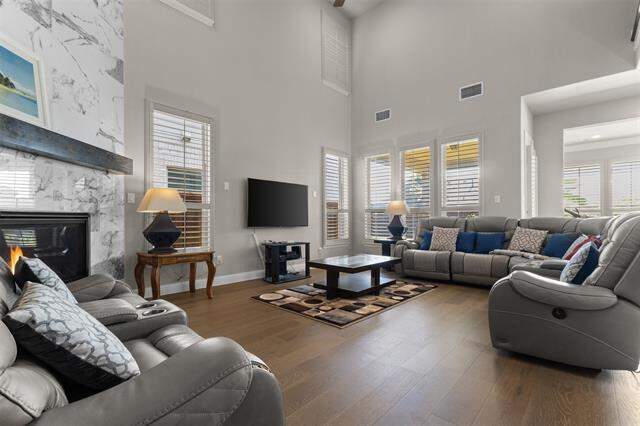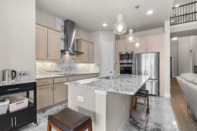 Beautifully maintained 2-story home located at 3404 Calico Drive in Irving. Built in 2018, this spacious residence offers 5 bedrooms, 4 full baths, and 3,293 sq. ft. of living space with numerous updates throughout. The first-floor features engineered hardwood floors and an open-concept layout, creating a seamless flow between the living, dining, and kitchen areas. The gourmet kitchen is equipped with a large center island, granite countertops, an electric cooktop, and two built-in ovens-perfect for cooking and entertaining. The main level also includes the primary suite with a private bath and a secondary bedroom with an additional full bath, ideal for guests or multi-generational living. Upstairs, you'll find three generously sized bedrooms, two full baths, and a media room, offering plenty of space for relaxation, entertainment, or working from home. Outdoor living is equally inviting with a covered patio, a fenced backyard, and a beautifully maintained garden. Additional highlights include a 2-car garage, modern finishes, and thoughtful updates that make this home move-in ready. This property also offers an unbeatable location. Situated just minutes from DFW International Airport, commuting and travel are convenient and stress-free. Nearby Las Colinas provides endless options for fine dining, shopping, and entertainment, while several golf courses, parks, and walking trails are within easy reach. With quick access to major highways, this home combines comfort, style, and functionality in one of Irving's most desirable neighborhoods.