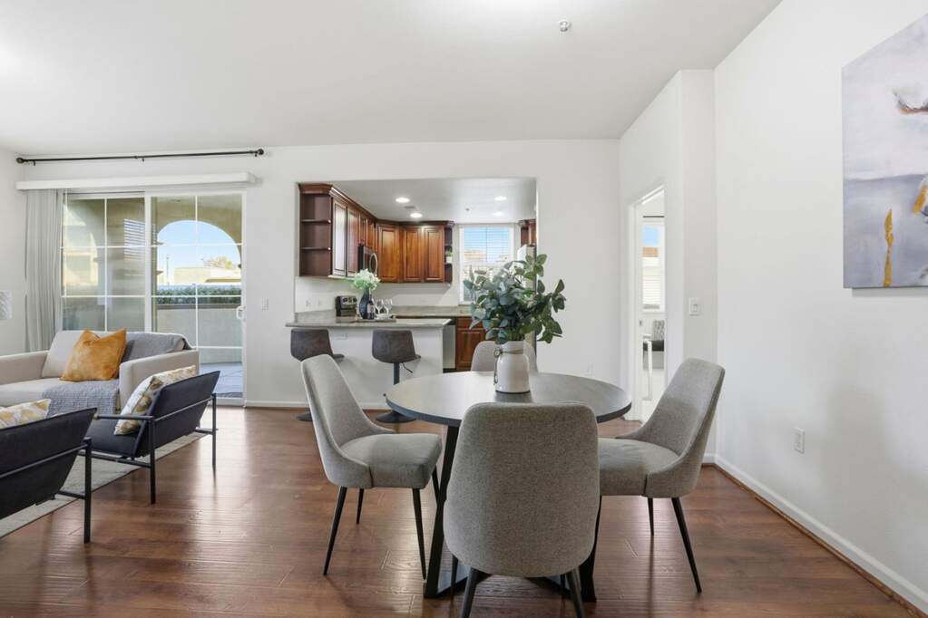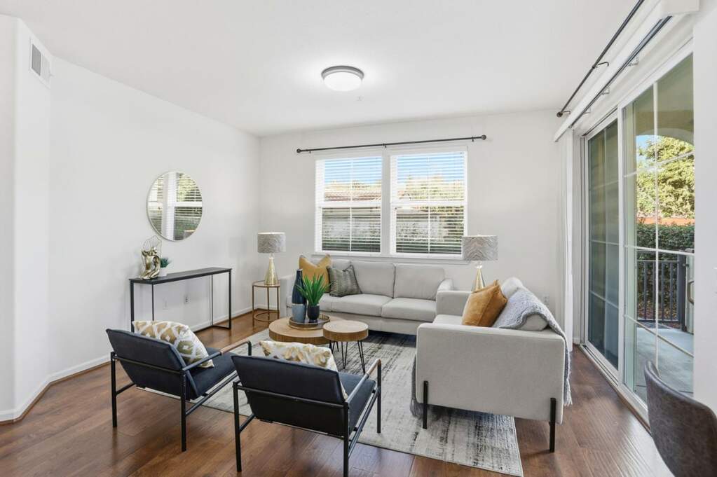 Welcome to your new single story home in Milpitas with no steps, and move-in ready! Single story condo! Bottom floor, with easy access! from outside. One of the few units with 2 car separate enclosed garages, and an extra storage closet(approx, 4 X 8). This South-facing corner unit includes many windows to maximize light throughout each room. The home features 1421sf of living space with three bedrooms and two full baths with indoor laundry.Tasteful upgrades include manufactured hardwood floors, lush carpet, and tile floors. The kitchen includes stainless steel appliances with dishwasher, microwave and refrigerator with a breakfast bar and additional dining area. Multiple bedrooms with walk-in closets. The primary suite includes dual sinks, an oversized tub and stand alone shower. The oversized private patio area is perfect for enjoying evening sunsets, dining alfresco and getting some fresh air. This unit is easy access to the park, the pool, the gym and spa amenities.Enjoy excellent Milpitas schools. Close to Bart Station, VTA Light Rail and bus stations, major freeways and shopping centers. This is one you won't want to miss!