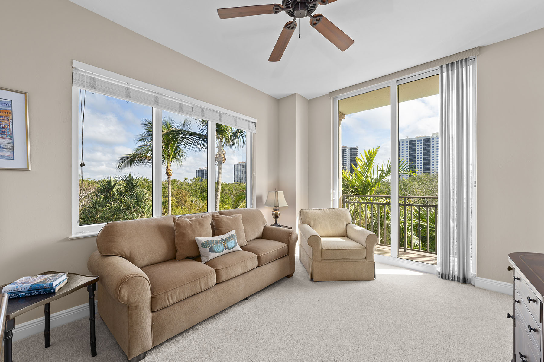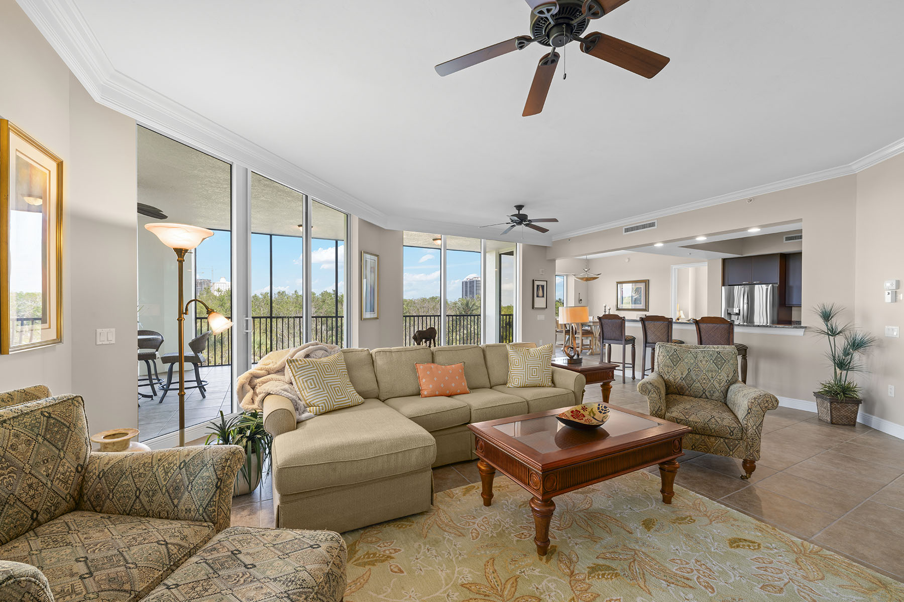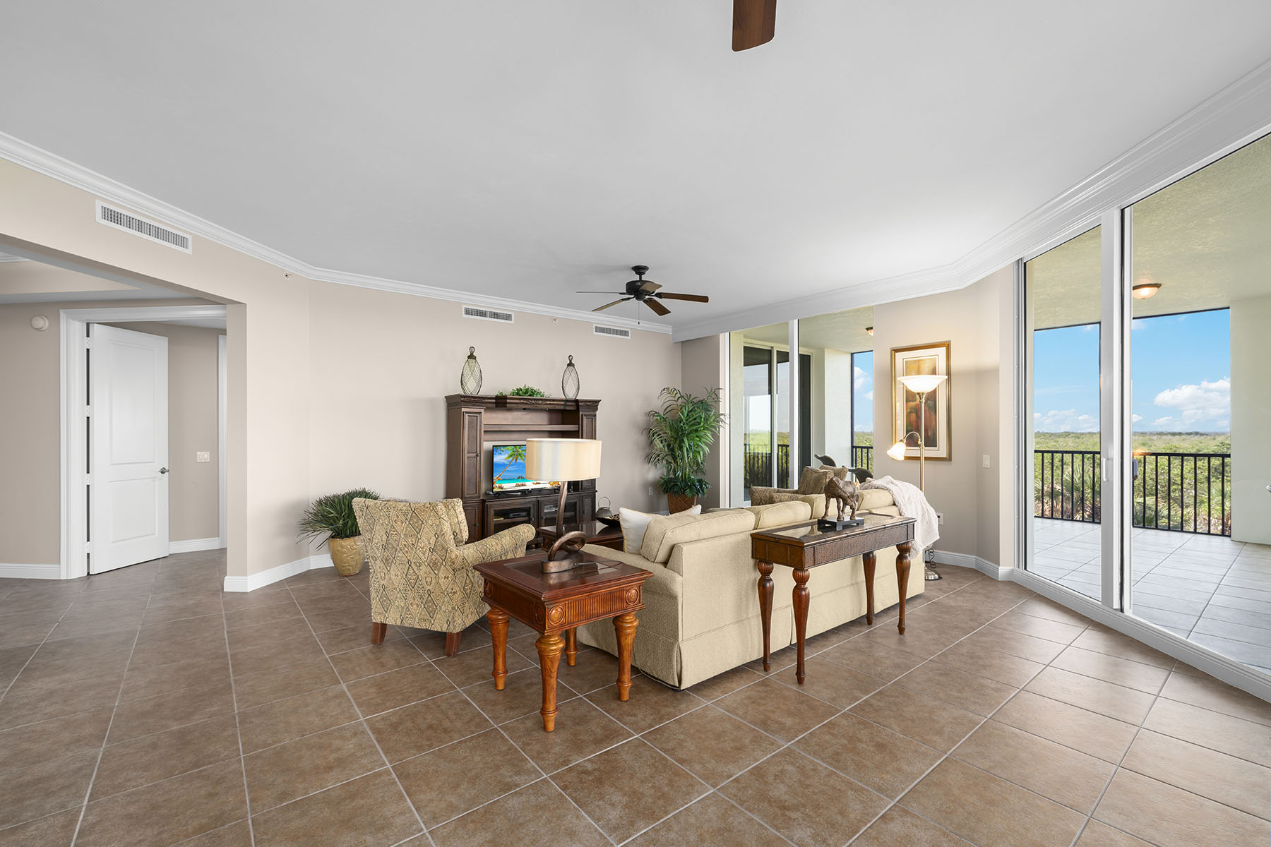 Welcome to this bright and private corner residence in Castella, where comfort, elegance and beauty of Southwest Florida come together. Positioned as a desirable corner residence with additional windows, this exceptional home is filled with natural light and offers enhanced privacy along with beautiful views of the surrounding landscape. From the moment you enter this inviting mid-rise residence, you'll notice the open, airy floor plan designed for effortless entertaining and relaxed everyday living. Floor-to-ceiling sliding doors lead to your private terrace, showcasing panoramic views of lush natural preserves and the gentle morning mist of Estero Bay. The spacious living areas flow seamlessly onto a sun-filled, fully tiled lanai, a setting to enjoy morning coffee, dine outdoors or unwind while taking in the peaceful scenery. Additional conveniences include two assigned parking spaces in a secure, controlled-access garage, along with a beautifully designed entry courtyard with fountains and bicycle storage. As part of The Colony Golf & Bay Club, residents enjoy exclusive access to a private beach island along with a wide array of amenities, including canoeing, kayaking, pickleball, bocce and tennis, all included in your monthly fees with no additional membership required. The owner's suite is a tranquil retreat, ideally just off the lanai to capture abundant natural light and serene views. It features a generous walk-in closet and a spacious bath. Each of the three bedrooms offers privacy with its en-suite bath, providing comfort and convenience for family and guests. The well-appointed kitchen is stylish and functional, featuring expansive cabinetry, sleek stainless steel appliances and a center island with abundant storage, ideal for meal preparation and casual dining. Castella residents enjoy one of the most spectacular resort-style pools in the area, complete with a cascading waterfall, heated tropical pool and relaxing spa. The social pavilion and sun deck, surrounded by lush tropical landscaping, provide a gathering place with convenient barbecue grills for entertaining. Additional conveniences include two assigned parking spaces in a secure, controlled-access garage, along with a beautifully designed entry courtyard with fountains and bicycle storage. As part of The Colony Golf & Bay Club, residents enjoy exclusive access to a private beach island along with a wide array of amenities, including canoeing, kayaking, pickleball, bocce and tennis, all included in your monthly fees with no additional membership required.