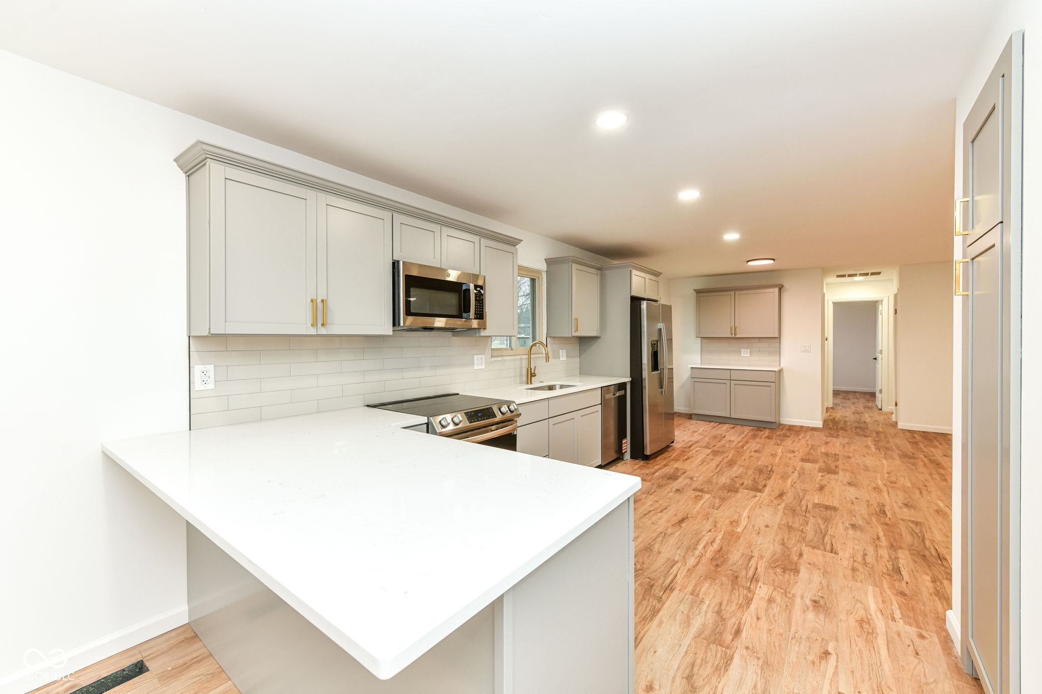 Beautifully renovated move-in ready ranch home with modern updates throughout! Features include new luxury vinyl plank flooring, fresh interior paint, and LED recessed lighting in the kitchen, dining, living areas, hallway, and bedrooms. The updated kitchen offers new cabinets, quartz countertops, and a subway tile backsplash. Both bathrooms have been refreshed with new cabinetry and tile, with a barn-style sliding glass shower door in the primary bath. Additional upgrades include all new interior doors, trim, baseboards, and modern switches and outlets throughout. Exterior improvements include fresh paint, new mulch for landscaping, and a roof that is only 4 years old. Truly move-in ready!