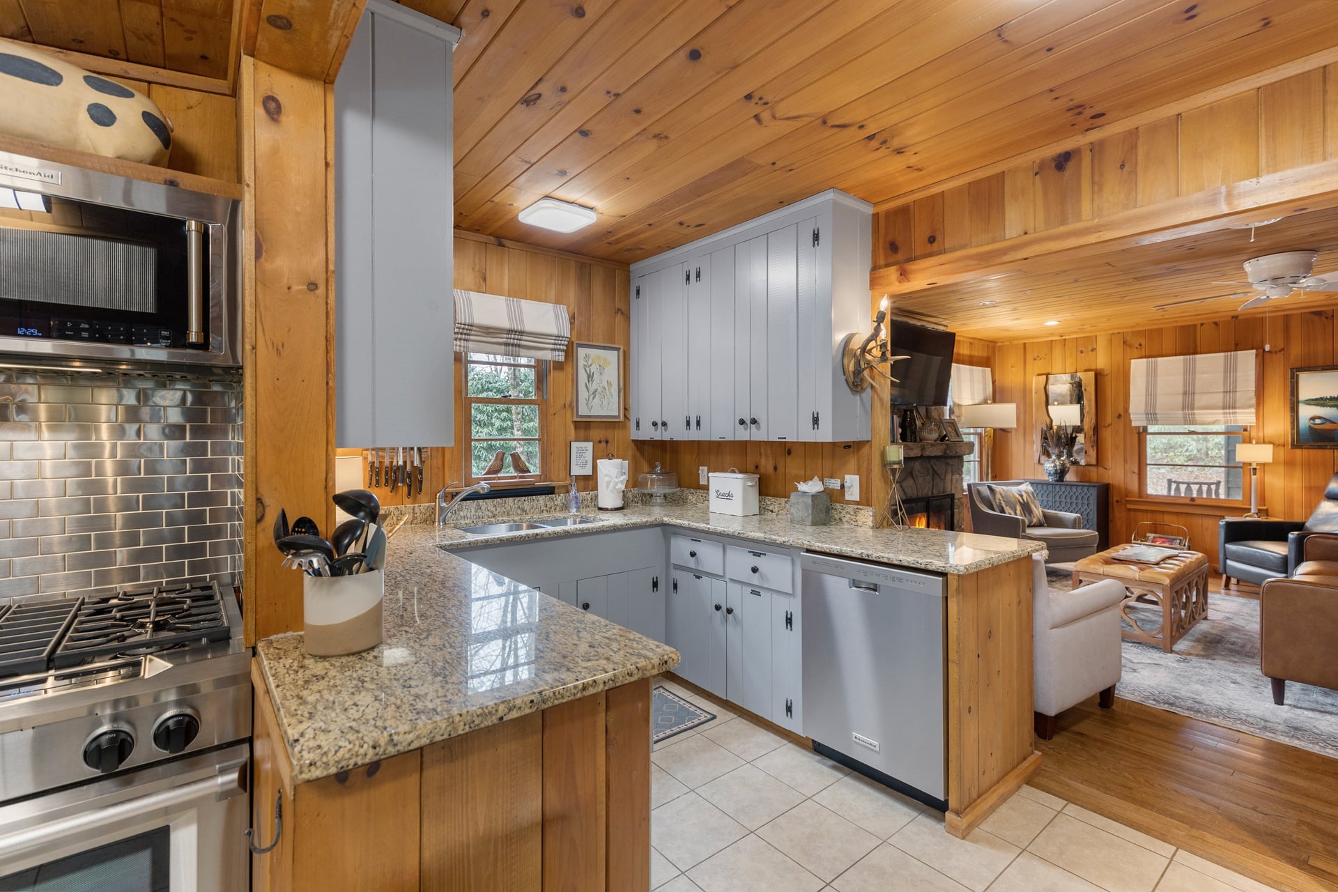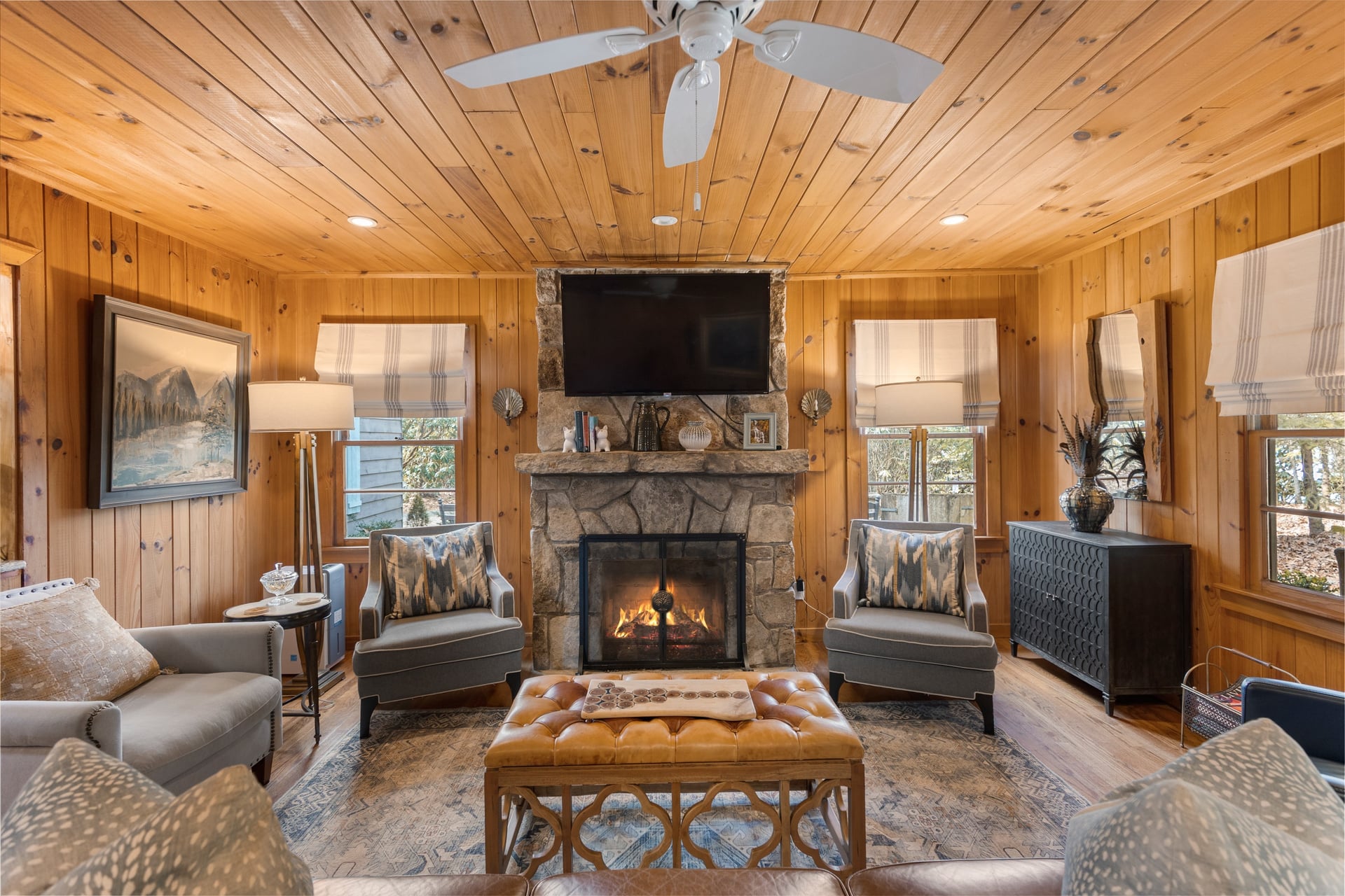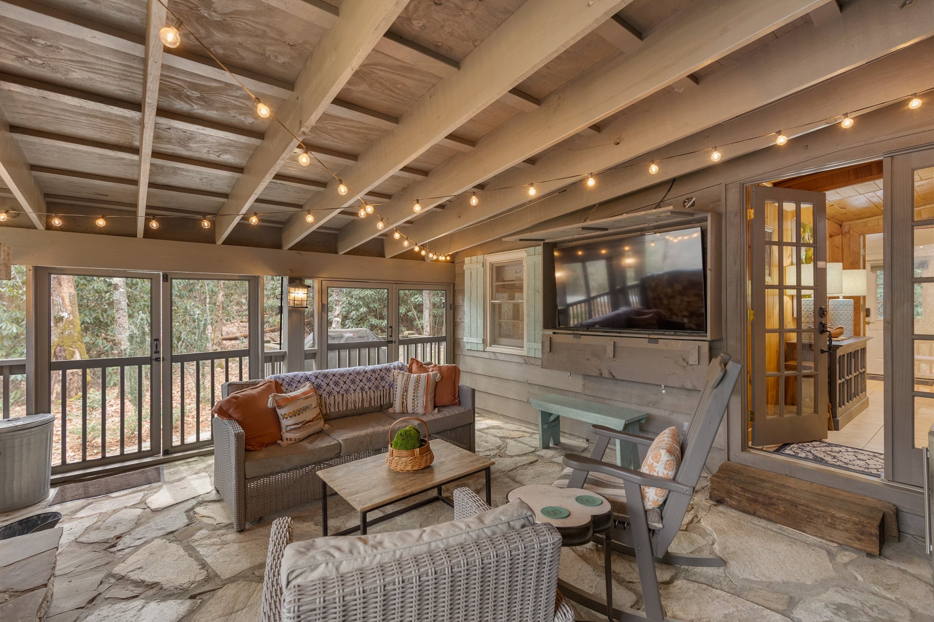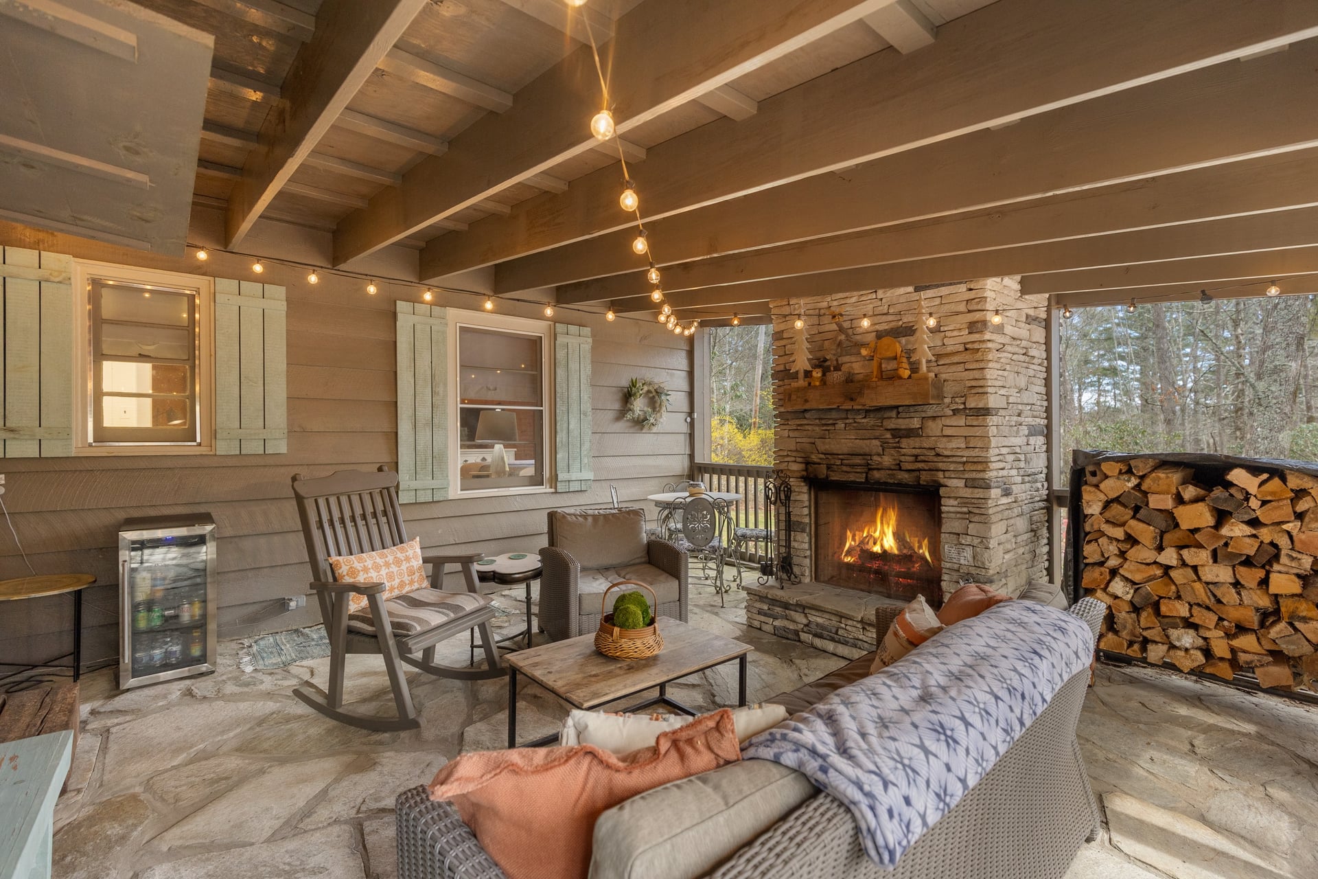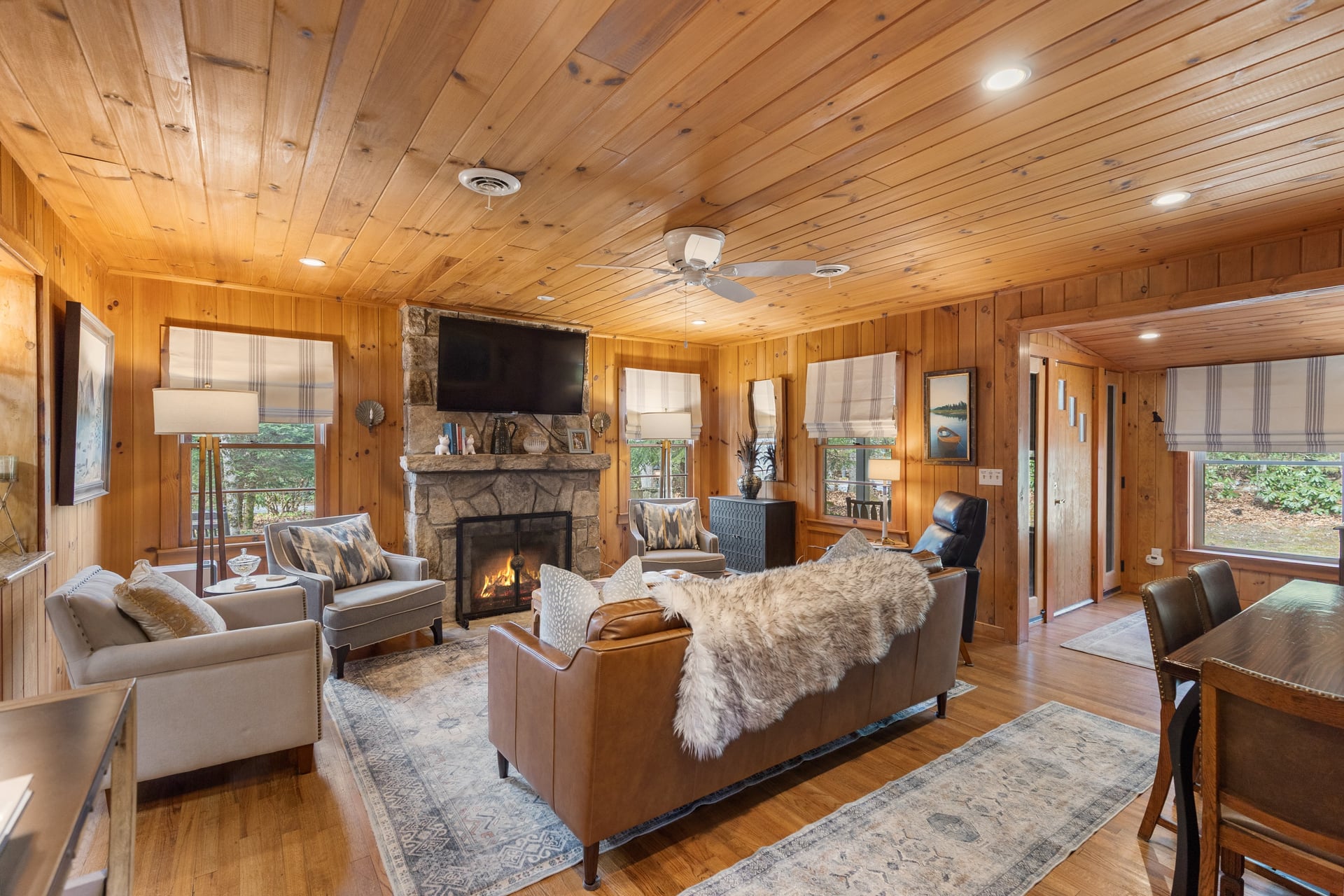 Welcome to this charming Highlands pine cottage nestled in the beautiful Flat Mountain area, just minutes from vibrant Main Street. Perfectly situated on a desirable corner lot, this cozy retreat is full of classic mountain charm and character. Inside, you'll find warm wood accents and a comfortable layout that captures the essence of mountain living. The ranch floor plan offers stepless entry into an inviting foyer and family room with stone, gas fireplace, plus three generous sized bedrooms and 2 full bathrooms. Relax with family and friends on the private, covered screened porch with wood burning fireplace and big screen TV. In the kitchen you will discover a wet bar with ice maker for enjoying coffee to cocktails, in addition a Kitchen Aide gas range and built in refrigerator. The laundry/mud room is a bonus with ample storage cabinets and access to a one car carport. The flat corner lot is perfect for enjoying outdoor activities and cozying up by the firepit. Walk to Pinky Falls and Ranger Falls trails. Flat Mountain states is a peaceful, friendly neighborhood. Whether you're looking for a weekend getaway, a full-time residence, or an income-producing property, this cottage offers incredible versatility. With a strong short-term rental history, this property presents a fantastic investment opportunity. Guests love its convenient location close to shops, dining, and outdoor adventures while still enjoying the peaceful mountain setting. Don't miss the chance to own a slice of mountain charm in a highly desirable location.
