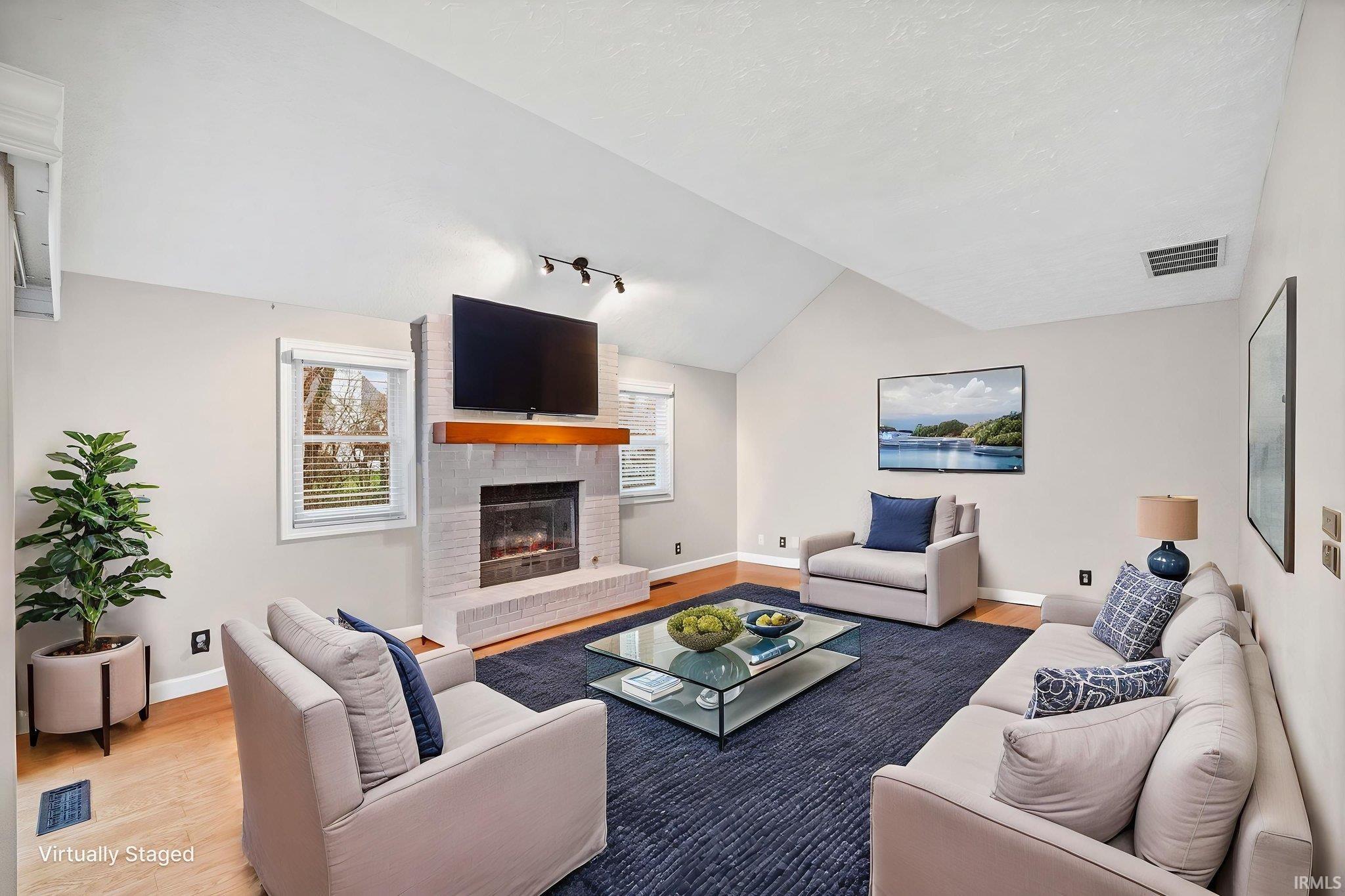 Welcome to 2218 Wake Robin Drive in West Lafayette! Nestled in a popular, family-friendly neighborhood, this charming 3-bedroom, 2.5-bath home offers the perfect blend of comfort and style. Inside, you'll find beautiful hardwood floors and two cozy fireplaces - one in the living room and one in the family room - creating warm, inviting spaces for both everyday living and entertaining. The living room features impressive high, vaulted ceilings that fill the home with natural light and an open, airy feel. The kitchen opens to a large private patio and tree lined backyard, ideal for relaxing or hosting guests. With spacious rooms, thoughtful design, and a great location close to local amenities, this home is ready to welcome its next owners.