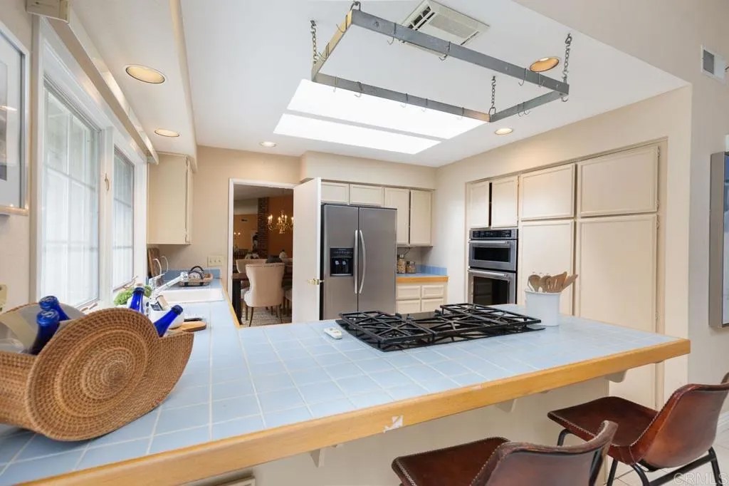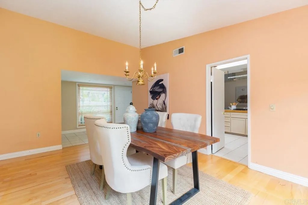 As you approach this classic California Ranch Style Home in this upscale La Costa neighborhood, you will notice white and pink flowers amongst the mature green landscaping that line a curving driveway leading to a sizeable 3 car garage with plenty of loft storage. To the left of the garage is the courtyard with lush vegetation guiding you to a homey red front door. When you walk in, to the right you will immediately notice a large living room, where the gold chandelier accents the dining table. When you take a sharp right you will enter the spacious master bedroom with a dual sink master bathroom. The open floor plan of the home allows you to walk through the formal living and dining areas, into the kitchen, and directly into the family room. The home includes a second story loft next to the family room. The three bedrooms and two additional bathrooms top off this home on the left wing. Several glass doors lead out to the backyard from the living room and the family room, making for great indoor/outdoor living. Grass covers the yard, with two more outdoor patio areas up the lush tropical hillside on this 0.28 acre lot. Remodel or New Build possibilities are endless!