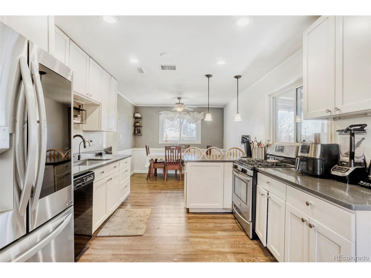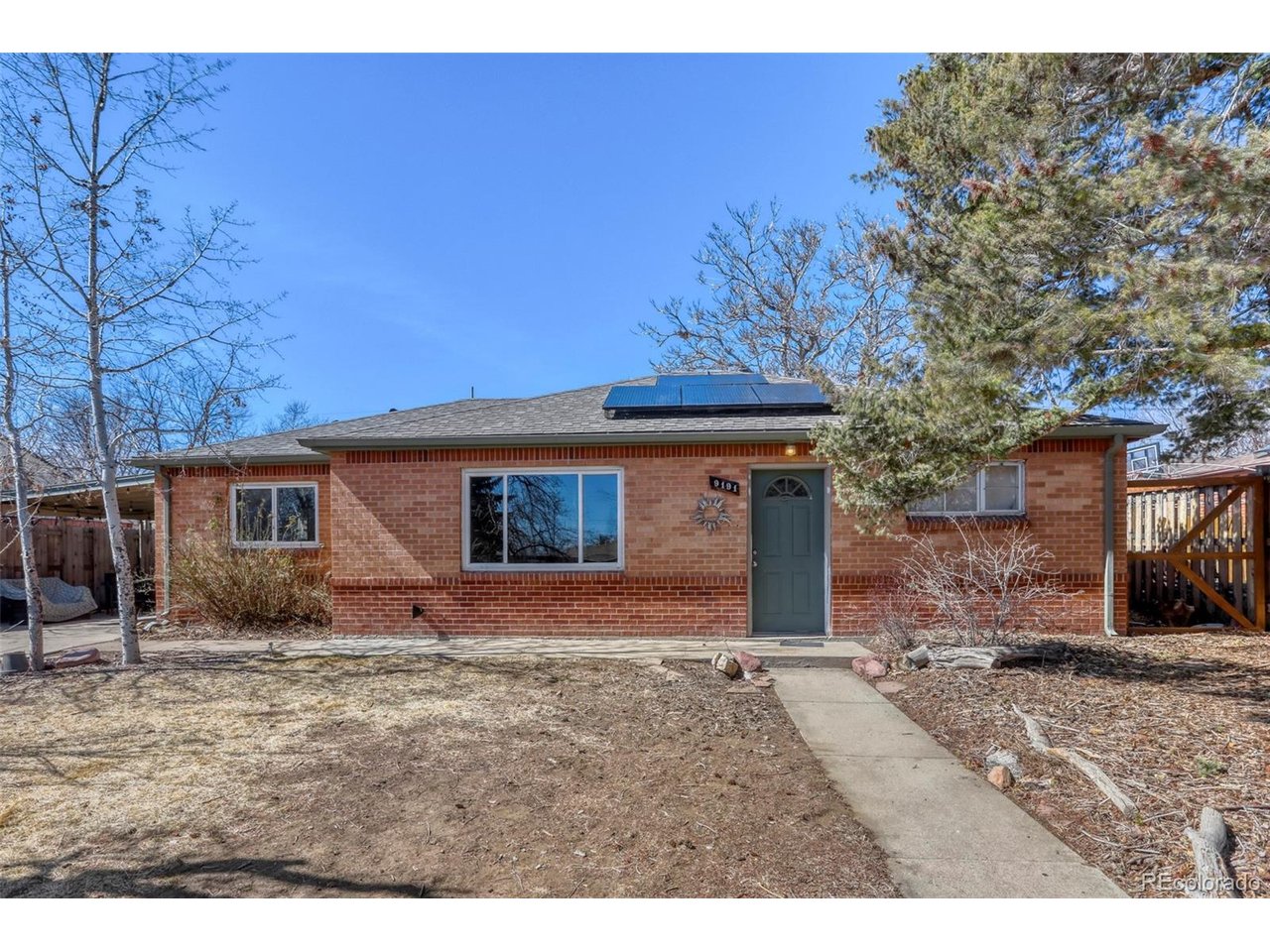 Welcome home to your 3-bedroom, 2-bath home offering comfort, functionality, and thoughtful updates. The tastefully updated kitchen features modern finishes, ample cabinetry, and a layout that flows seamlessly into the main living space-perfect for both everyday living and entertaining. The updated full bathroom adds a fresh, contemporary touch, while the additional bath provides extra convenience. A standout feature of the property is the fully finished and heated garage, creating a versatile space ideal for a workshop, hobby area, home gym, home office or additional flex space. Outside, the spacious backyard offers plenty of room for entertaining, gardening, pets, or future outdoor projects. This home also provides excellent parking and storage with a 1 car garage, carport, gated driveway, and secure off-street parking-perfect for multiple vehicles, trailers, or recreational toys. With its updated kitchen, flexible garage space, large yard, and gated parking, this property offers move-in-ready comfort with practical features buyers are looking for. Located in a NO HOA community. Just minutes from the new community center and city pool, this home offers easy access to I-25 and is walking distance to the light rail, making your commute simple and convenient. Solar panels owned by seller help reduce electricity bills!! Home Buyer Warranty provided for your peace of mind! Schedule your showing today!