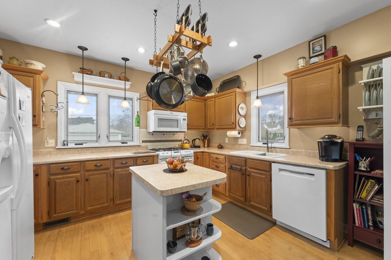 Ditch the commute and embrace the lifestyle! Nestled in the vibrant heart of Downtown Mount Prospect, this 2-story gem perfectly blends vintage soul with modern convenience. Featuring three spacious bedrooms, two full bathrooms, a charming kitchen open to the dining room, first-floor laundry room and basement with above-ground windows. The outside features a new asphalt driveway, a pergola sitting atop a brick paver patio, a 2-car detached garage and a 3-year-old roof. This home is just steps away from the Metra Train station, only a couple of blocks from Library, a variety of restaurants, cozy coffee shops, and a Caputo's grocery store. Enjoy the very best of downtown living!