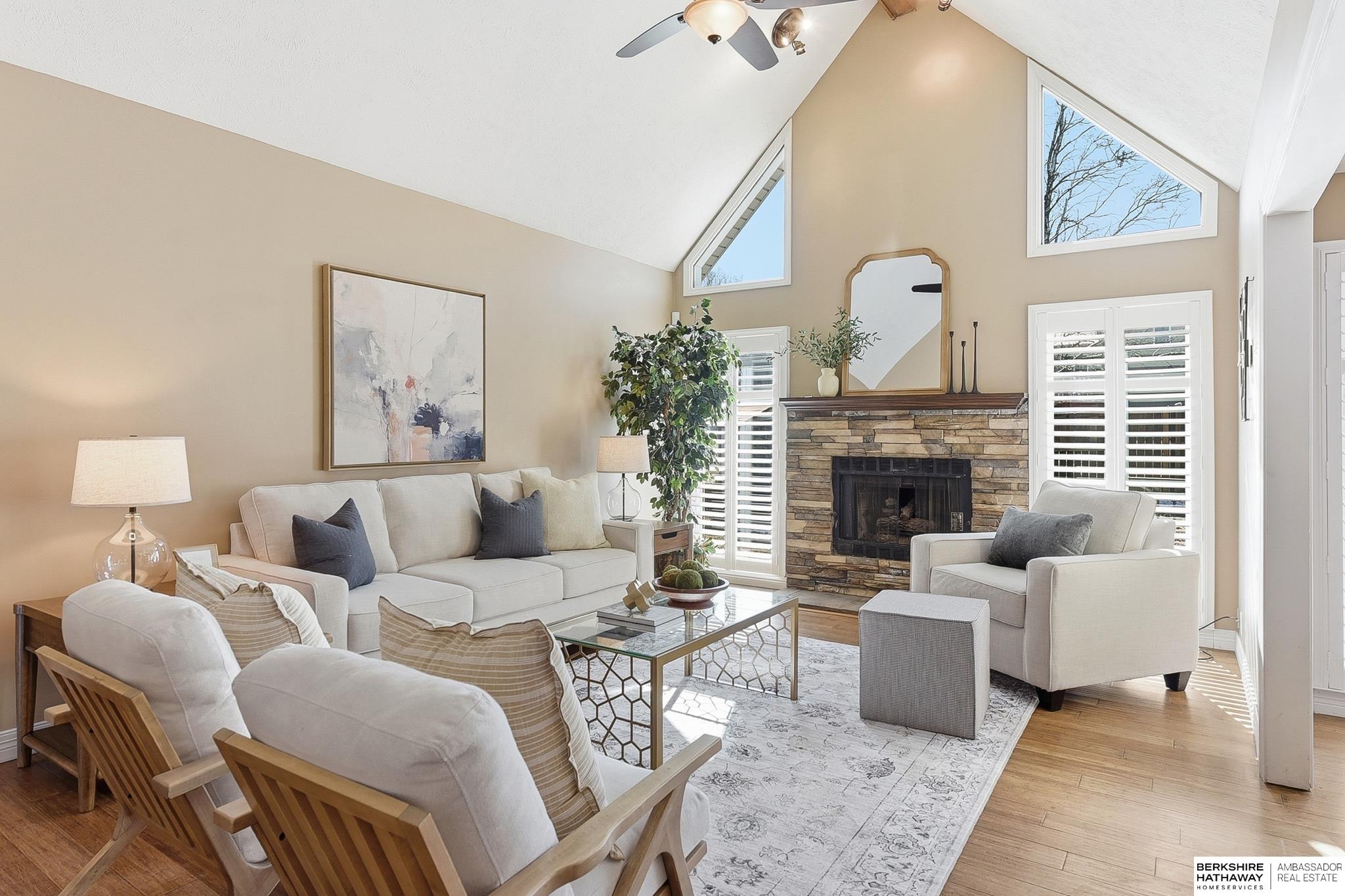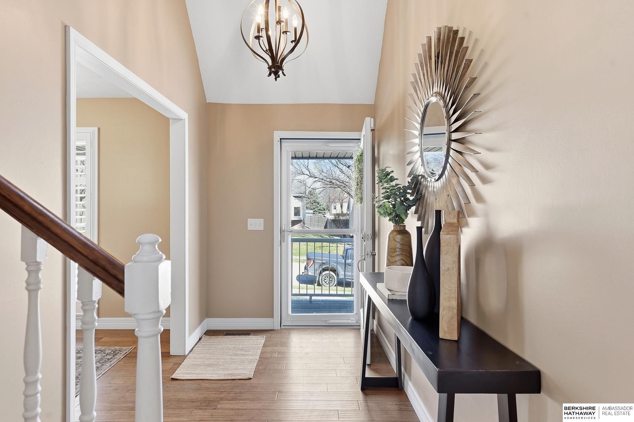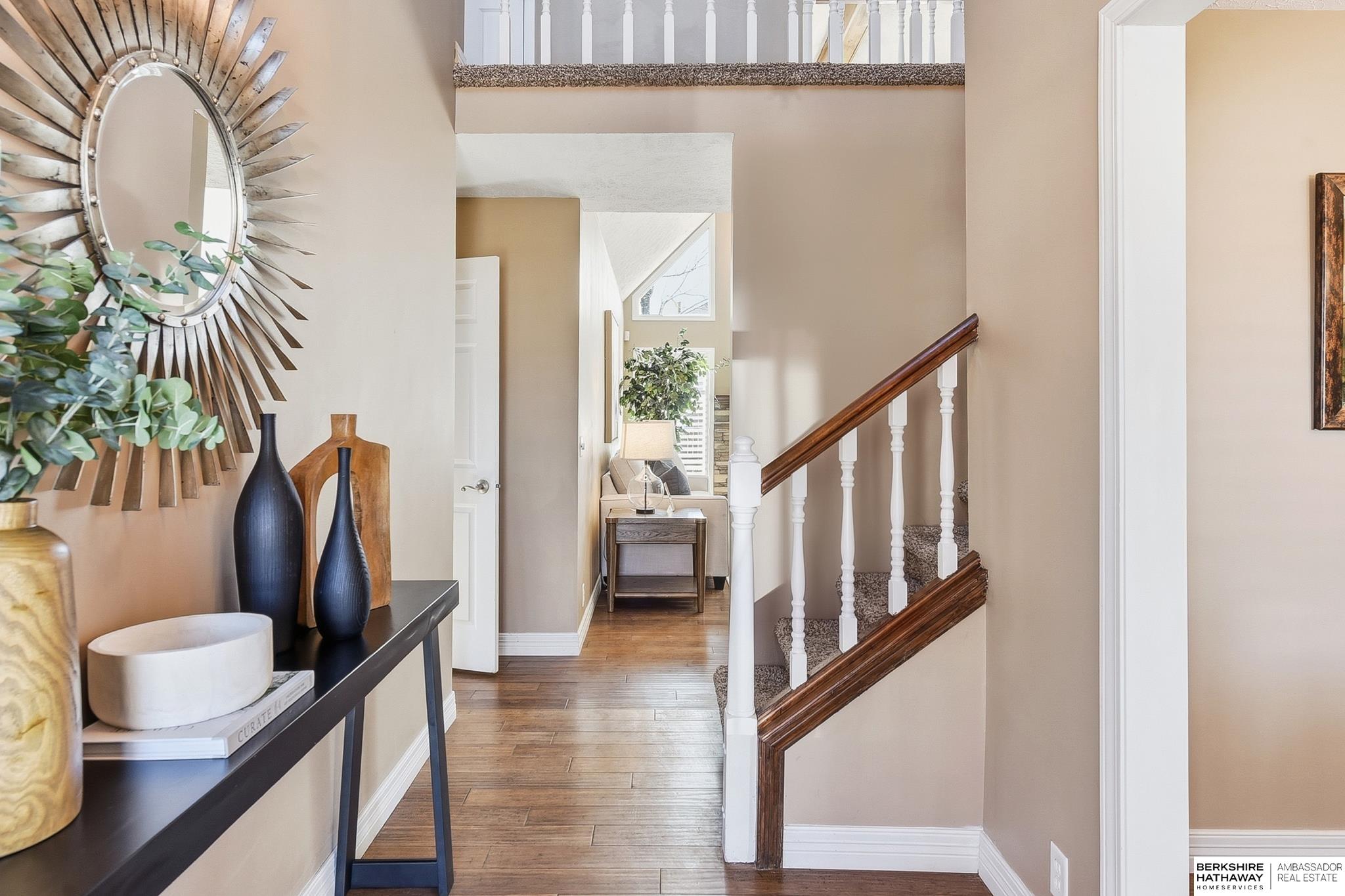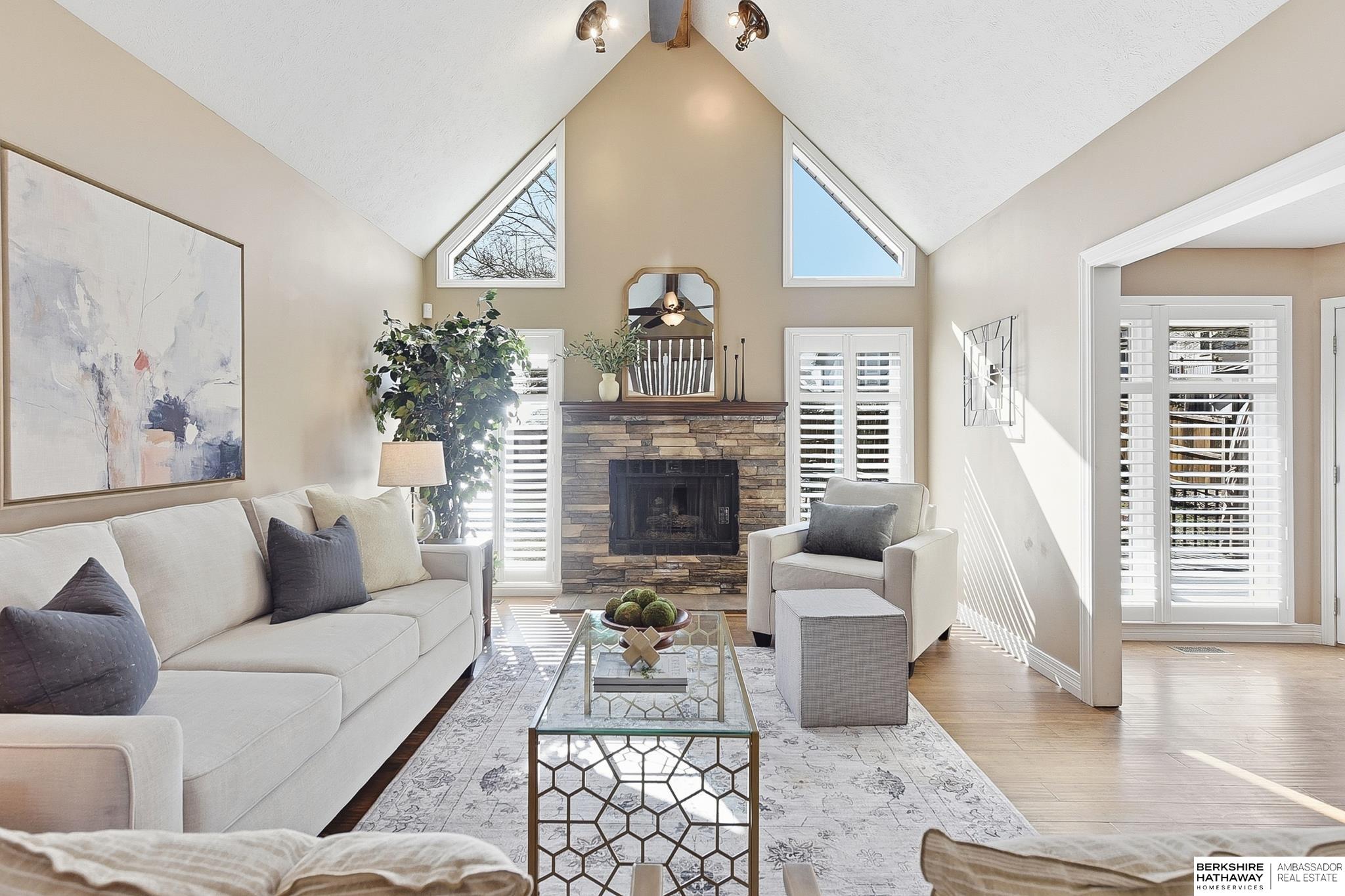 Comfort & flexibility define this inviting 1.5-story home in Oakbrook Meadows, featuring a sought-after main-level primary suite with a tiled walk-in shower and light-filled living areas with vaulted ceilings. The main floor showcases gorgeous wood shutters, bamboo flooring, and a welcoming layout flowing into the updated kitchen with granite countertops, stainless steel appliances, and excellent workspace for cooking and entertaining. Three additional bedrooms are located on the second floor, offering comfortable separation of space. The finished lower level offers a spacious living area, full bath, non-conforming 5th bedroom, and additional flex rooms ideal for office, fitness, or media use, plus an island and entertaining space. Outdoor living shines with a composite deck '24, gazebo '24, and storage shed '23, creating a great backyard setup for relaxing or hosting guests. Walking distance to Lake Zorinsky, trails, parks, shopping, dining, and an exceptional Millard location.