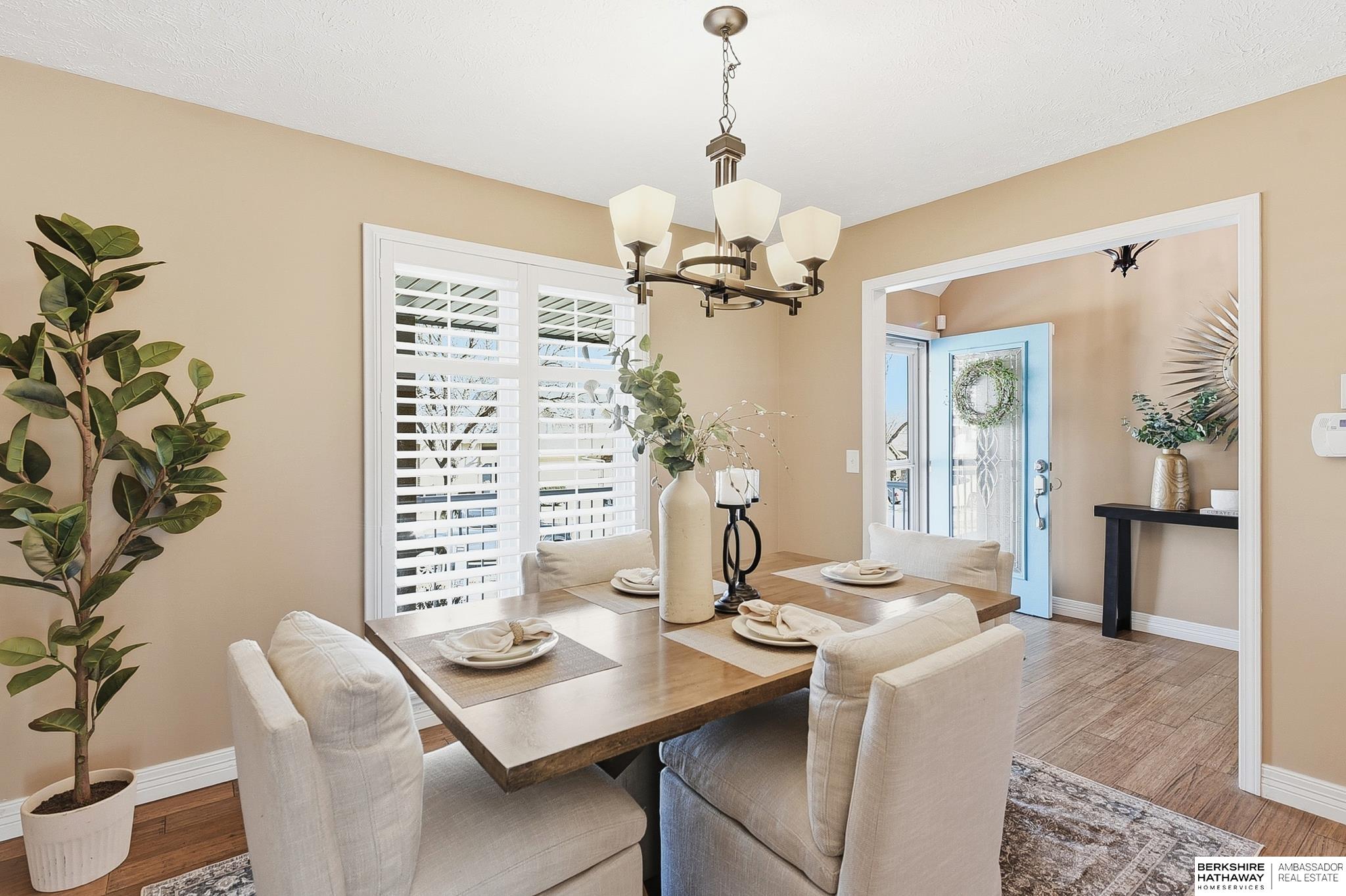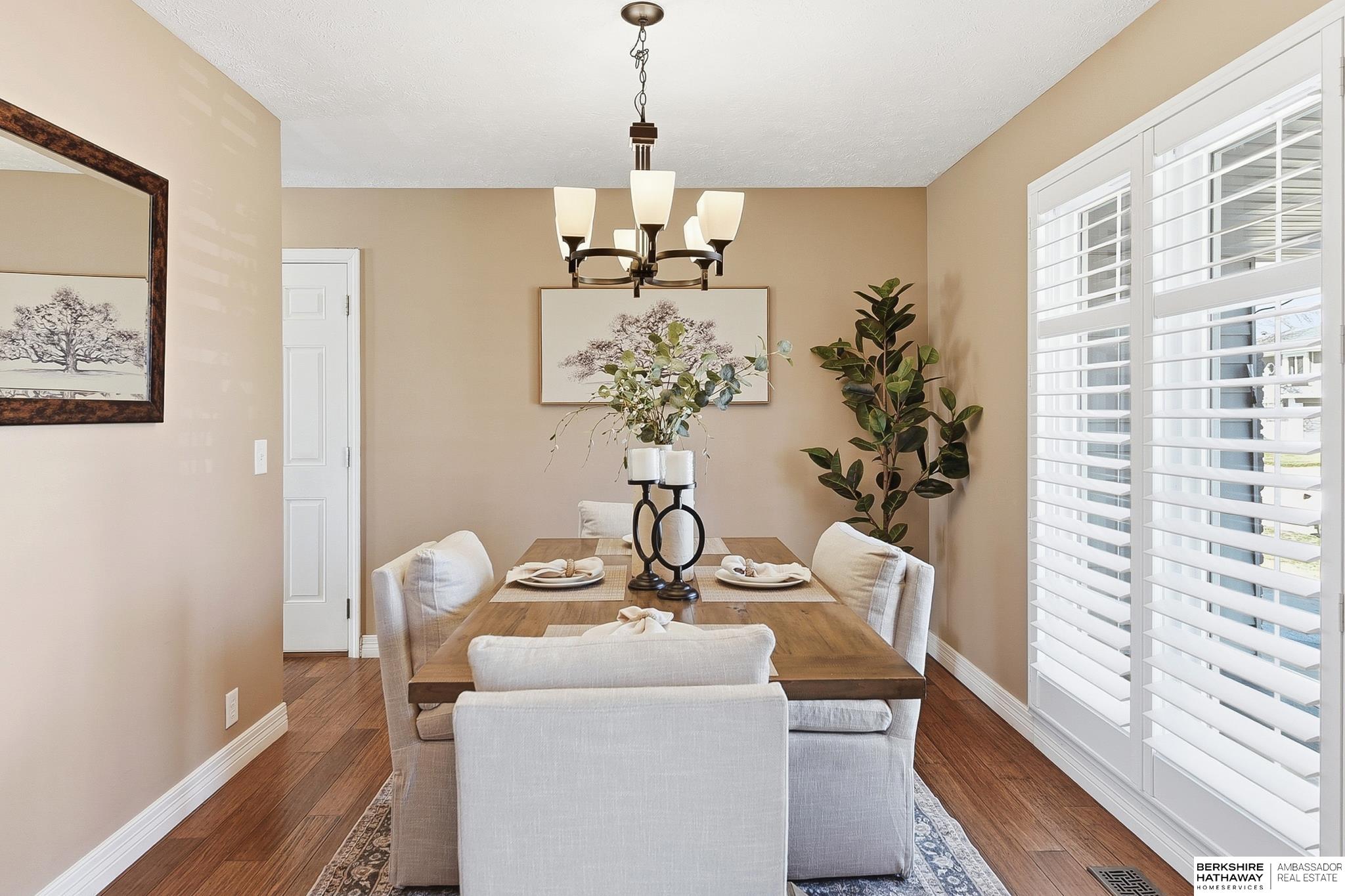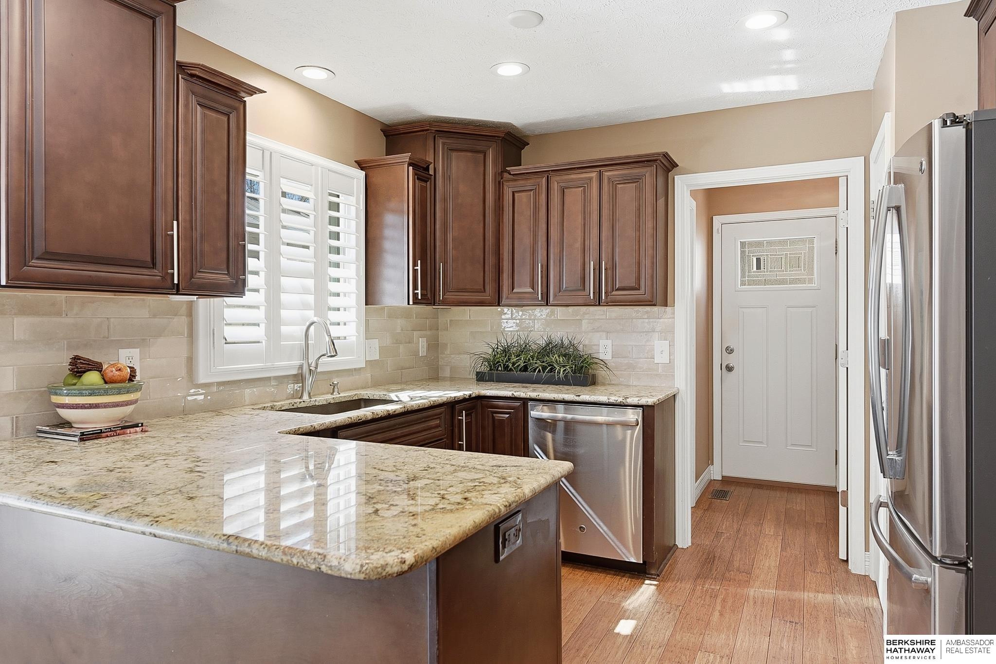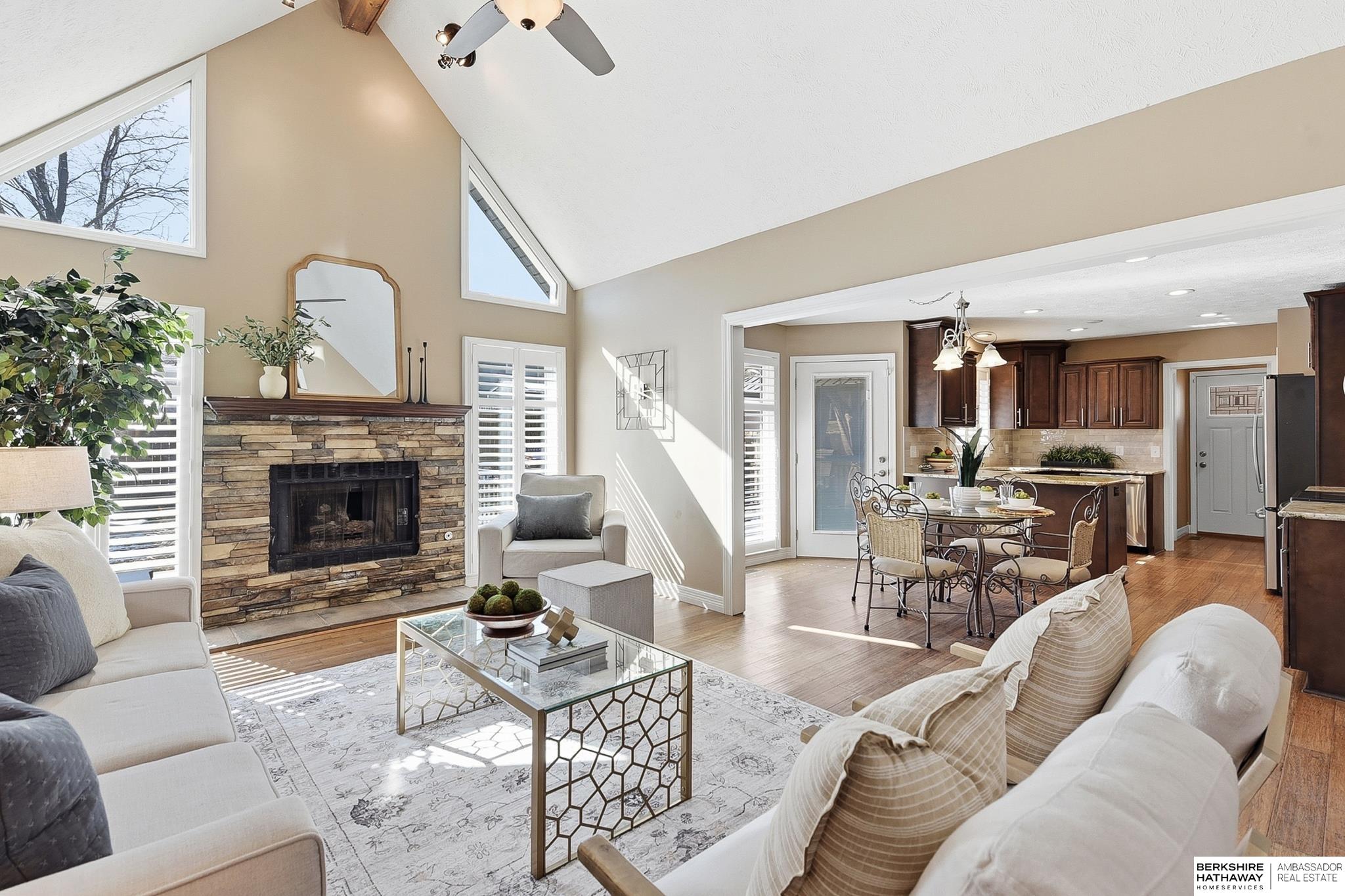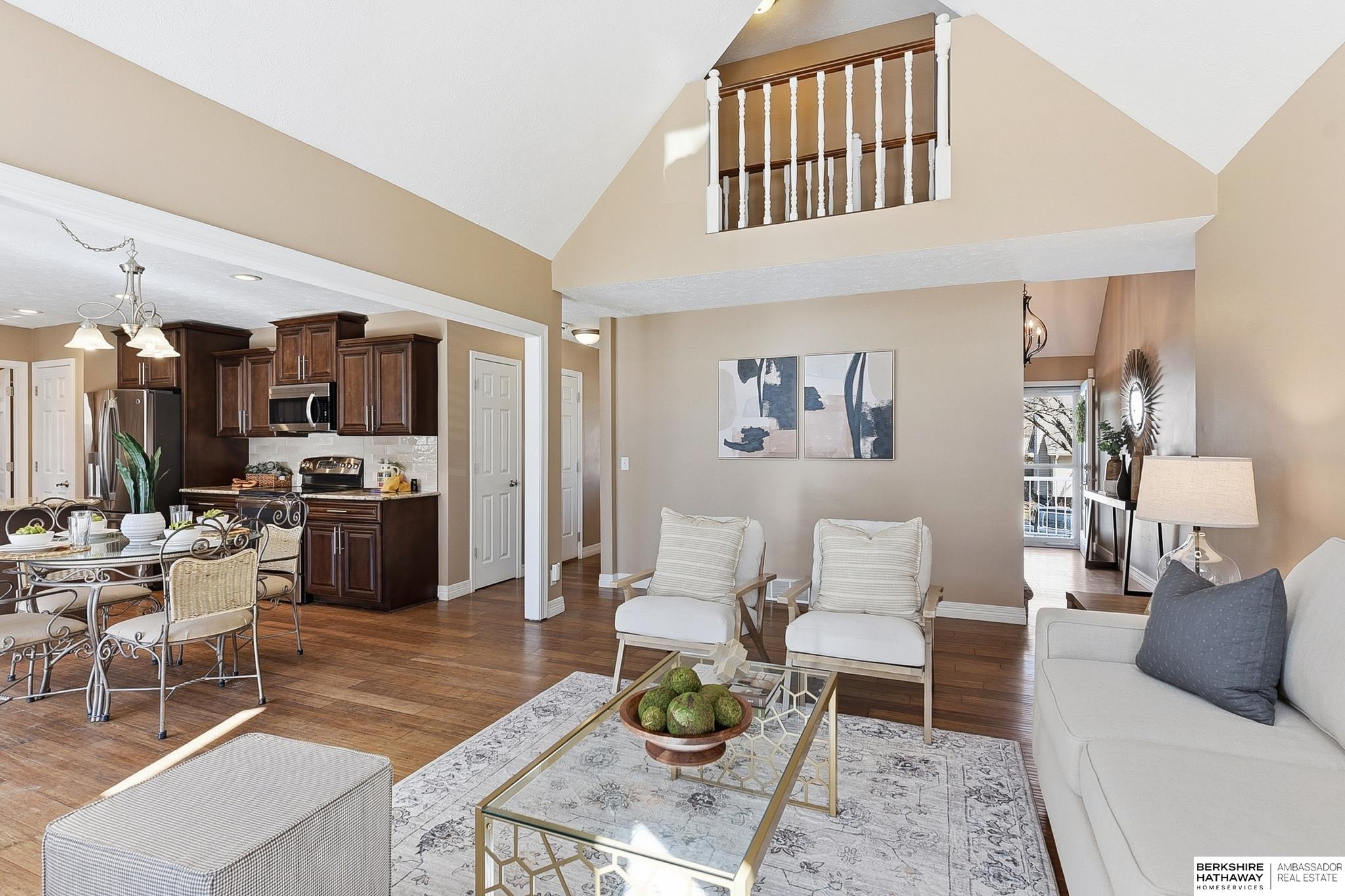 Comfort & flexibility define this inviting 1.5-story home in Oakbrook Meadows, featuring a sought-after main-level primary suite with a tiled walk-in shower and light-filled living areas with vaulted ceilings. The main floor showcases gorgeous wood shutters, bamboo flooring, and a welcoming layout flowing into the updated kitchen with granite countertops, stainless steel appliances, and excellent workspace for cooking and entertaining. Three additional bedrooms are located on the second floor, offering comfortable separation of space. The finished lower level offers a spacious living area, full bath, non-conforming 5th bedroom, and additional flex rooms ideal for office, fitness, or media use, plus an island and entertaining space. Outdoor living shines with a composite deck '24, gazebo '24, and storage shed '23, creating a great backyard setup for relaxing or hosting guests. Walking distance to Lake Zorinsky, trails, parks, shopping, dining, and an exceptional Millard location.