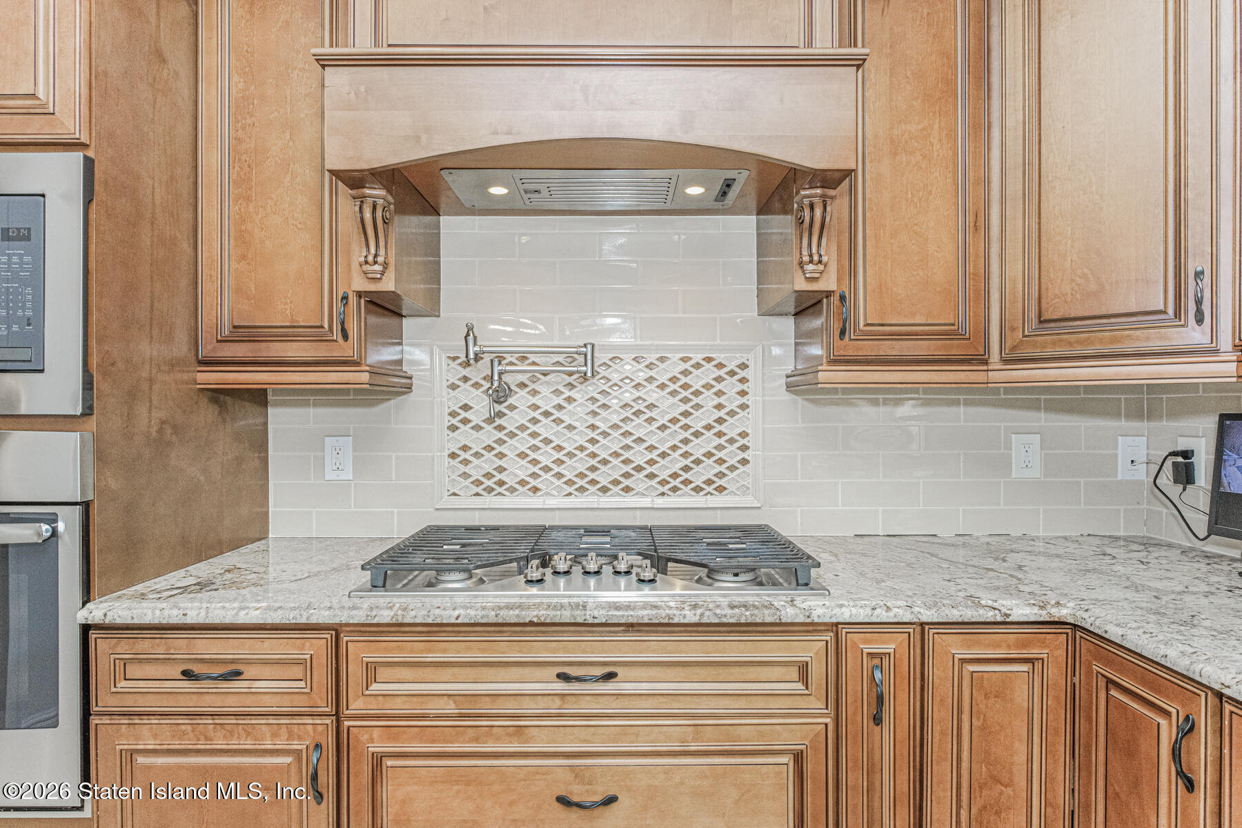 Welcome to this custom-built two-family detached home! This beautifully maintained two family property offers 3 bedrooms and 4 baths and was designed with an exceptional level of upgrades and attention to detail. The beautiful main unit features three bedrooms and a living space centered around a stunning custom kitchen that was completely redesigned in 2019. The kitchen truly serves as the centerpiece of the home, showcasing 42'' solid wood cabinetry extended to the ceiling, gorgeous crown molding, an oversized double island, impeccable granite countertops with matching granite window sills, a farmhouse sink, pot filler, hot water on demand, and upgraded GE smart appliances. Tile flooring completes the kitchen space while hardwood floors continue throughout the rest of the home. The living room features custom built-ins with granite as beautiful stonework surrounds an electric fireplace. Anderson sliders lead directly to a patio just off the living room, perfect for enjoying your morning coffee or relaxing. Three generously sized bedrooms share a full bathroom featuring a walk-in shower. The lower level offers an expansive family room with hardwood flooring, recessed lighting, and a convenient half bath. A wood-burning stove with an electric blower provides additional warmth during colder months. Sliding doors lead directly to the backyard, which truly feels like a private oasis. Designed for entertaining, the outdoor space features a heated in-ground pool with a brand new liner, a spacious stone patio area, and a fully equipped outdoor kitchen with granite countertops, grill and a wet bar. Additional outdoor features include a gazebo with hookups for a hot tub, two storage sheds, PVC fencing, a newer retaining wall, mature landscape and a zipper drain system. The home also offers a full basement that is partially finished providing additional living or recreation space along with an extra large storage closet, wet bar, and a three-quarter bath. A dedicated mechanical room houses two furnaces and two hot water heaters. The second unit, located on the side of the home, large studio, one full bathroom, living/bedroom combo, and an eat in kitchen. The living area features hardwood flooring while the kitchen is finished with tile flooring. Additional highlights include a solid brick construction, security camera system, two driveways, a built-in one-car garage with direct access to the main unit, pavered driveway, Anderson windows and sliders with Pella window in master bedroom, crown molding, and recessed lighting throughout. This home truly offers an incredible amount of space, thoughtful upgrades, and indoor-outdoor living. Will not last!