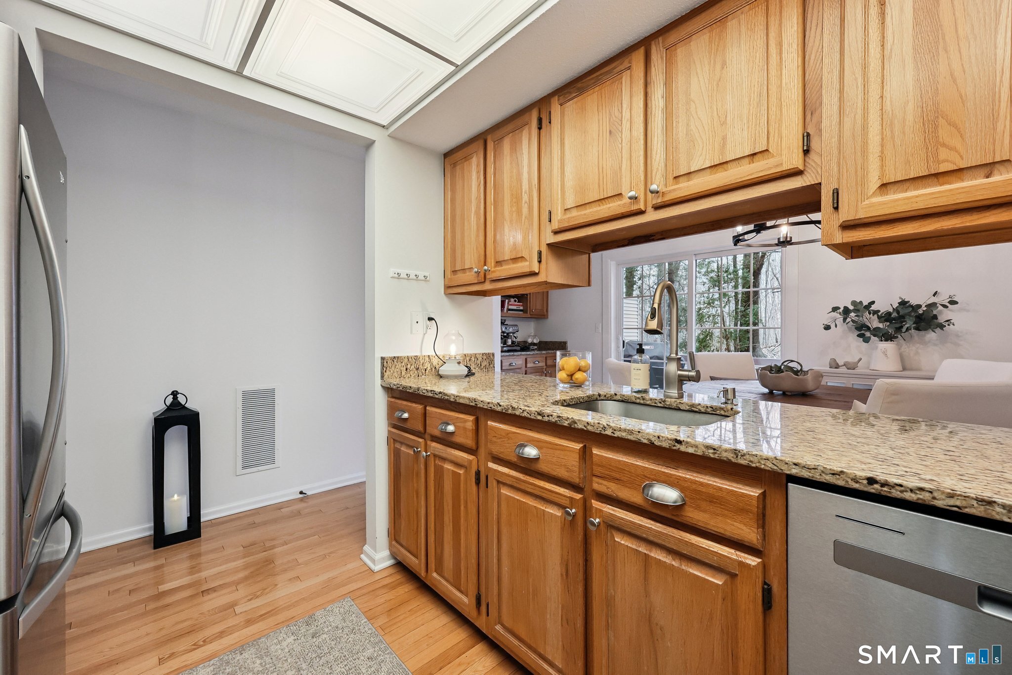 Simply lovely. An exceptional opportunity for those looking to own a home and begin building equity - or for those ready to downsize and simplify without compromise. This ideally situated Townhouse offers the perfect blend of comfort and convenience. Natural light infuses warmth and comfort with updated sliders, creating a seamless connection to the outdoors. Enjoy a beautiful display of seasons - where nature becomes your palette and the backdrop to everyday living. Conveniently located near the new shopping destination, Shops of Stone Bridge Crossing, with premier retailers including Whole Foods and Sephora just under four miles away. Perfectly positioned between New York and Boston, this home offers both accessibility and tranquility. Additional Highlights Include: - Pristine hardwood flooring throughout the first floor. - Granite kitchen countertops. - All new designer lighting. - Fresh, neutral paint colors. - Charming bench window seat with custom cushion. - Two generously sized bedrooms. - Primary bedroom has a custom built-in closet. - Immaculate and well-maintained home. A wonderful place to call home - offering comfort, style, and an unbeatable location.