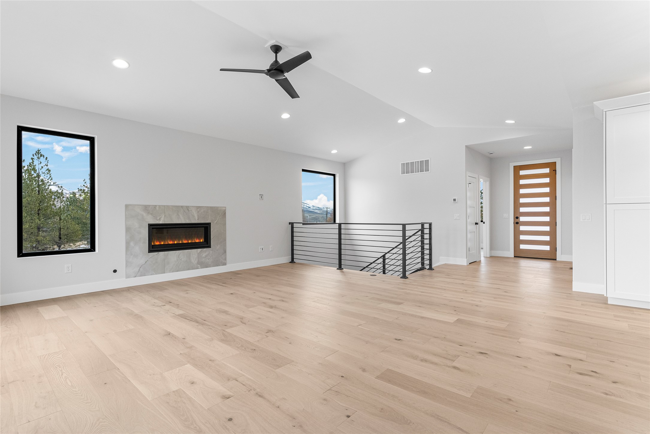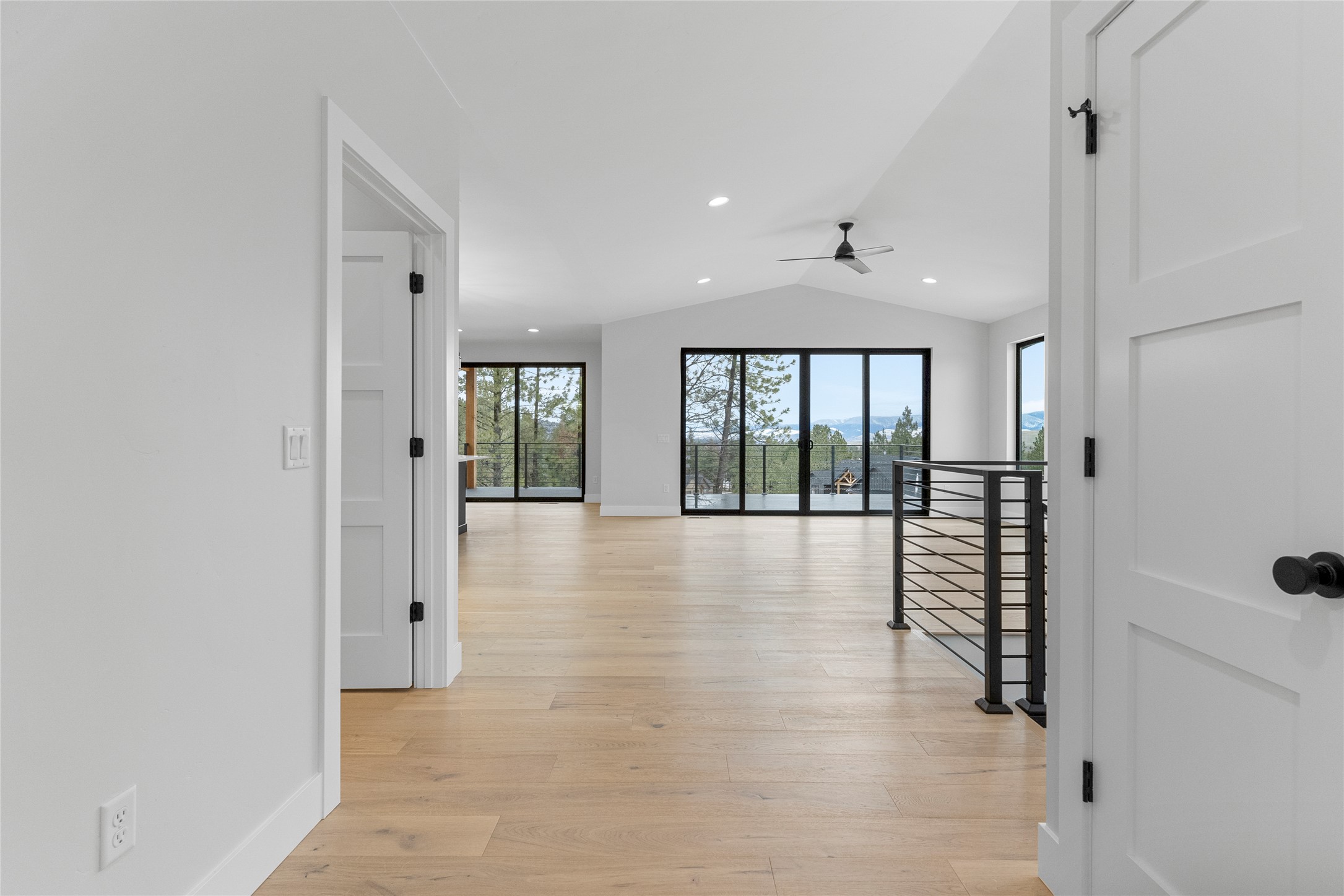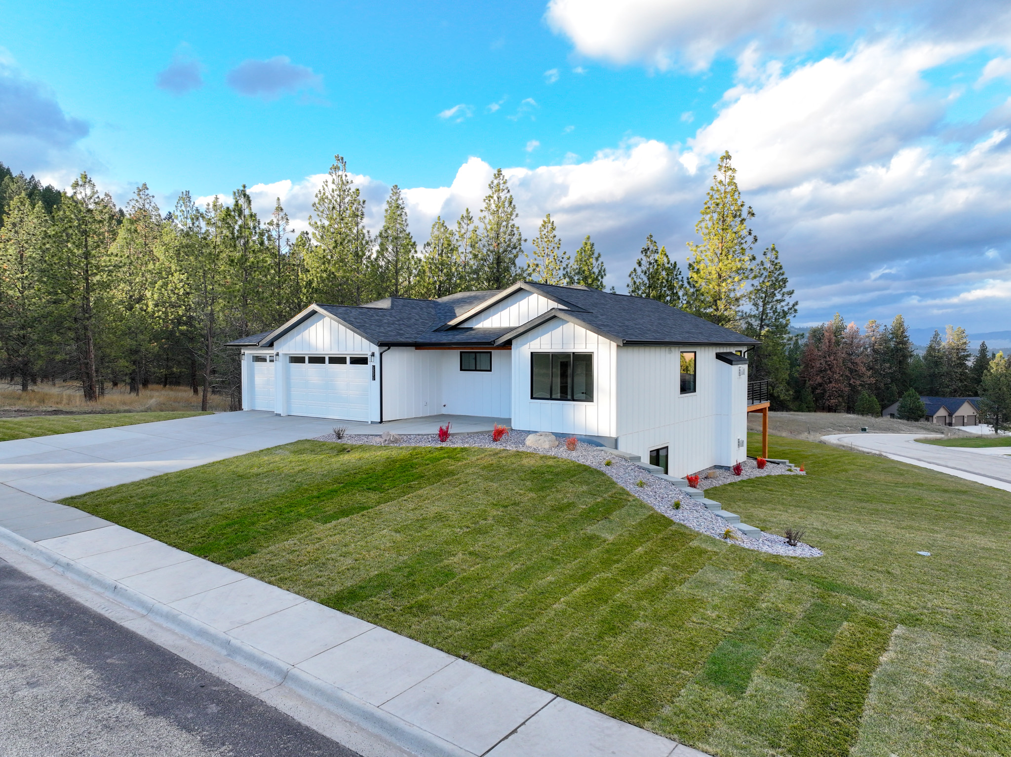 Not your ordinary subdivision home! Incredible zero entry new construction by long time Missoula builder, MTV Construction, offers so much! Gently sloped downhill lot filled with mature trees and offering incredible views!! High end finishes throughout will not disappoint. Be impressed immediately as you enter the home... open floor plan with glass doors, windows & vaulted ceilings! The fireplace in the living room offers ambiance to compliment the living area. Thermador appliances, pantry and huge island anchor the dream kitchen. What an entertainment space! Expand out onto the oversized & partially covered deck. The primary suite is main floor & also offers deck access. Luxurious bathroom with heated floors, zero entry shower, soaking tub, double vanity and towel heater. 2nd bedroom & bath on the main floor. The lower level will also impress with a huge family room, 2nd fireplace, beds and baths.