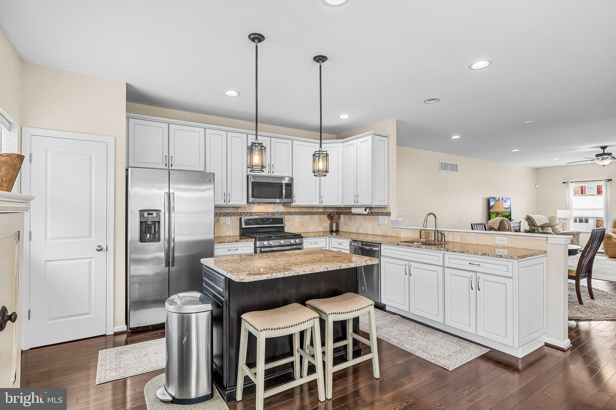 Exceptional end unit townhome! Tucked into Ravenswood, a cul de sac style community, 9 Lani Lane feels like a quiet retreat with the convenience of everything close by. This meticulous home offers three finished levels, an attached 2 car garage, and the extra natural light you will love and appreciate. The main level shines with hardwood floors, custom blinds, ceiling fans, recessed lighting, and an open kitchen with white cabinetry, granite counters, stainless appliances, a tile backsplash, and a generous island that keeps everyone connected. Gather by the gas fireplace in the dining and living areas, or step outside to the Trex deck for easy indoor outdoor flow. Upstairs, the primary suite is paired with an updated primary bath, and the full hall bath has also been refreshed with new vanities and toilets. An extra bonus, the laundry room is also located on the upper level, no need to carry laundry baskets up & down stairs. The walkout lower level expands your options with a spacious family room and a newer half bath, so every floor has a bathroom. Through sliding glass doors, enjoy a roof covered paver patio with a ceiling fan, creating a comfortable spot for grilling, lounging, and all season entertaining. Additional features include a whole house humidifier, rear security light, and an in home security system. Also for your added convenience the HOA covers common areas and snow removal. Convenient to Route 73 for access to Philadelphia, plus nearby shopping, dining, and parks.