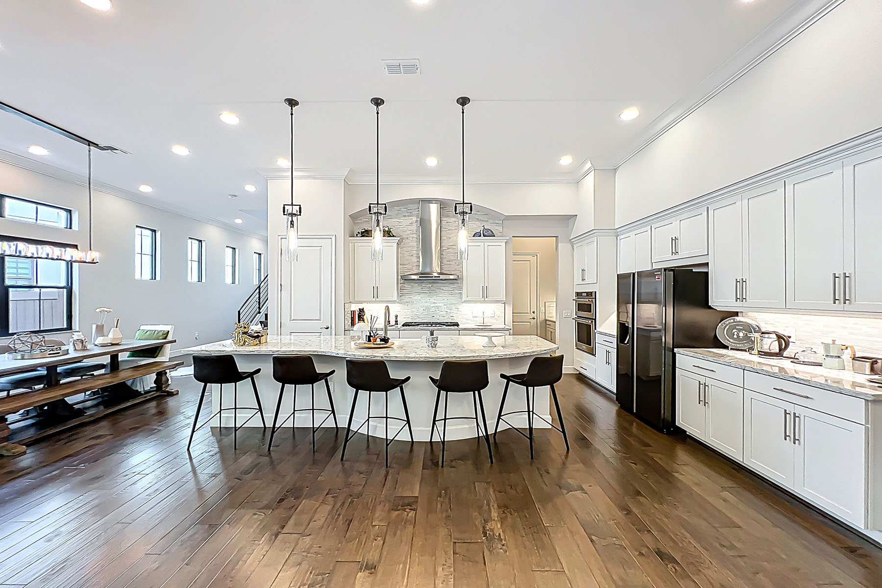 Welcome to an extraordinary residence in the exclusive gated community of The Residences at Dellagio, where luxury, privacy and lifestyle converge in the heart of Orlando's desired Restaurant Row. This impeccably designed two-story home offers over 3,200 square feet of refined living space featuring three spacious bedrooms, 3.5 baths and a versatile upper-level bonus loft. From the moment you enter the dramatic two-story foyer, you are greeted by soaring ceilings, elegant architectural details and an abundance of natural light pouring through expansive sliding glass doors. The open-concept floor plan seamlessly blends sophistication and comfort. The chef's kitchen is a showpiece, boasting an oversized island, premium stainless steel appliances, natural gas cooktop, custom cabinetry, and a generous walk-in pantry, positioned for intimate dinners and grand entertaining. The living and dining spaces flow effortlessly to the extended covered lanai, creating the ultimate indoor-outdoor Florida lifestyle experience. Upstairs, the luxurious owner's retreat offers a private balcony oasis, an expansive walk-in closet with dressing area, and a spa-inspired bath complete with dual vanities and an oversized walk-in shower. Two additional en-suite bedrooms provide comfort and privacy for family or guests, while the spacious loft offers flexibility for a media room, office, or fitness space. Within a secure, private enclave, residents enjoy exclusive access to a resort-style pool and cabana, all just near Orlando's finest dining, shopping, championship golf courses and world-renowned attractions, including Universal Studios, SeaWorld and Walt Disney World. Orlando International Airport is approximately 25 minutes away. This is more than a home, it is a statement of elegance, convenience and elevated living.