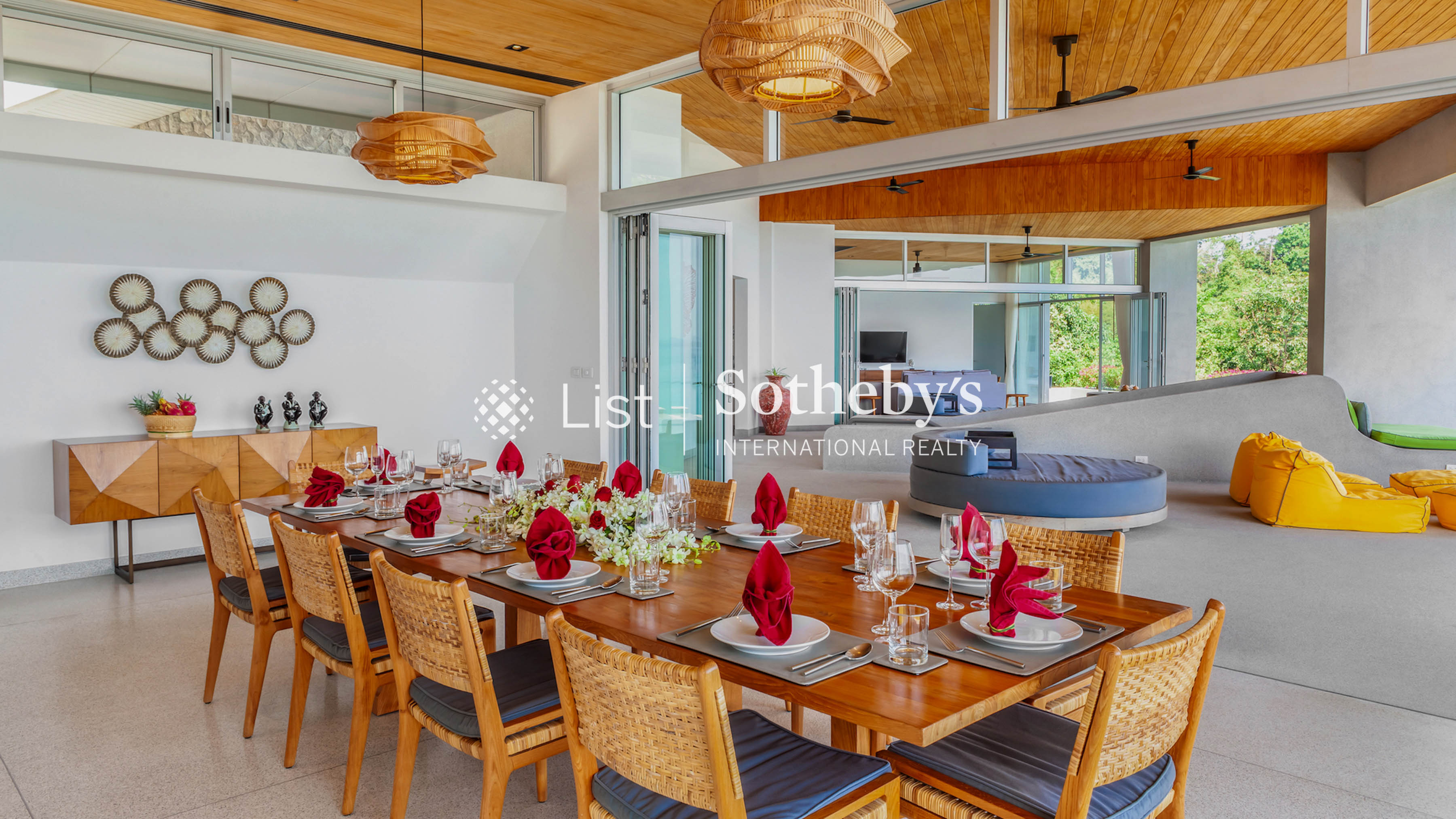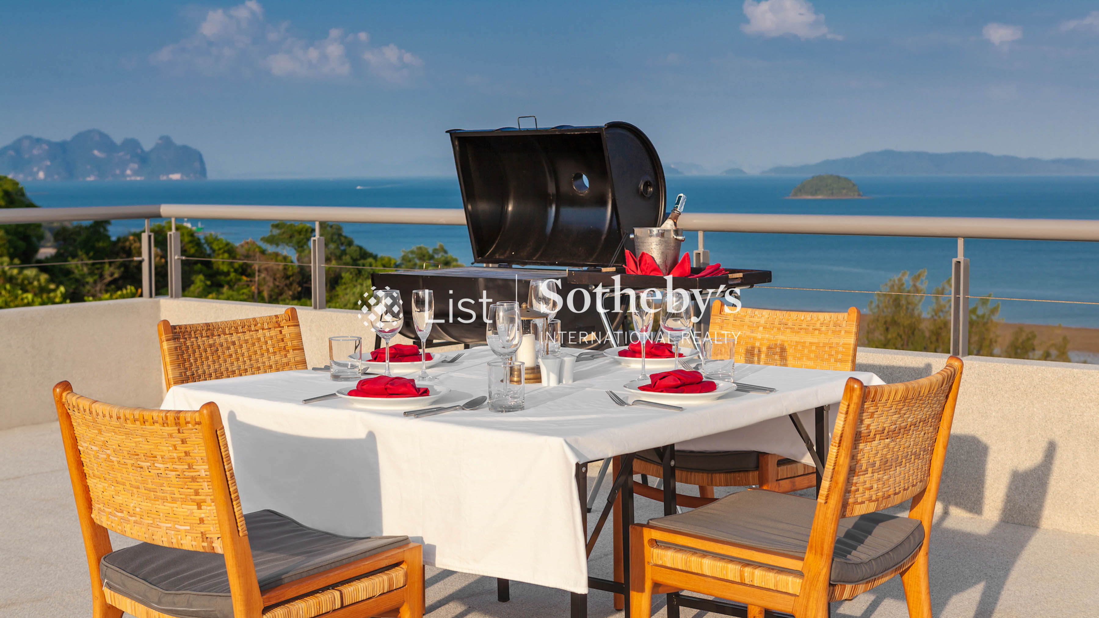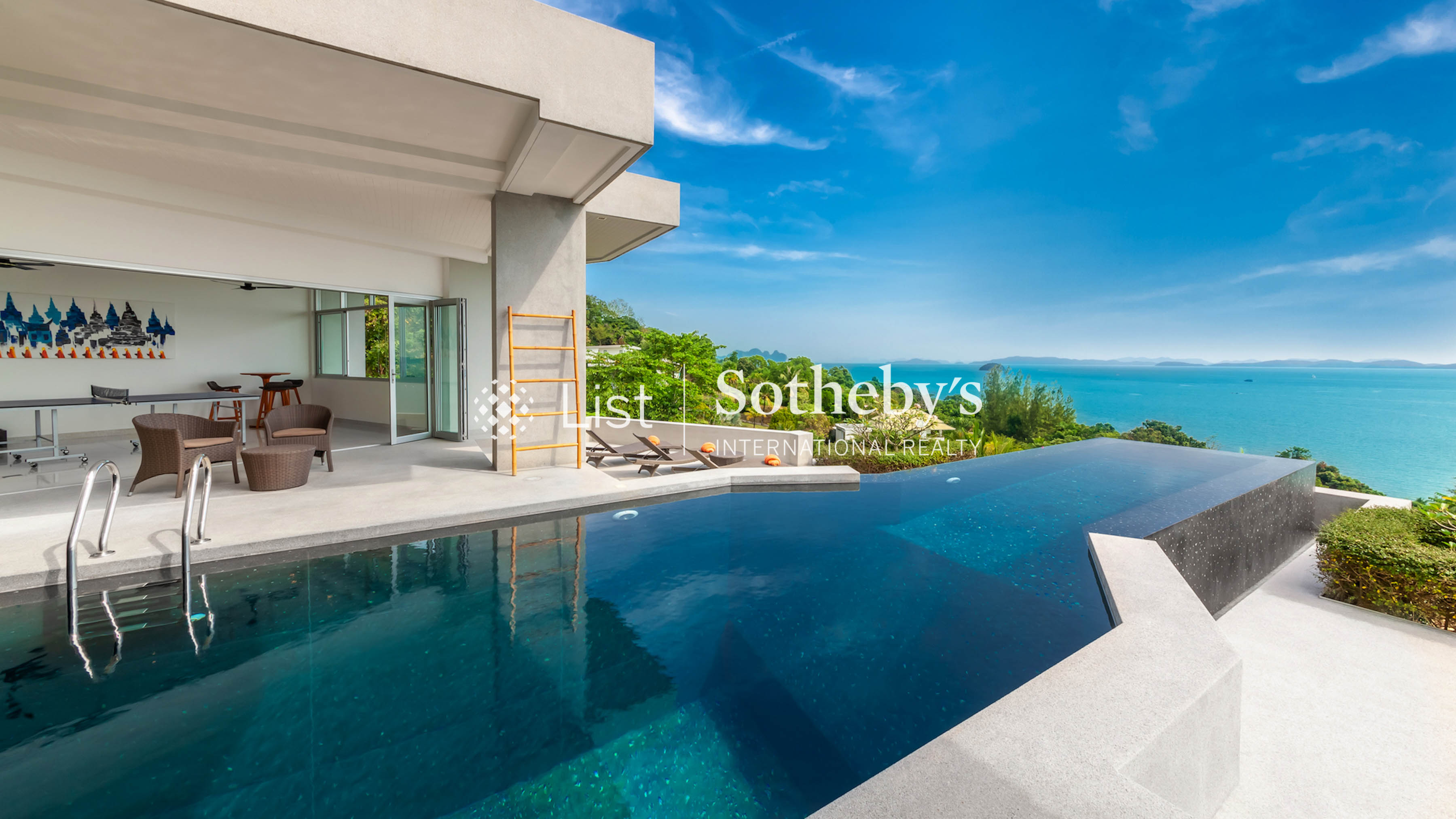 Villa Leelawadee is a stunning 5-bedroom hilltop retreat on Phuket’ s peaceful eastern coast, offering panoramic views of the sparkling Phang Nga Bay. Set on a generous 3,000 sqm land, the villa blends contemporary Scandinavian design with the island’ s natural beauty. Its open-plan layout, high wooden ceilings, and minimalist interiors create a seamless connection between the indoors and outdoors, allowing the vibrant blues and greens of the landscape to flow through every space. The villa features two master bedrooms with king-size beds and three guest bedrooms that can be arranged with either king-size or twin beds, four of which have ensuite bathrooms. The interiors are thoughtfully designed for comfort and relaxation, with polished floors, soft lighting, and colorful accents that bring warmth to the clean, modern aesthetic. Guests can unwind in the spacious living area overlooking the bay, enjoy a movie on the flat-screen TV with True Visions Platinum Package, or stay connected with wireless internet throughout the property. One of the main highlights of the villa is a 27-meter infinity pool that stretches toward the horizon, complemented by a rooftop terrace, sun loungers, and shaded lounging areas perfect for soaking up the tropical atmosphere. A fully-equipped western kitchen and indoor-outdoor dining options make entertaining easy, while villa staff and a dedicated chef ensure every meal is memorable. For active guests, there ’ s a ping pong table and an indoor space that doubles as a pickleball court or Muay Thai training area. Located in a gated community with 24-hour security and covered parking for two cars, Villa Leelawadee also offers family-friendly amenities including a baby cot, high chair, and international plug sockets. With space, style, and complete privacy, it’ s an ideal setting for an unforgettable escape in Phuket. Every detail at Villa Leelawadee is designed to elevate the guest experience. Whether you're enjoying a peaceful morning coffee on the terrace or hosting sunset cocktails on the rooftop, the villa offers the perfect backdrop for every moment. Combining luxury, comfort, and a truly spectacular location, Villa Leelawadee is more than just a place to stay—it’ s a place to connect, unwind, and indulge.