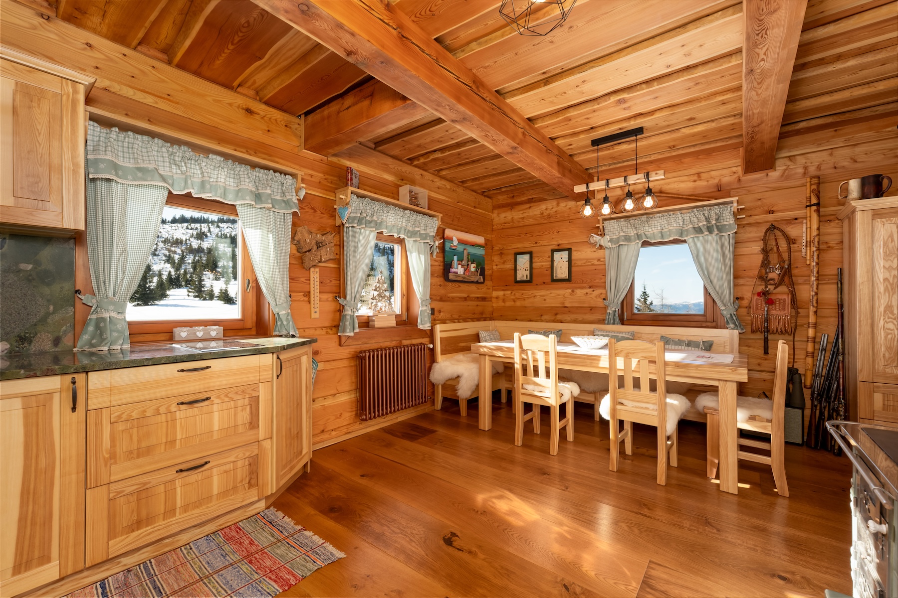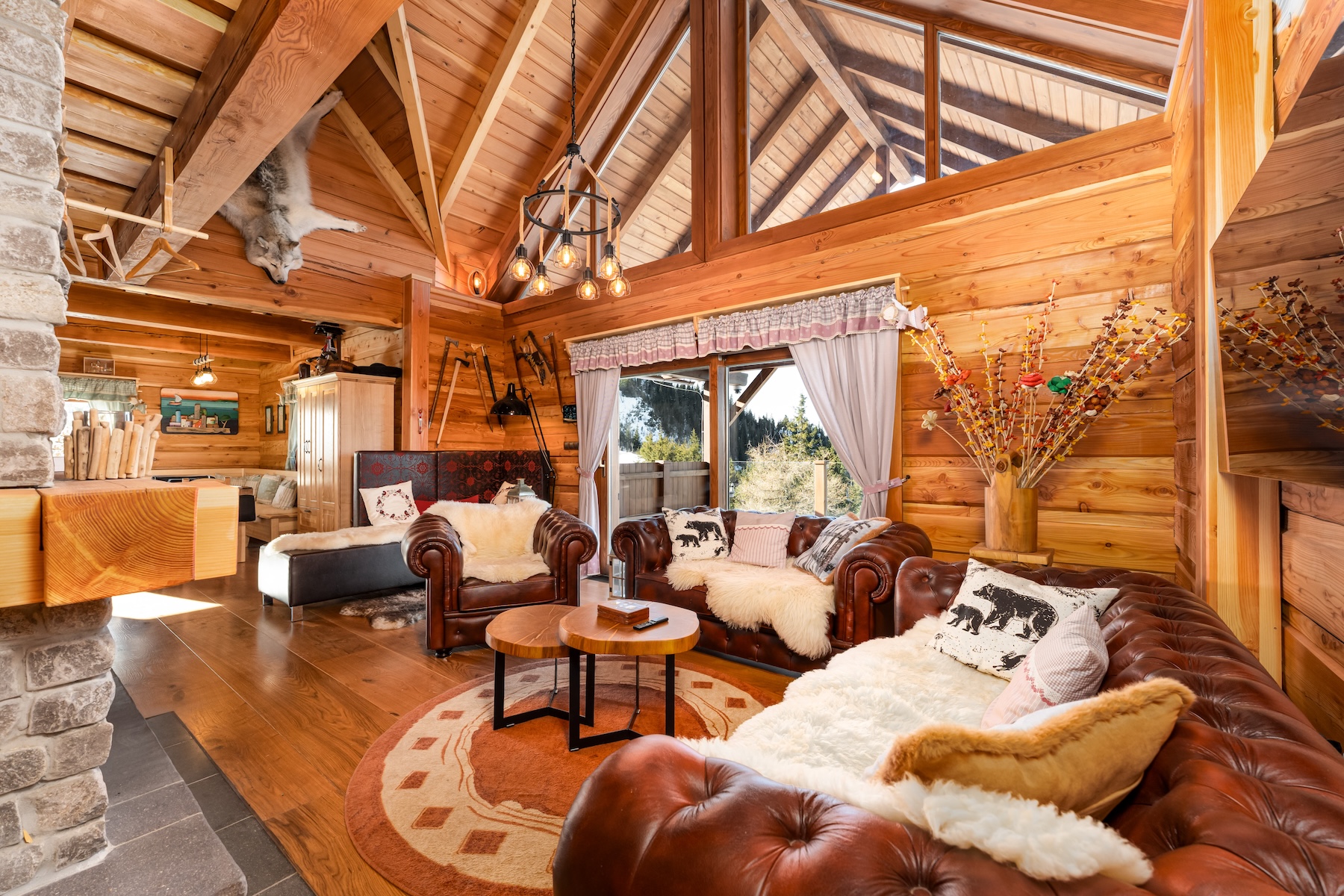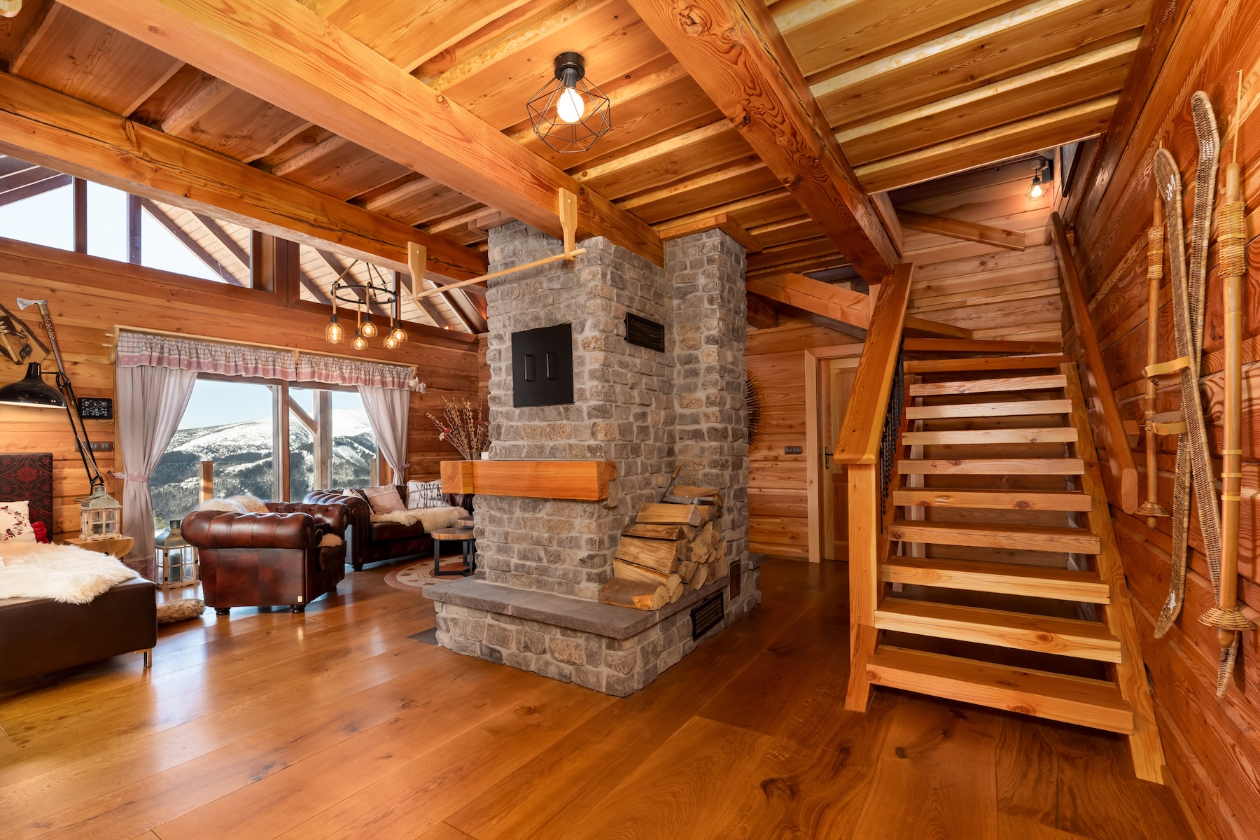 The technological backbone of the property is an off-grid energy system based on photovoltaic panels with high-capacity batteries and a backup power source. The combination of modern technologies and traditional materials allows for comfortable year-round use of the chalet even in a more secluded mountain environment.