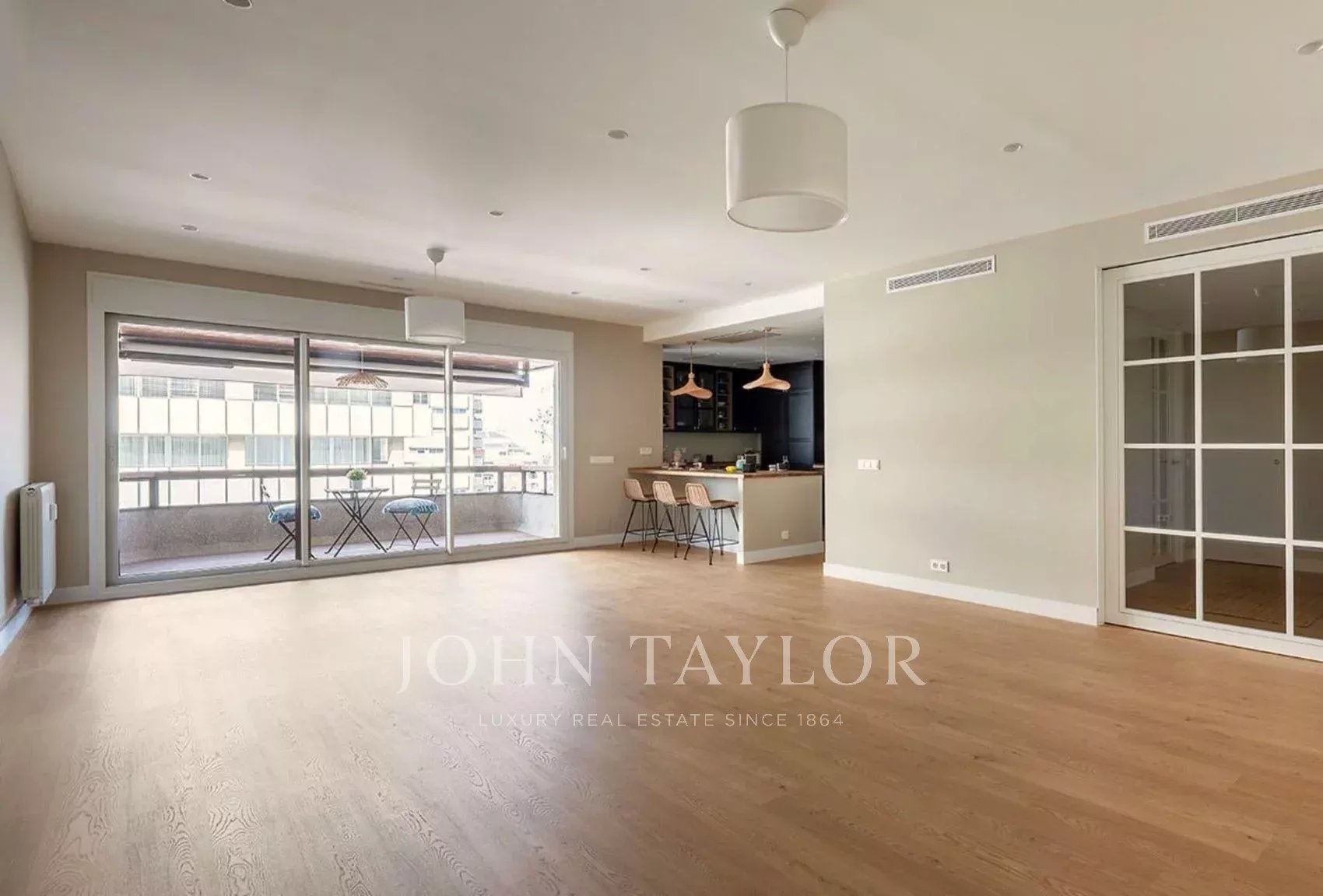 Impressive home completely renovated by a renowned architecture studioSituated on the eighth floor of a modern and well-maintained building, this exclusive property has an area of 253 m² and stands out for its careful renovation, high quality finishes, and extraordinary brightness.The home is distributed from a large entrance hall that leads to a spectacular living room with several areas, an integrated kitchen, and direct access to a pleasant habitable terrace facing East, ideal for enjoying natural light from the early hours of the day.The sleeping area consists of four spacious exterior bedrooms and three bathrooms. The master bedroom has a private terrace and a large storage area. Additionally, the home has a courtesy toilet for guests.Among its many attractions are abundant light, spaciousness, excellent layout, and high-quality finishes, making this property truly exceptional.The price includes a storage room and two large parking spaces with direct access to the home.The building offers concierge service, two elevators, and a representative entrance hall, providing comfort and distinction.