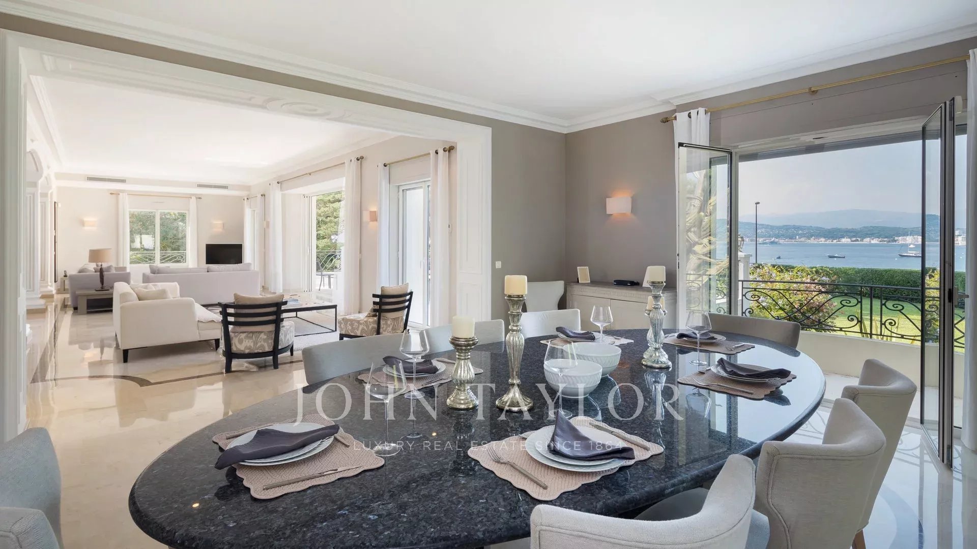 Hidden from view, on the west coast of the Cap d’Antibes peninsula, this elegant 1930s residence enjoys a rare and preserved natural environment.Spread over three levels, the property offers approximately 667 m² of living space in the heart of a beautiful landscaped park of 8,300 m², surrounded by dense Mediterranean vegetation. Noble materials — marble, stained glass, moldings, and the grand staircase — give it timeless charm and elegance.The entrance hall opens onto a large reception room of about 60 m² extended by a large terrace facing the sea. The house also has a fully equipped kitchen with a dining area, six en-suite bedrooms on the garden level, and a service bedroom.Upstairs, the master suite with dressing room and bathroom has a terrace offering a view of the Bay of Juan-les-Pins, the Lérins Islands, and the Esterel. Two other en-suite bedrooms complete this level, including one with a sea view balcony.Heated pool, pool house, tennis court, three garages, and cellar complete this exceptional property.