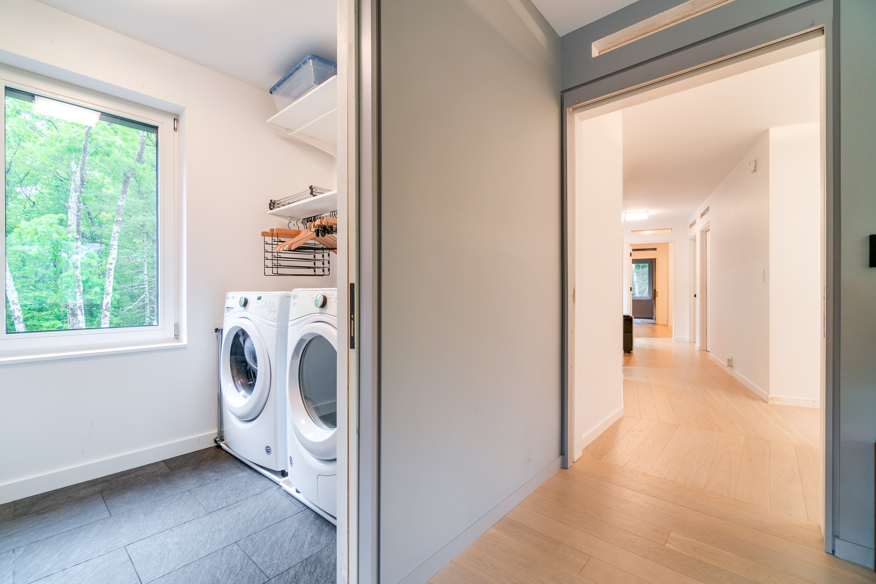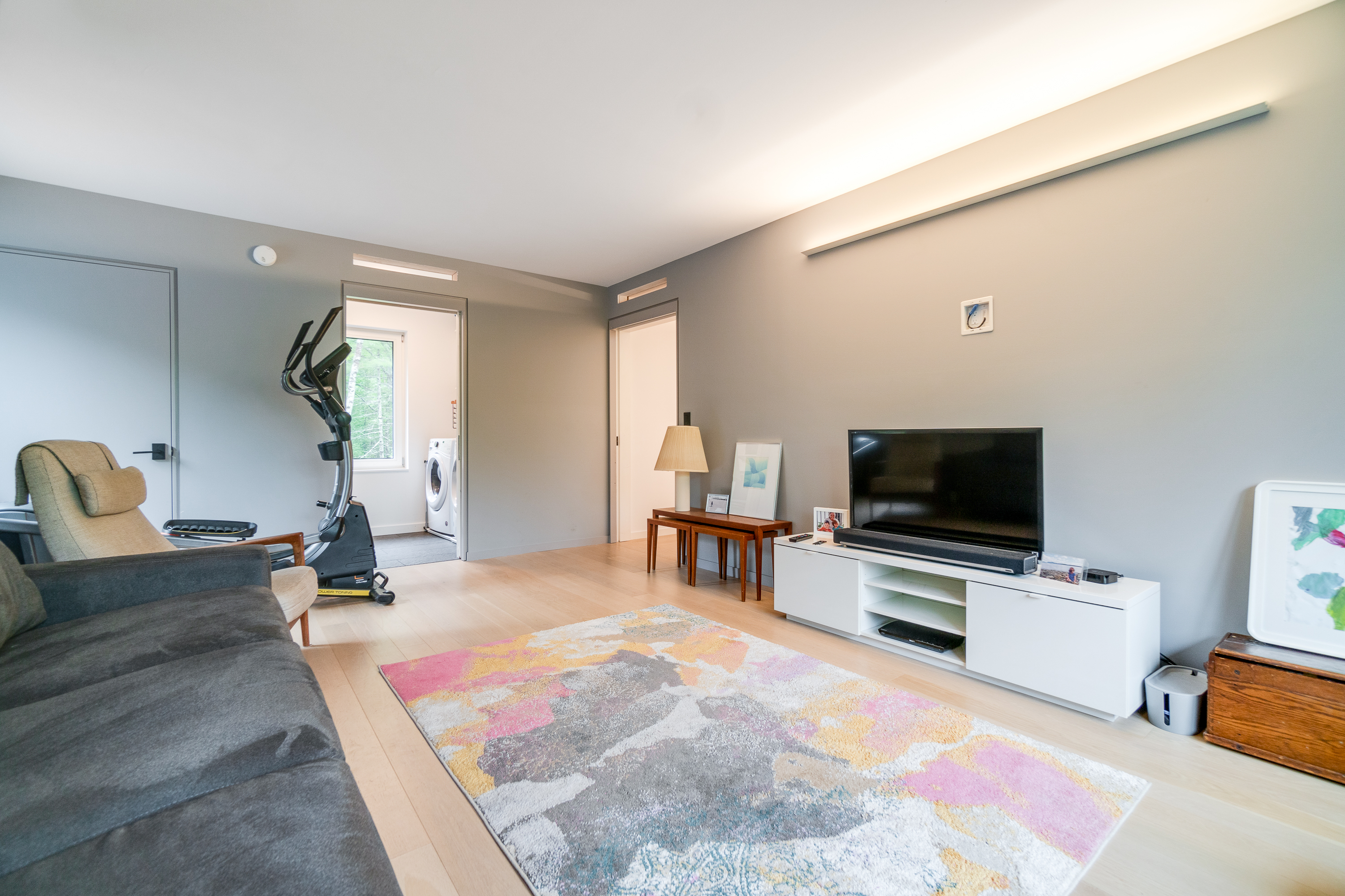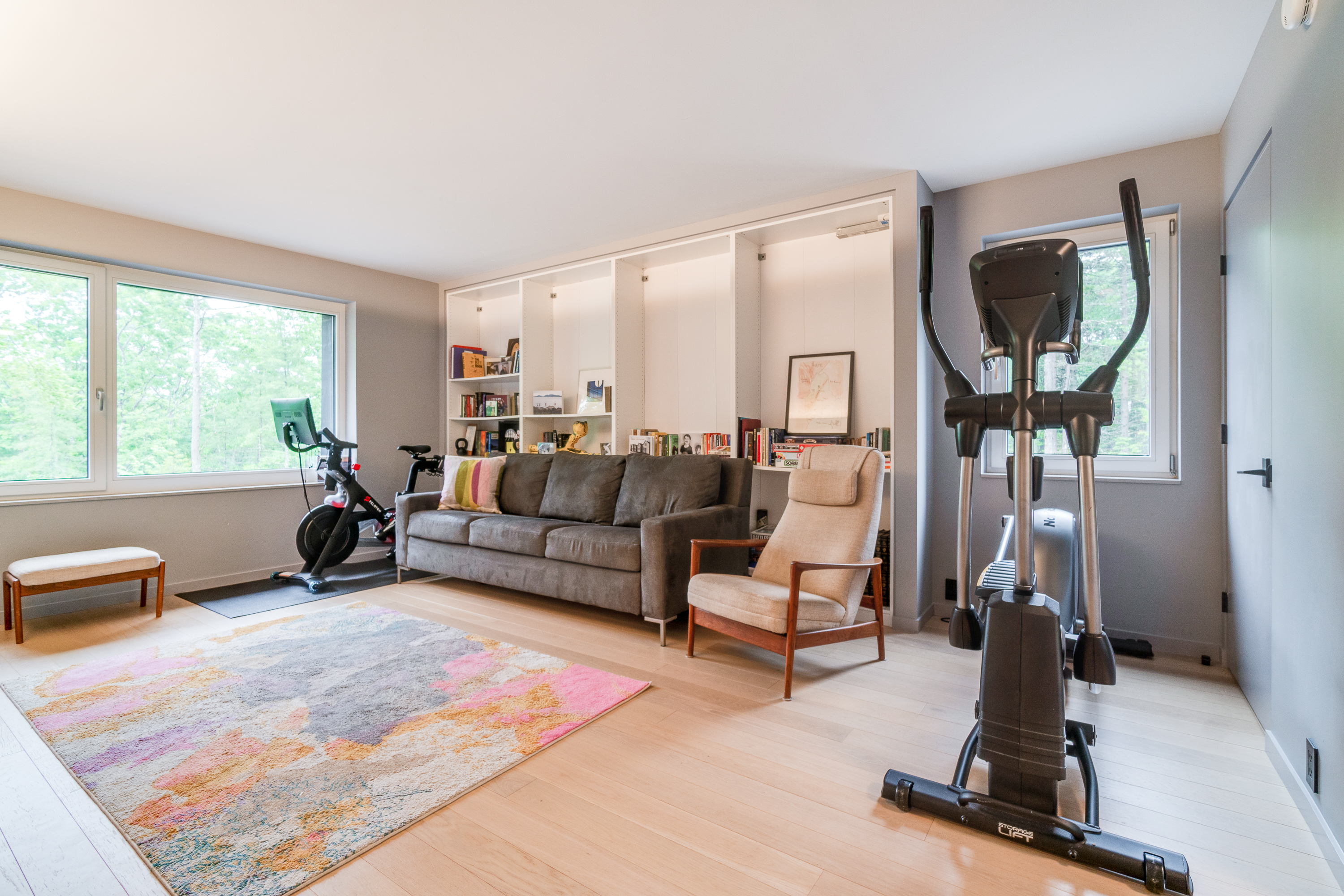 For cozy evenings at home, the living room features a projector with a retractable screen, perfect for movie nights or gathering to watch sporting events together.