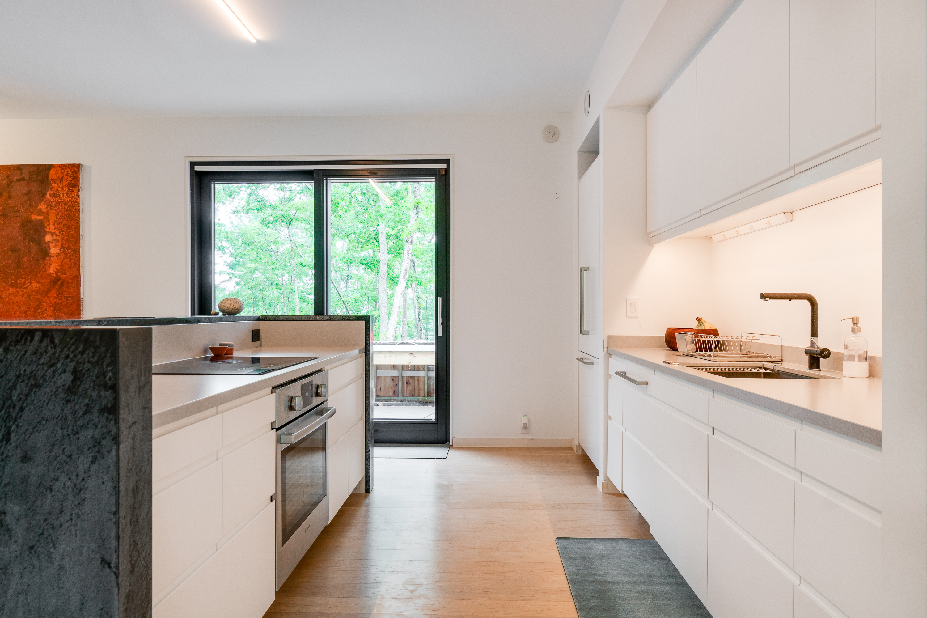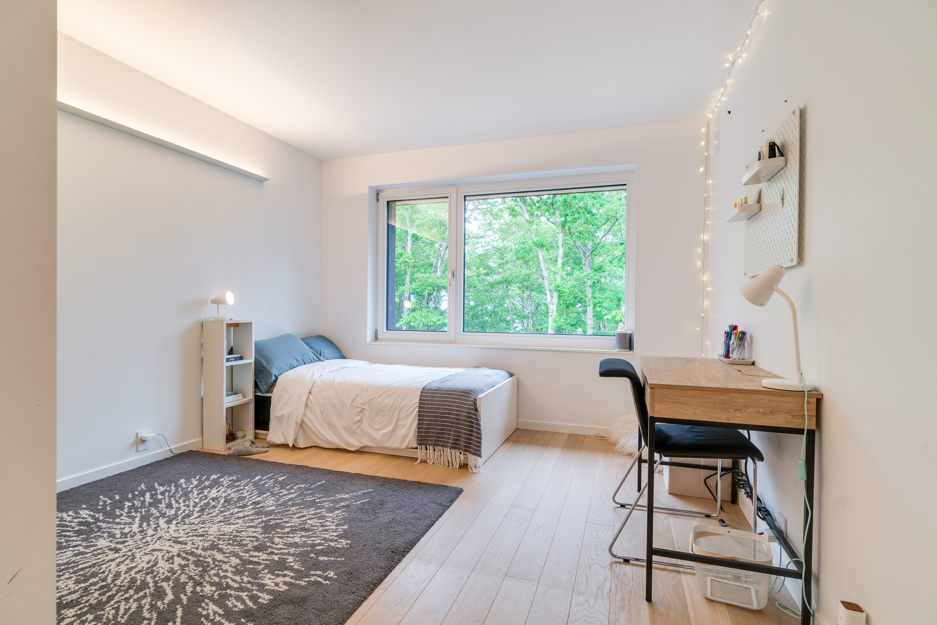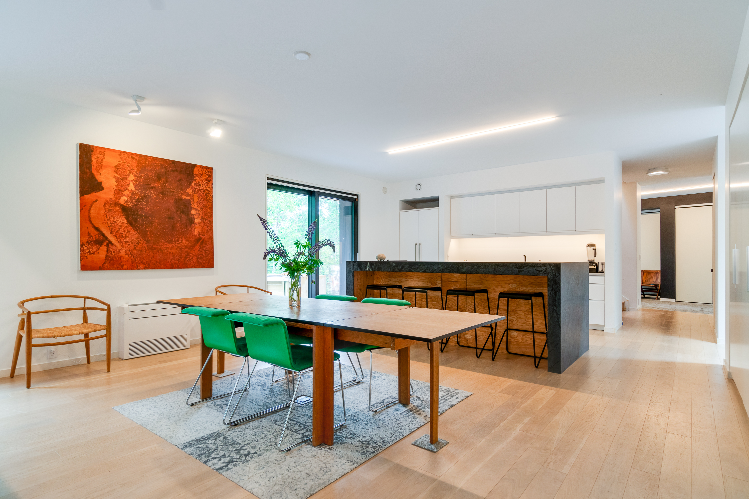 For cozy evenings at home, the living room features a projector with a retractable screen, perfect for movie nights or gathering to watch sporting events together.