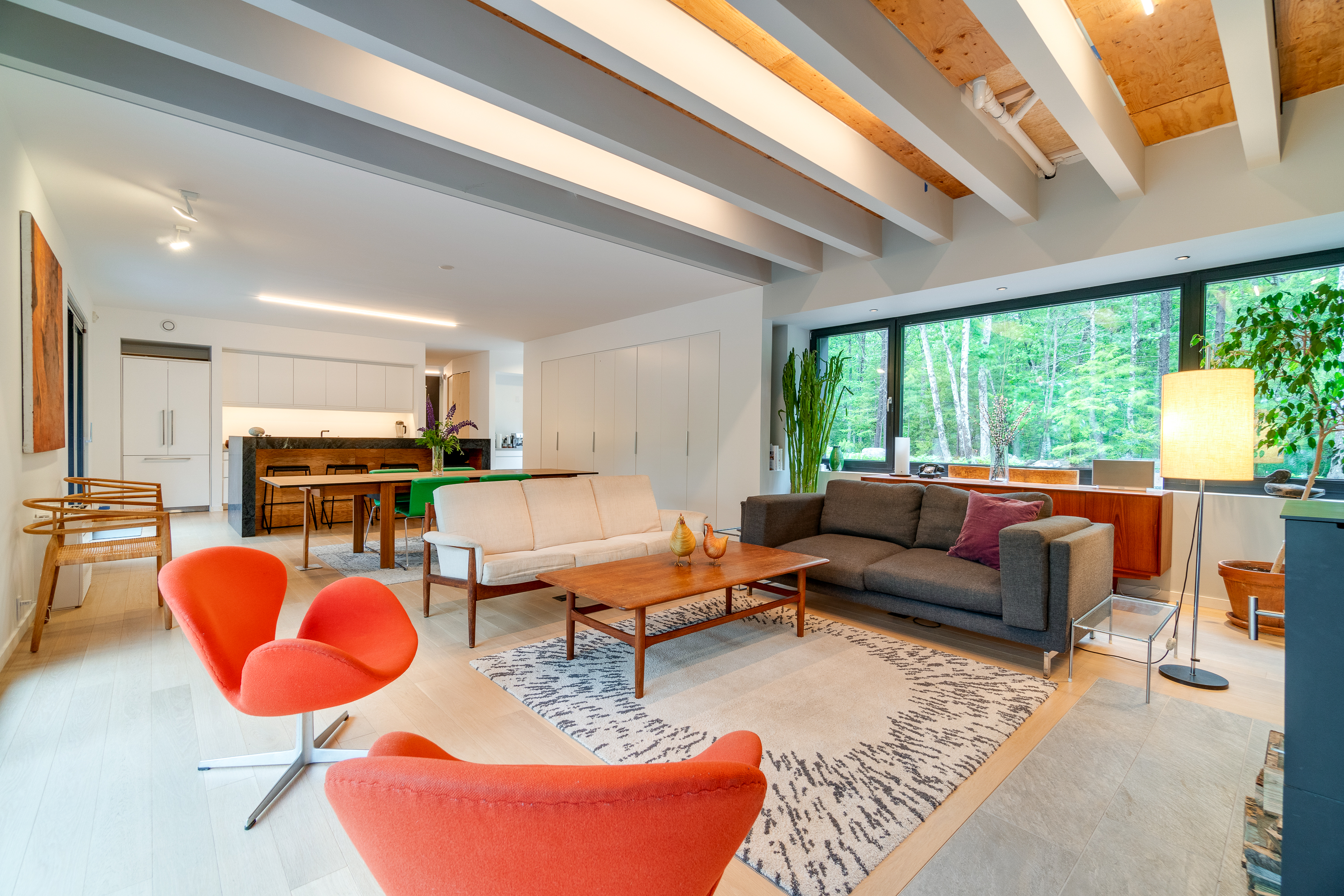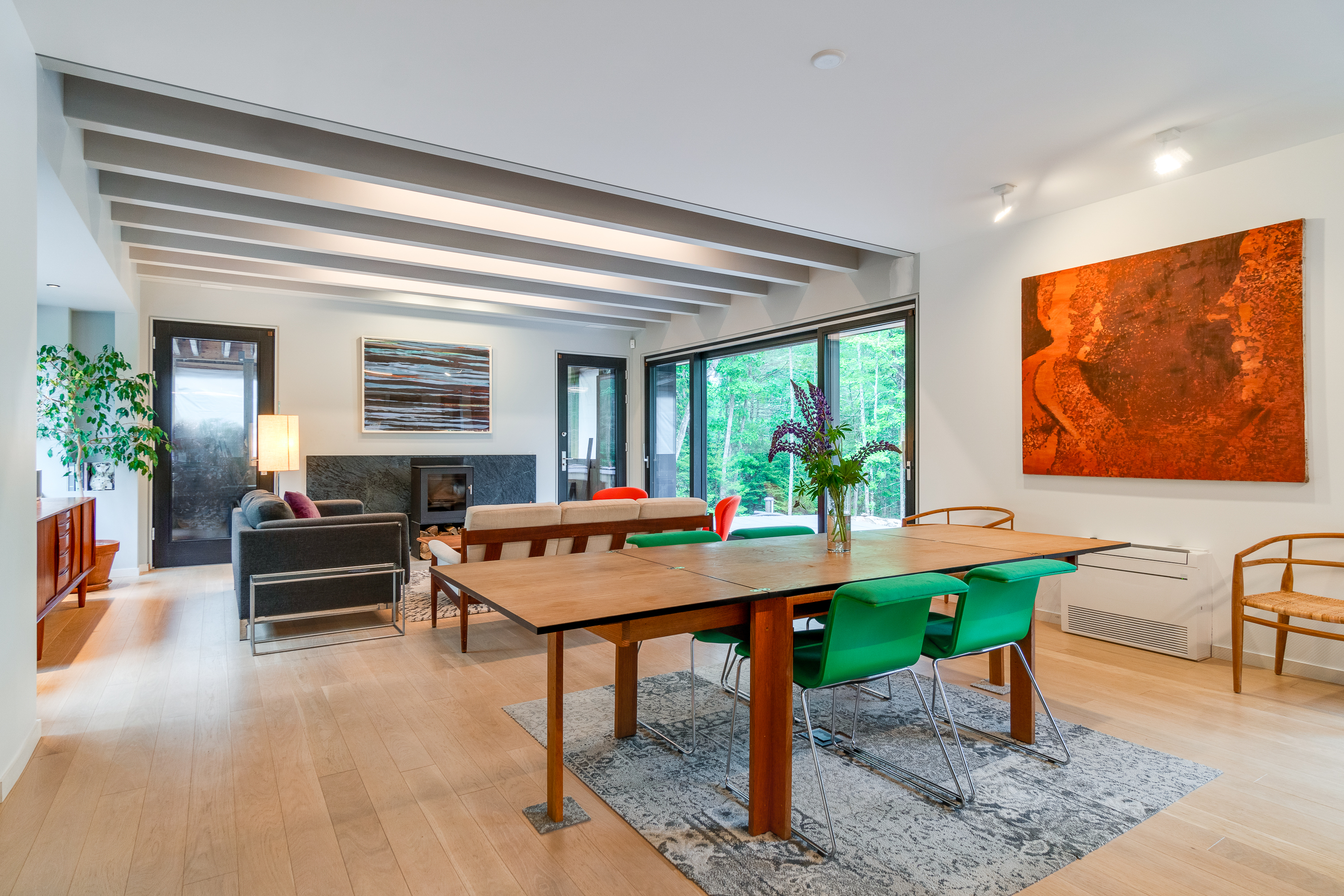 Tucked along one of Yarmouth’s most picturesque country roads, 40 Russell’s Hill Road offers a rare blend of coastal proximity, natural beauty, and quiet privacy. Surrounded by mature trees and natural greenery, the home sits within a beautifully private yard filled with woodland paths and walking trails, creating a peaceful retreat where mornings begin with birdsong and evenings unfold beneath a canopy of stars.