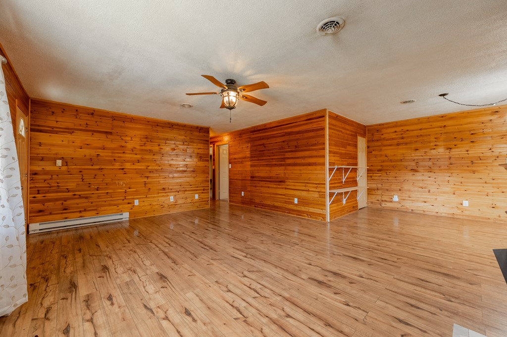 Come see this spacious home with a 3-4 year old metal roof and heat pump! Featuring walls of Cedar Planking in the family areas and down the hallway. There is a lovely kitchen with Oak cabinets and glass tile backsplash. Laminated wood floors compliment the cabin feel. A new kitchen sink has just been installed. The greatest surprise is the 6 large bedrooms that flank the hallway on both sides. A remodeled hall bathroom and a master bath complete this gem with vinyl plank floors. All of this on the main level and then a huge walk/drive out basement garage/work shop. This space provides more possible living area as you descend down the stairway to a kitchenette. A propane furnace keeps this area toasty! Front & back decks flank the house with lovely views from both. A chicken coop conveys so bring your animals to enjoy this mini farm as they will love the 9.43 acres too!