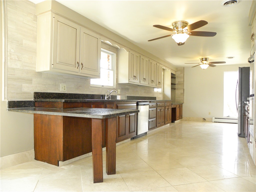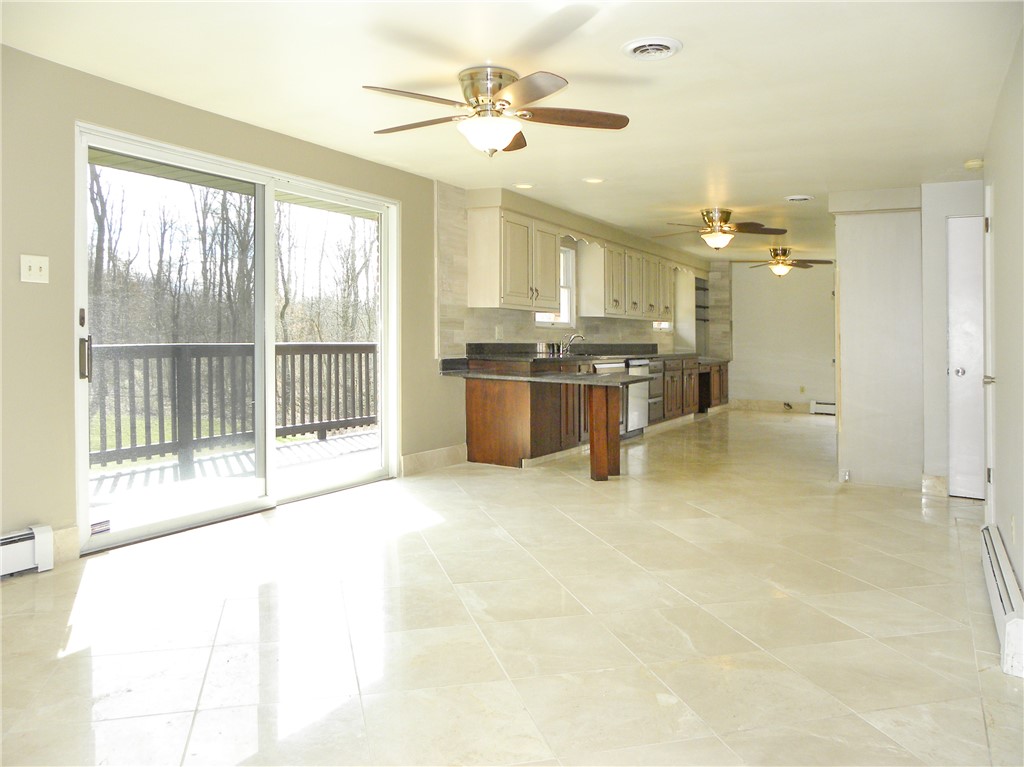 Available for rent in the heart of Finleyville, this beautifully renovated ranch offers space, convenience, and features rarely found in rental homes. A governor's driveway welcomes you in front, while a wrap-around driveway leads to a RARE 3-car garage. The rear driveway is currently gravel but will be paved/concrete this spring. Inside, luxurious tile flooring flows throughout the main living areas. The oversized kitchen is perfect for everyday living or entertaining, featuring two-tone cabinetry, granite countertops, tile backsplash, a built-in wine rack, and double ovens. Just off the kitchen, the sunny dining room connects to dual closets that provide convenient main-floor laundry. The primary bedroom offers a comfortable retreat with plush carpeting, a large closet, and a private en-suite bathroom. Two additional bedrooms provide flexible space for guest rooms, children's rooms, or home offices and are serviced by an additional full bath. The finished lower level adds even more living space with a cozy family room centered around a gas fireplace with brick surround, plus a THIRD full bathroom. Step outside from the dining room onto the deck (also scheduled to be replaced this spring) overlooking an enormous, flat, football-field-sized yard with plenty of space to relax, play, or enjoy watching the wildlife stroll past. Located just seconds from Route 88, providing quick access to Route 43, South Park, and Venetia, making commuting and everyday errands easy.