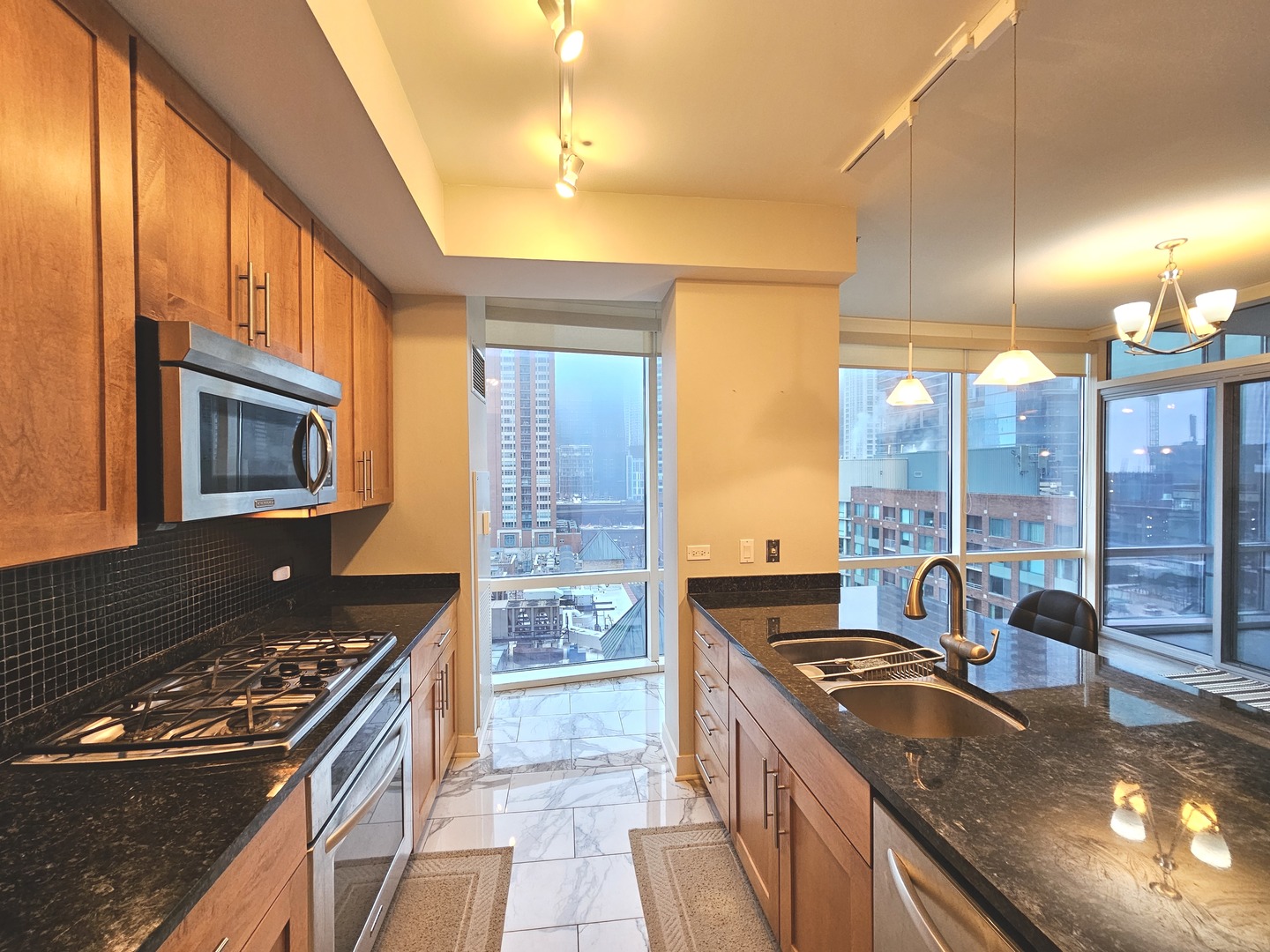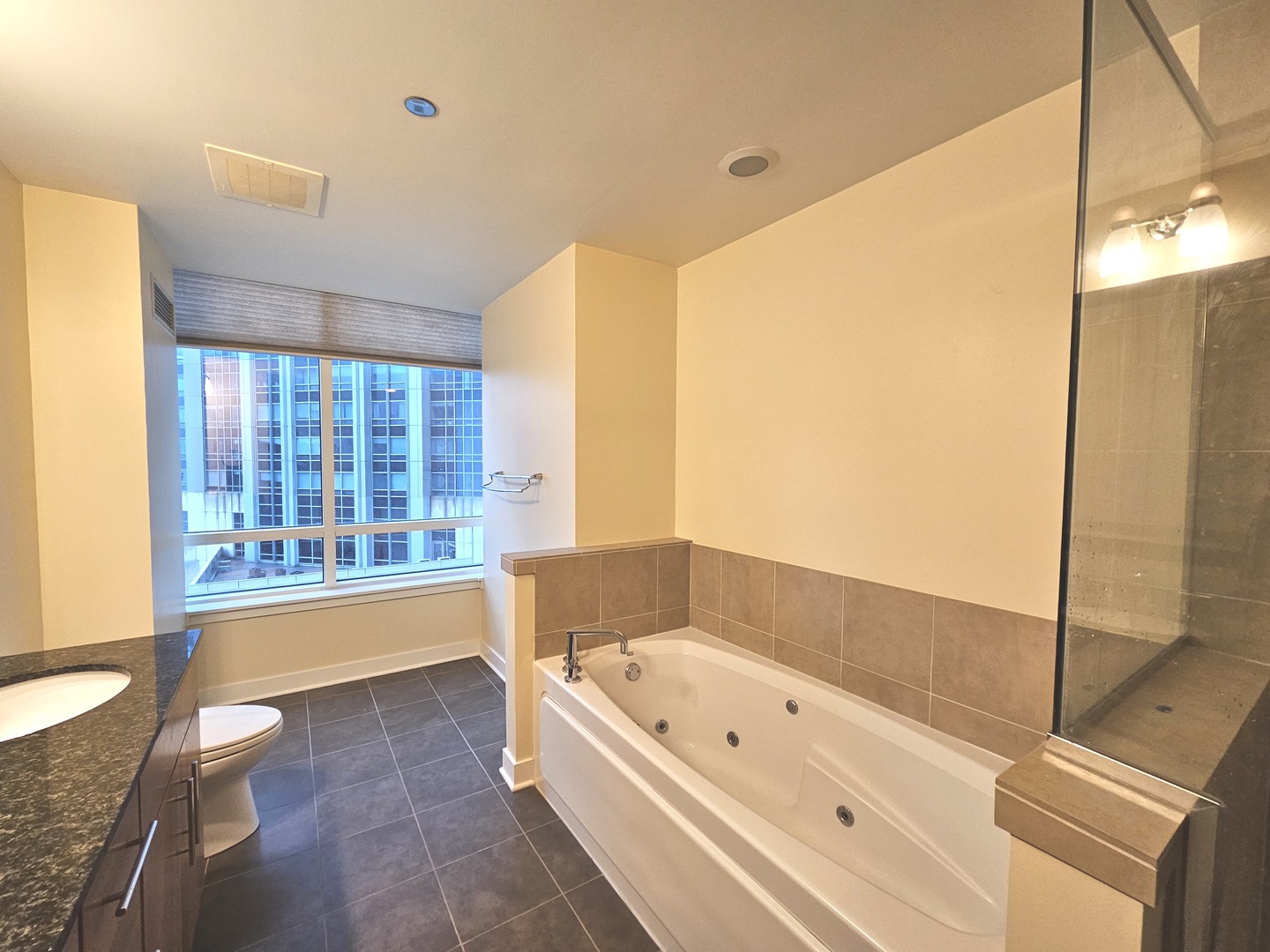 Enjoy this spacious Soth Facing Streeterville condo featuring a bright and open floor plan. The expansive living and dining area boasts beautiful hardwood floors and floor-to-ceiling windows, filling the space with natural light. The open kitchen is equipped with a breakfast bar, pantry and Ss Appliances perfect for casual dining and entertaining. The floor plan includes a generous primary suite with a walk-in closet and a spa-like bath featuring a walk-in shower, jetted tub, and double sinks and a window for natural Light The sizable second bedroom offers a wall of windows, a closet and easy access to the adjacent full bath. Additional highlights include an in-unit washer and dryer, a private balcony, and ample storage throughout. Full Amenity building including 24-hr door staff, exercise room, outdoor pool with sundeck, entertainment suite, and conference room. Prime location close to shopping, dining, the lakefront, and more! Rental Parking Available Unit Available June 1, 2026
