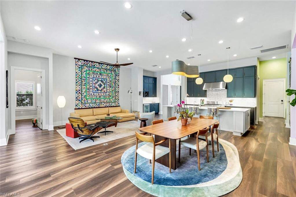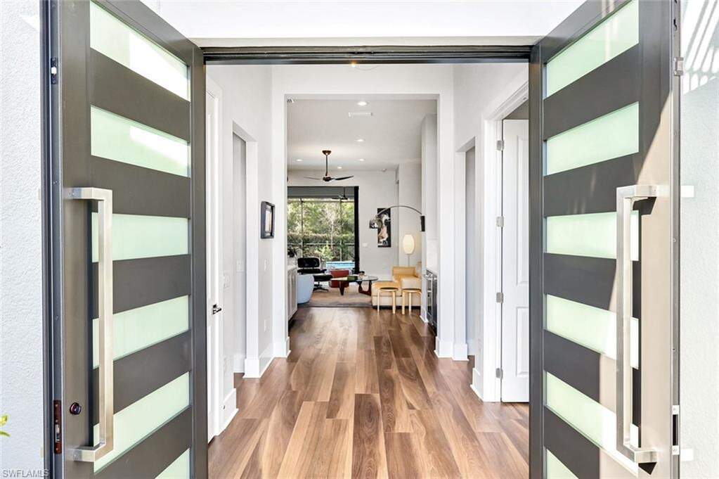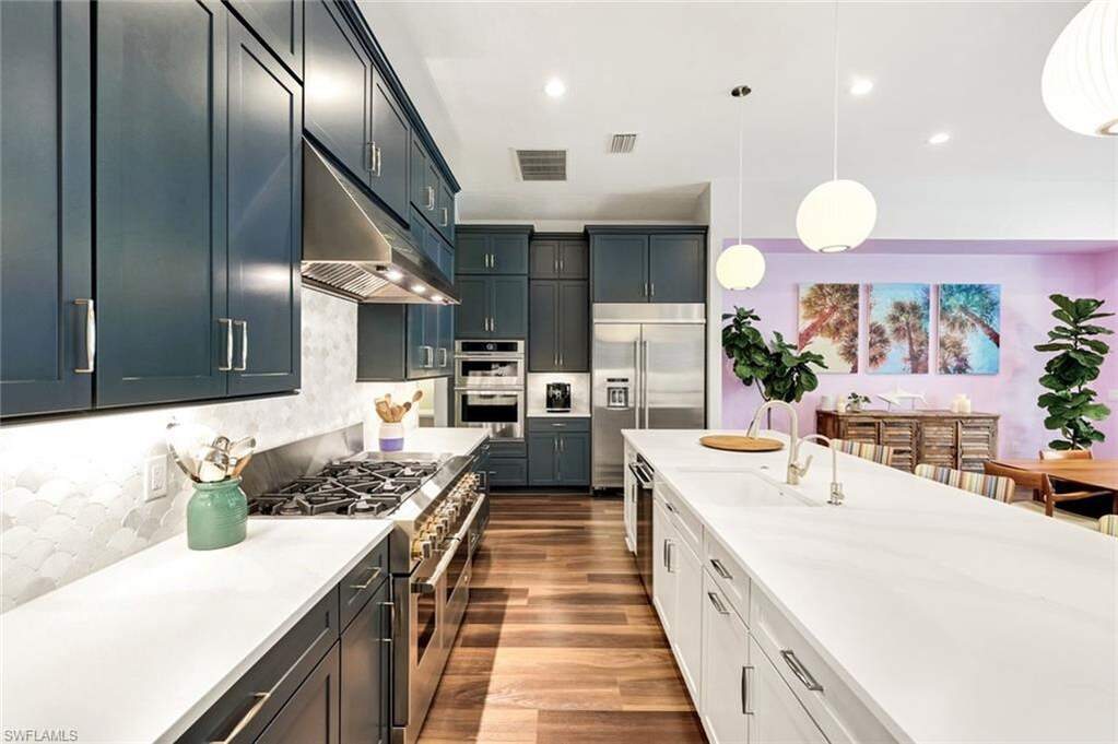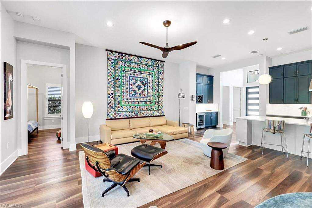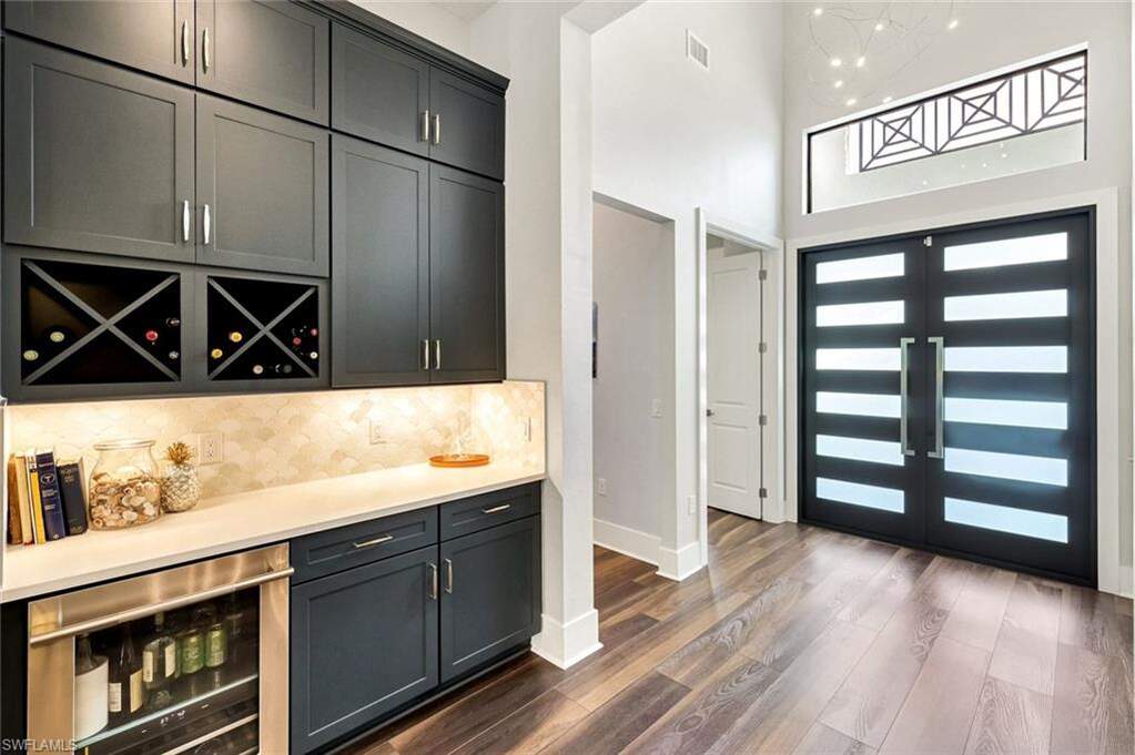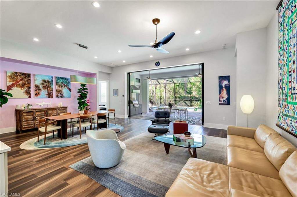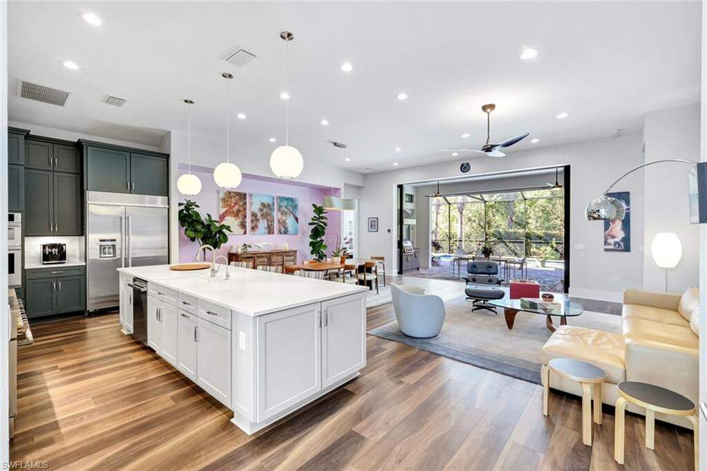 For buyers seeking luxury, location, and top-tier educational access, this luxury home, built in 2022, delivers on all counts. Its flexible floor plan, ideal for growing families, multi-generational living, or those seeking a dedicated work-from-home space, offers 5 bedrooms, 4 full baths and 1 half bath within over 3,800 square feet of living. Here in North Naples, within the private, gated community of Ardena, an intimate enclave of just 77 residences off Livingston Road, you have quick access to Interstate 75, A-rated schools, including Aubrey Rogers High School, North Naples Middle, and Veterans Memorial Elementary, and the popular Seed to Table grocery destination. The home's thoughtfully designed layout features main living and dining areas, a primary suite, and three guest bedrooms all on the main level. Upstairs, a spacious bonus room, private den, additional bedroom, and full bath create a separate retreat perfect for guests or extended family. Interior finishes include wide-plank vinyl flooring throughout the first floor, soaring ceilings, plantation shutters, Big Ass fans, and custom closet built-ins. The chef's kitchen is a joy to cook in with top-of-the-line JennAir appliances, natural gas cooking, a walk-in pantry, a separate bar with wine cooler, and a massive quartz-topped island. Impact-resistant windows and doors provide peace of mind, complemented by an electric storm shutter protecting the lanai. Significant owner upgrades include a whole-house natural gas generator, whole-house water filtration system, water softener and reverse osmosis filter in the kitchen, tankless water heater, Lennox PureAir with UVA light and carbon filter-making this home truly move-in ready. Designed for elevated Florida living, the outdoor space features a saltwater lap pool and spa, a fully equipped outdoor kitchen with built-in grill and refrigerator, and a quiet wooded view offering rare tranquility in North Naples. The three-car garage includes elevated storage and attic space for added functionality. Ardena offers low HOA fees and a quiet residential setting without bundled amenities, while optional private club memberships for golf, tennis, fitness, and an active social calendar are available just minutes away at The Strand and Quail Creek. A rare opportunity to own a nearly new pool home with impact-rated construction, whole-house generator, and optional golf club access in one of North Naples' most desirable locations.