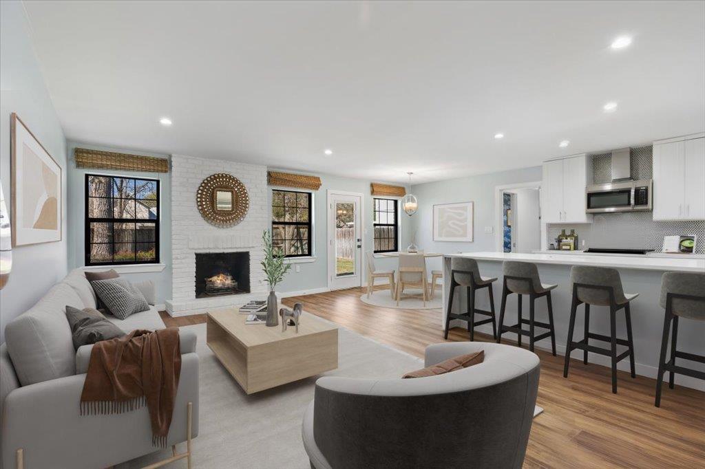 Welcome to 6102 Bullard Dr., B, a modern Colonial-style single-family townhome thoughtfully remodeled in 2019 in the heart of vibrant Allandale. The essence of the home is an open, inviting kitchen featuring a huge double waterfall Silestone center island with barstool seating, farmhouse sink, & full SS appliances while flowing to family, dining, and living room areas with built-ins for work-from-home flexibility - perfect for casual meals and entertaining. Upstairs you'll find 3 bedrooms and 2 full baths, including a spacious primary bedroom & bath with a walk-in closet. Relax in the family room or step outside to a large, private backyard - ideal for morning coffee, playtime, or weekend get-togethers. Practical touches utility room with stacked washer/dryer, a pet door, exterior storage shed, and a 1-car garage with a 220V outlet ready for EV charging. This quiet location is just minutes from downtown, restaurants, and shopping. Families will appreciate the proximity to highly acclaimed elementary and middle schools. Outdoor lovers will enjoy hiking and biking lanes along Great Northern & Shoal Creek Blvd; nearby NW Park includes shaded kids' playscapes with picnic tables, basketball & tennis courts, a brand-new pool & bathhouse coming this summer, and a nearby dog park. A peaceful, turnkey blend of classic charm and modern updates - ready for you to move in and make it your own.