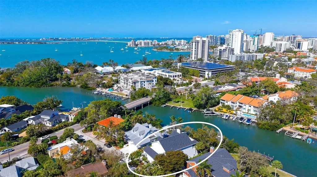 Welcome to a new (built in 2025) and extraordinary single-family waterfront home on the serene and beautiful Hudson Bayou - a premier, tranquil location that feels worlds away while reflecting the vibrancy of the city just moments away. This isn't just a house, it's your gateway to the very best of downtown living, and perhaps a viable in-town condominium alternative, with generous guest parking, low-maintenance landscape and NO ASSOCIATION DUES. Nestled in one of the city's most coveted locations, this beautifully designed residence is just steps from the world-renowned Selby Botanical Gardens- where bayfront beauty, exotic orchids, and lush tropical landscapes await. You are also steps away from the vibrant heart of Downtown Sarasota, the serene Bayfront Park for sunset strolls and events and the city's central marina. Inside you'll be captivated by the thoughtful design and an ingenious use of space throughout. The main floor features a large and comfortable open floor plan of great room and kitchen, a luxurious primary suite, an en-suite guest bedroom plus an office. The main living area opens to a lovely private patio with plunge pool and spa overlooking garden and water views. Plus your own private boat dock, featuring a 13,000 lb boat lift and 67 feet of waterfront Upstairs 2 generous en-suite bedrooms await with luxuriously designed baths, each with access to an oversized second story terrace. In addition, this level features a large gym with sauna and a second office. Every inch of this home exudes quality and modern luxury: a show-stopping kitchen with top-tier appliances, a large central island perfect for gathering and entertaining, and a cleverly concealed walk-in pantry behind custom cabinet doors that keeps everything beautifully organized and out of sight. From the high-end finishes, to the seamless indoor-outdoor flow, this detail-filled home combines quality, elegance, and functionality with the unbeatable Sarasota lifestyle. It's where nature, culture, and waterfront living converge right outside your door. Come experience yourself!