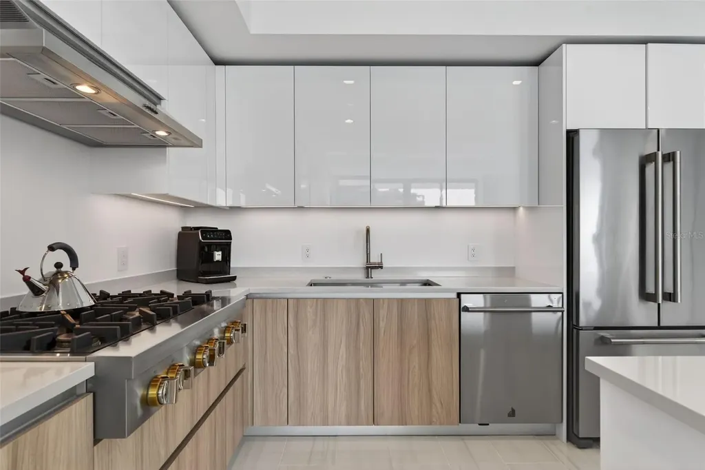 Residence 1405 at 400 Central offers a rare and thoughtfully customized layout in the heart of downtown St. Petersburg. This expansive residence spans over 1,700 square feet and features two bedrooms and three full bathrooms, with both bedrooms offering private ensuites. The primary suite features dual walk-in closets with custom built ins and LED vanity mirrors with integrated medicine cabinets. What sets this home apart is its unique floor plan. The owners removed what would have been a small third bedroom and transformed the space into an open dining area that flows seamlessly into the living room, creating a much larger and more inviting entertaining space. This flexible area could easily function as a home office if desired, offering a layout rarely found in the building. Floor to ceiling glass fills the home with natural light and opens to an oversized southeast facing balcony with sweeping views of the city skyline, Tampa Bay, and even the distant Sunshine Skyway Bridge. Porcelain tile flows throughout the residence, and the kitchen is outfitted with Jenn-Aire appliances, a gas range which is a rare luxury in downtown condo living, and under-island storage. As the tallest residential tower on Florida's west coast, 400 Central rises 46 stories above downtown and offers resort style amenities, a pet friendly environment, and walkable access to the best dining, shopping, and waterfront parks the city has to offer. City living truly does not get better than this.