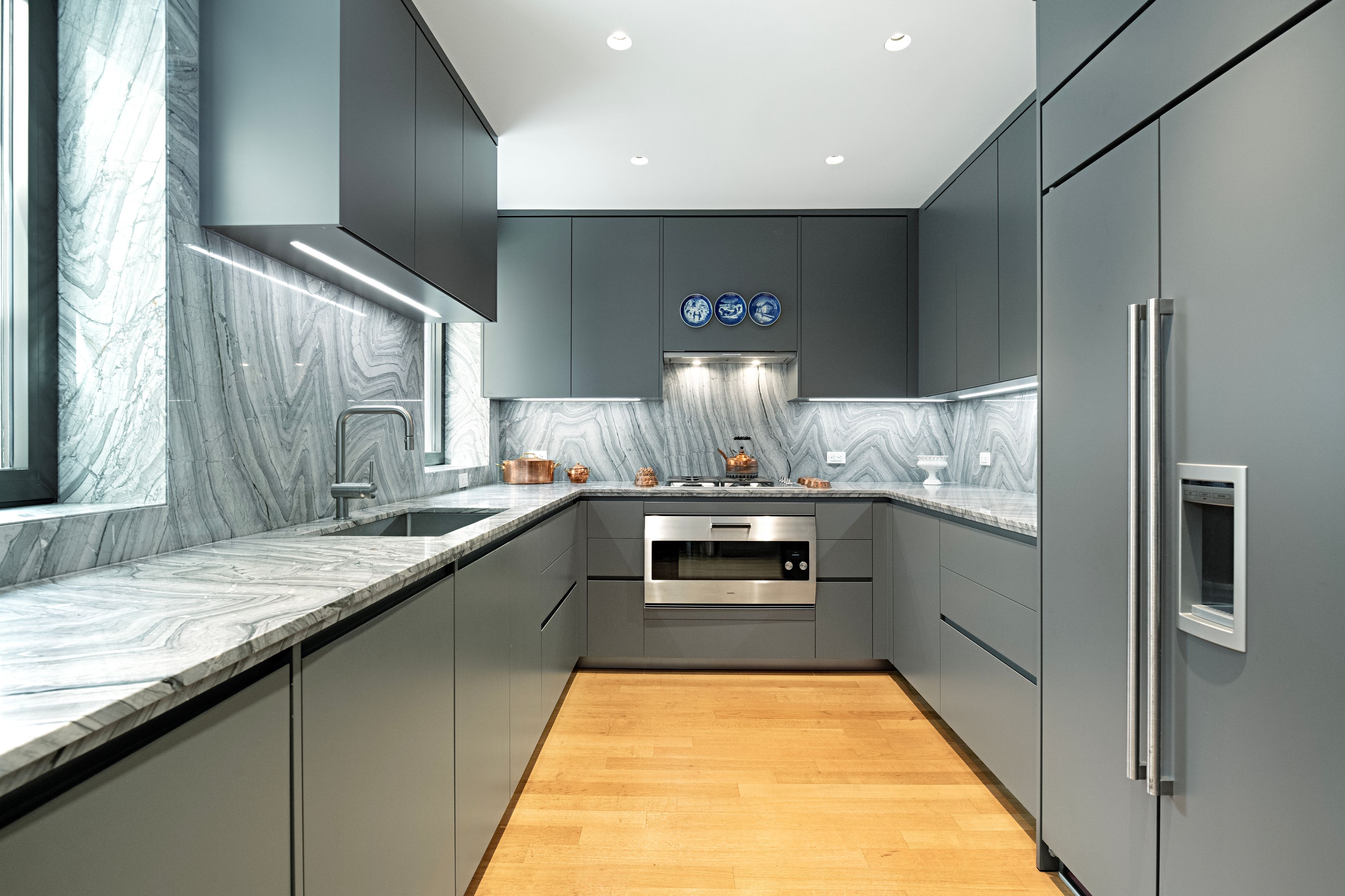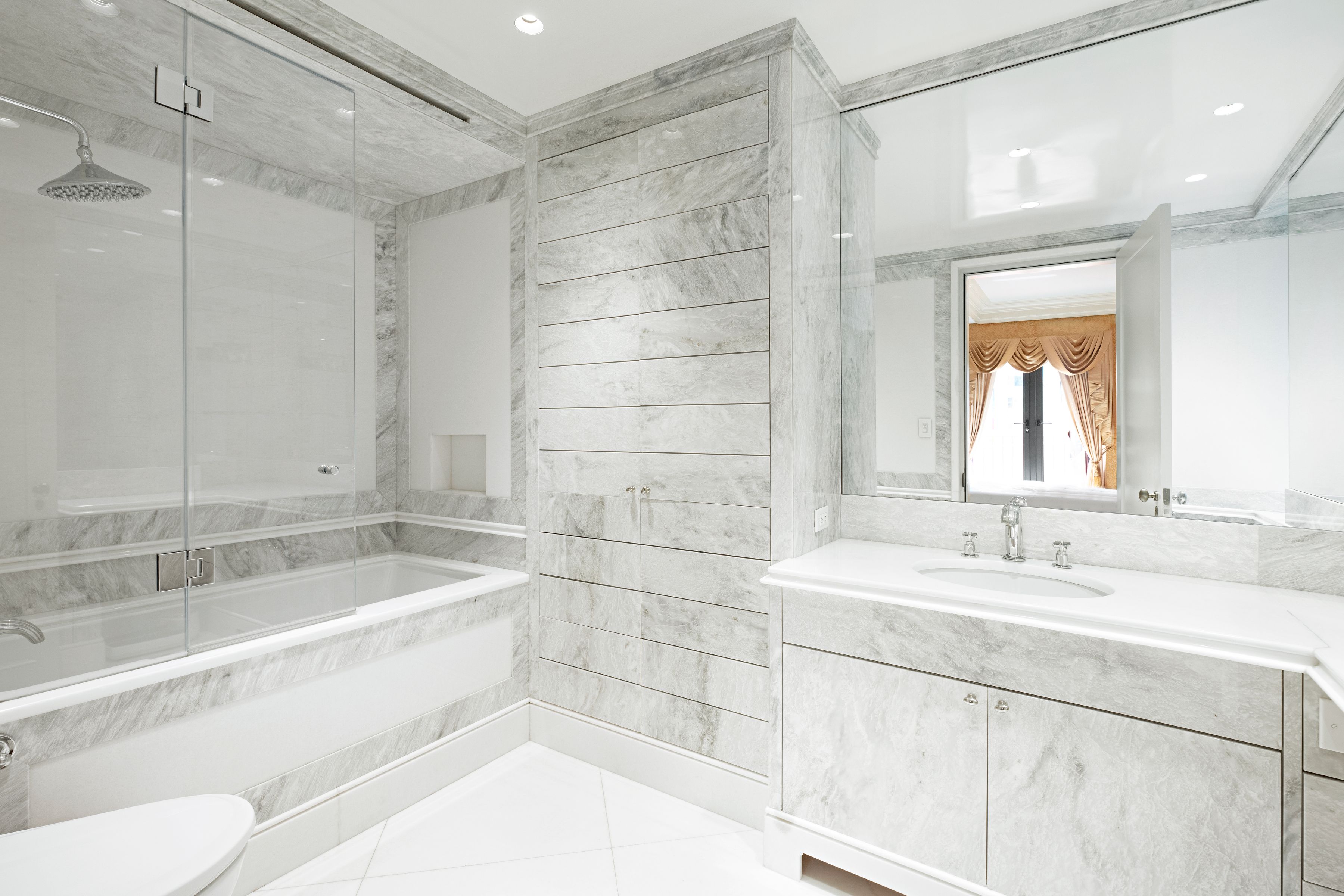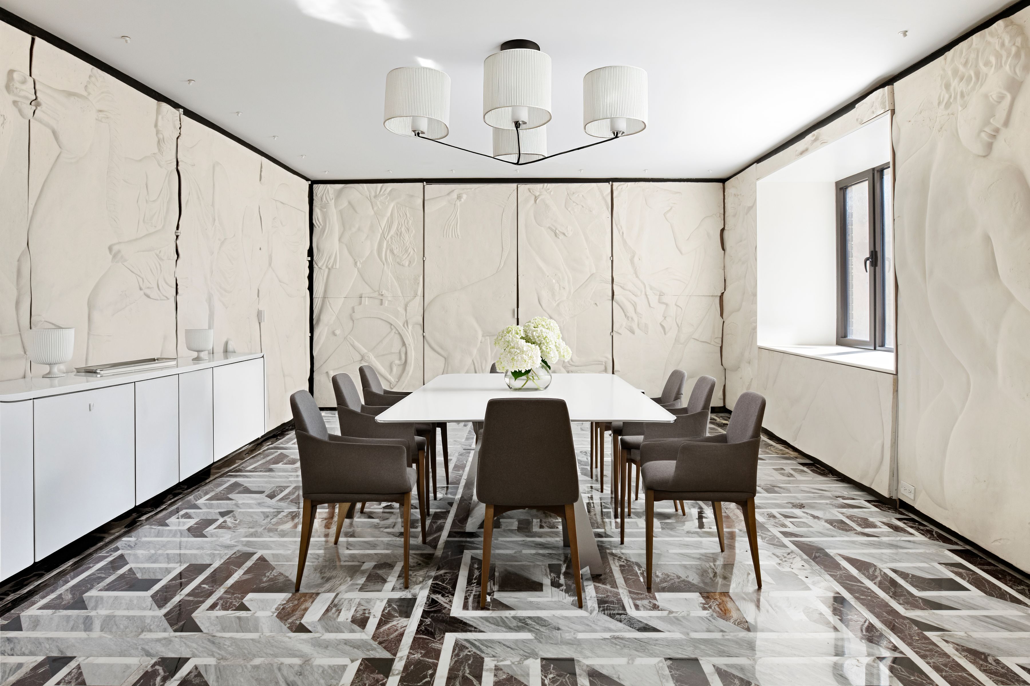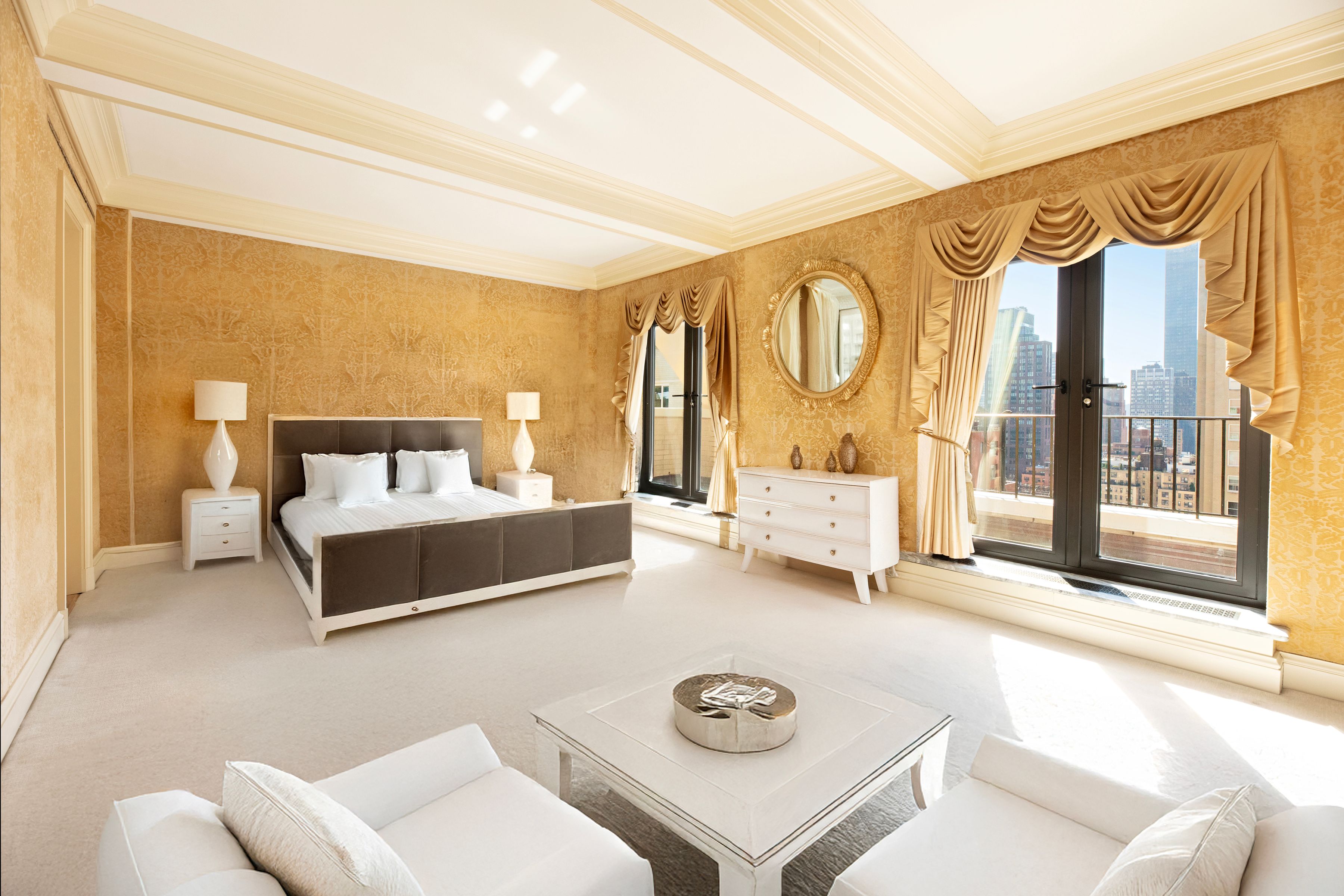 This extraordinary Sutton Place penthouse has been masterfully reimagined by AD100 designer Juan Pablo Molyneux, resulting in a residence of exceptional scale, craftsmanship, and elegance. Offering approximately 3,300 square feet of interior space and over 450 square feet of exterior space, this two-bedroom, three-bathroom home has been thoughtfully designed with every detail carefully curated. A private elevator landing opens to a gracious entrance gallery, where custom inlaid marble mosaic floors, 6-inch marble baseboards, and finely finished stone-painted walls set a sophisticated tone and lead seamlessly into the entertaining spaces. The dramatic living room is defined by soaring 18-foot ceilings, a wood-burning fireplace with a custom-molded glass mantel, and exquisite Parquet de Versailles oak flooring. Oversized French windows, crowned with arched lunettes, open onto an approximately 30-foot, sun-filled north-facing terrace—perfectly designed for entertaining and enhanced by elegant architectural detailing. A formal dining room comfortably accommodates up to twelve guests and is bathed in natural light from a large south-facing window. Lutron lighting throughout allows for an equally refined ambiance in the evening. The windowed chef’s kitchen is impeccably appointed with Porcelanosa cabinetry, striking marble countertops and backsplash, and top-of-the-line appliances, including a Sub-Zero side-by-side refrigerator/freezer, Miele oven and cooktop with vented hood, Miele microwave, an additional Sub-Zero refrigerator, Grohe fixtures, and a 28-bottle wine cooler. A beautifully renovated powder room serves this level and leads to the private wing. The serene primary suite features a south-facing terrace, a wood-burning fireplace, and two luxurious en-suite bathrooms. One is finished in elegant grey and white marble with mirrored walls, a built-in vanity, and generous storage. The second is richly appointed with Wenge wood paneling and flooring, Travertine marble, a soaking tub, and a separate shower with a 24-inch rain shower head. Both bathrooms are windowed and feature heated marble floors and imported Sardinelli fixtures. Adjacent to the suite is a private windowed room, ideal as a home office, gym, or dressing room. A sculptural curved staircase leads to the upper level, where a spacious open room offers flexibility as a library, media room, home office, or artist’s studio. A secondary bedroom with an east-facing window and en-suite black and white marble bath completes this floor. The residence is equipped with top-tier systems, including central HVAC, Lutron lighting throughout, a washer/dryer, and upgraded electrical and plumbing systems. Additional features include heated marble floors in the gallery, dining room, and primary bathrooms, as well as a private storage bin. 322 East 57th Street is one of Manhattan’s most distinguished prewar cooperative buildings, designed in 1929 by Harry M. Clawson. This neo-Classical limestone building comprises just 19 residences across 21 floors and is renowned for its grand proportions and iconic double-height living spaces. Long favored by those seeking a refined and discreet lifestyle, the building offers a full-time staff, allows pied-à-terre ownership and pets, and is ideally located in Sutton Place near the East River Promenade and some of the neighborhood’s best dining and shopping. 3% flip tax.