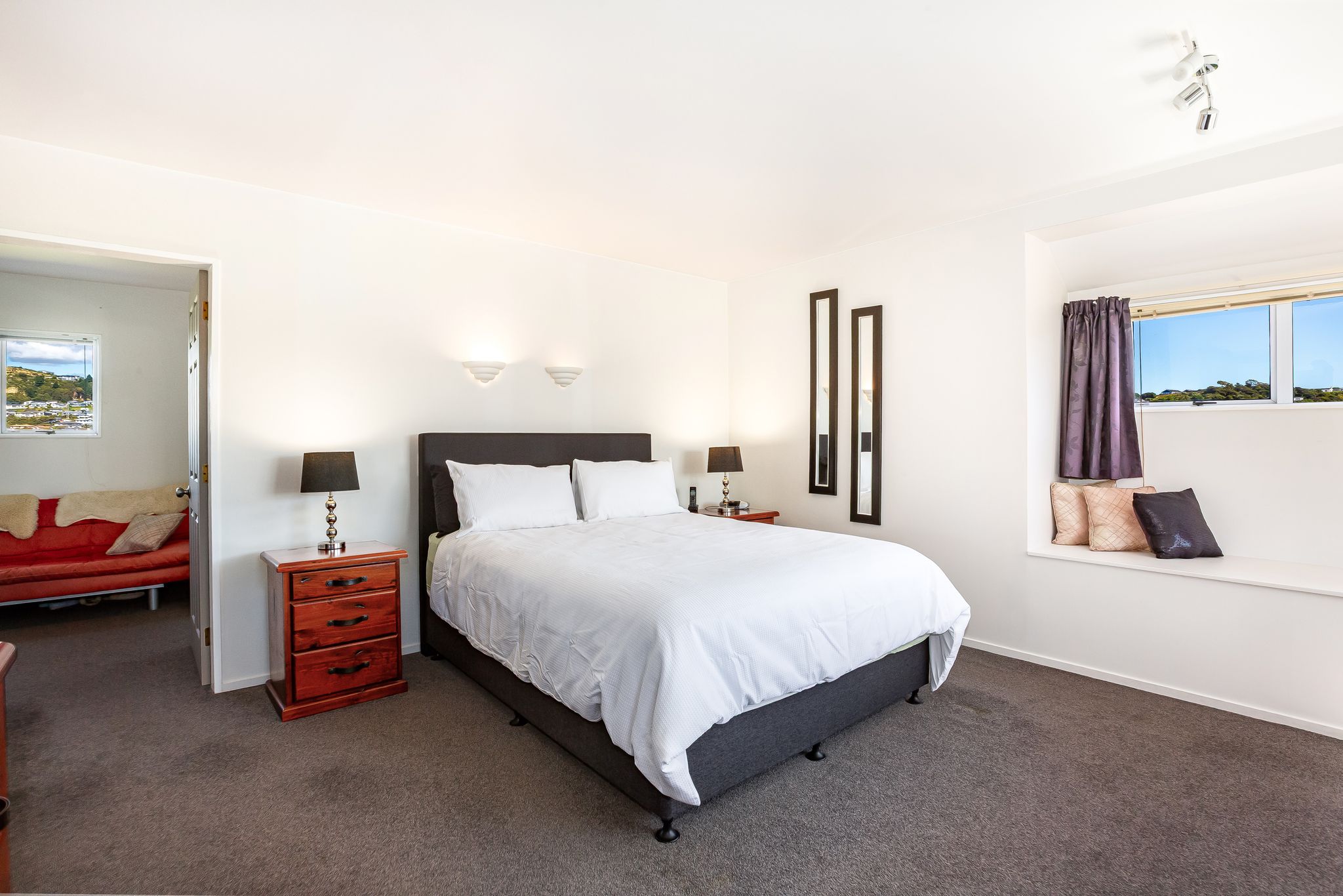 There’s four oversized double bedrooms, one on the ground floor with an adjoining bathroom – a great option for those requiring single storey living. Upstairs you’ll find the other three bedrooms and family bathroom which is spacious and well positioned for the two bedrooms it services. The master bedroom has its own dressing room and ensuite, and the window seat has views of the Pauatahanui Inlet.