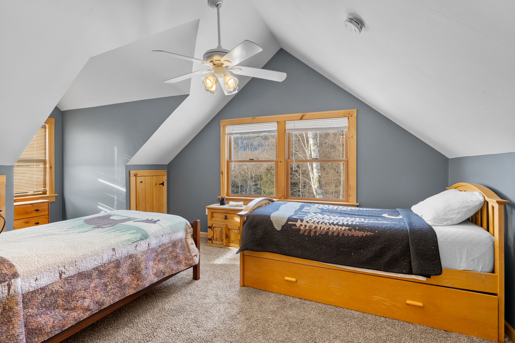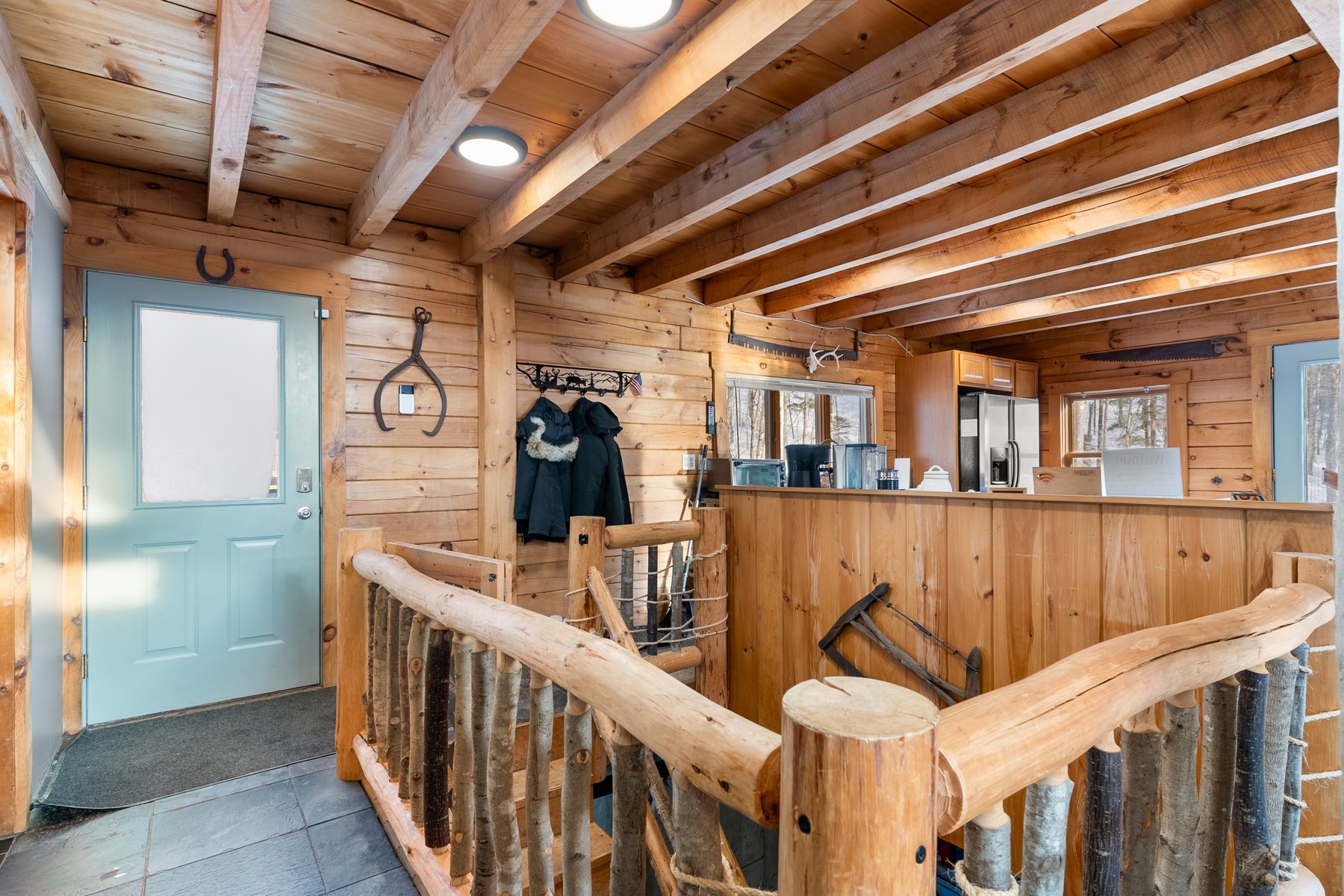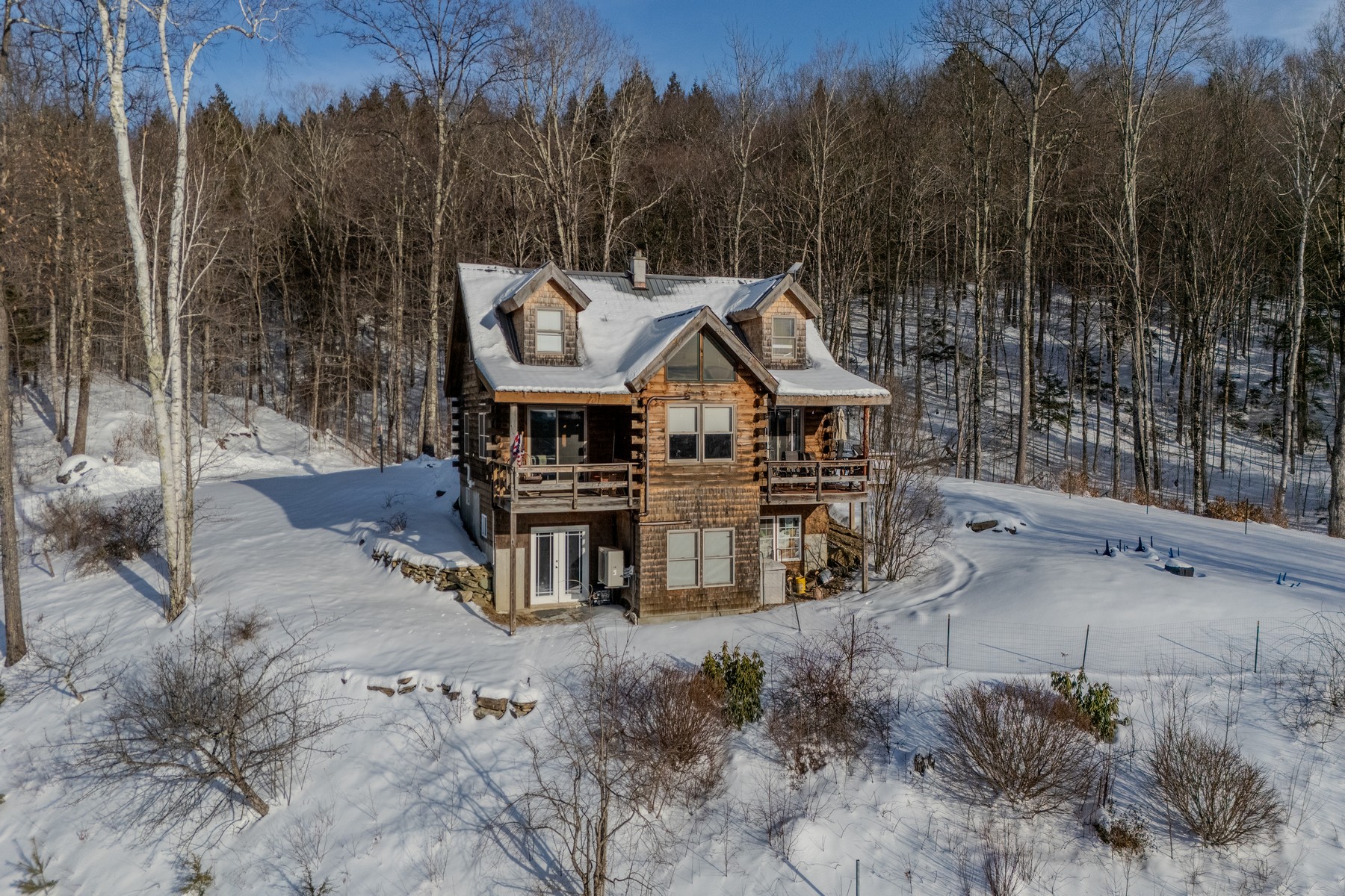 Welcome to this charming country log home set on 30.6 private acres at the peaceful end of the road. Thoughtfully positioned to capture its surroundings, the home sits just high enough to enjoy pleasant views and beautiful mountain sunsets, best experienced from the inviting covered porches and open deck. Inside, the open-concept main level features abundant windows and cathedral ceiling creating a bright and airy atmosphere. Stay warm during Vermont winters with a cozy wood stove and radiant floor heating while mini-split units provide additional heating and cooling year-round. The second level has been recently updated with new carpeting. The spacious partially finished walkout basement with 9-foot ceilings offers incredible potential for additional living space, a recreation area, or workshopready for your personal vision. Outdoor enthusiasts will love the trail right from the property with direct snowmobile access to the VAST trail system. Experience the tranquility, privacy, and natural beauty this Vermont property has to offeryour perfect place to call home.