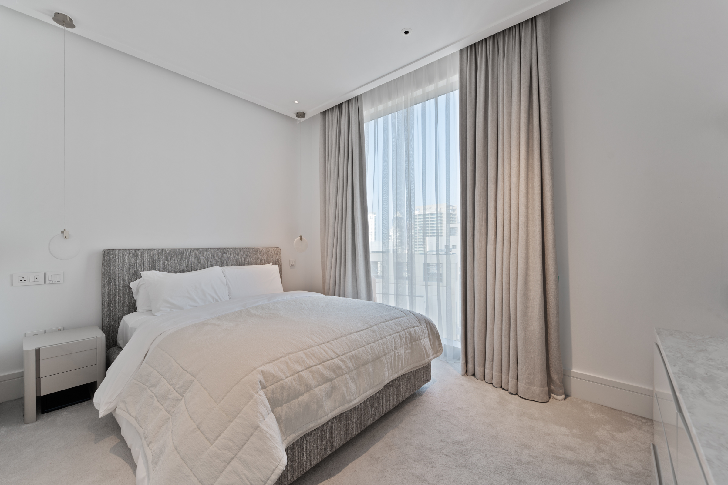 Occupying a high floor in Vida Residence in Downtown, this exquisite turnkey three-bedroom apartment unfolds across 2,012.10 sq.ft. and enjoys vistas of the Burj Khalifa. Fully furnished with pieces imported from Europe, the interiors boast splendid finishes and balanced tones. Light filters through floor-to-ceiling windows, illuminating the entire home.