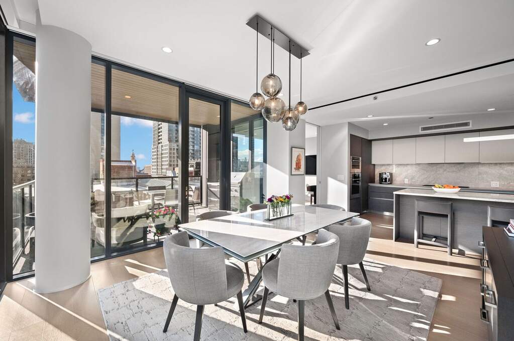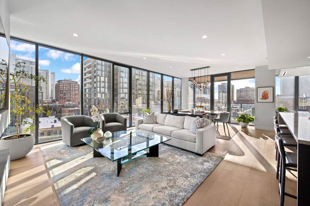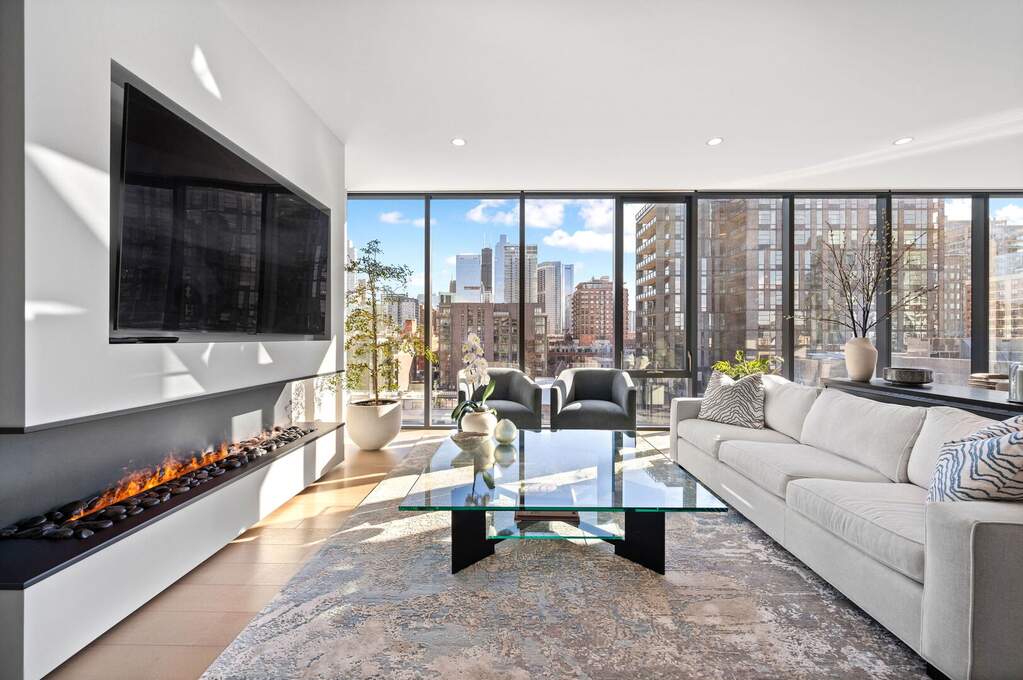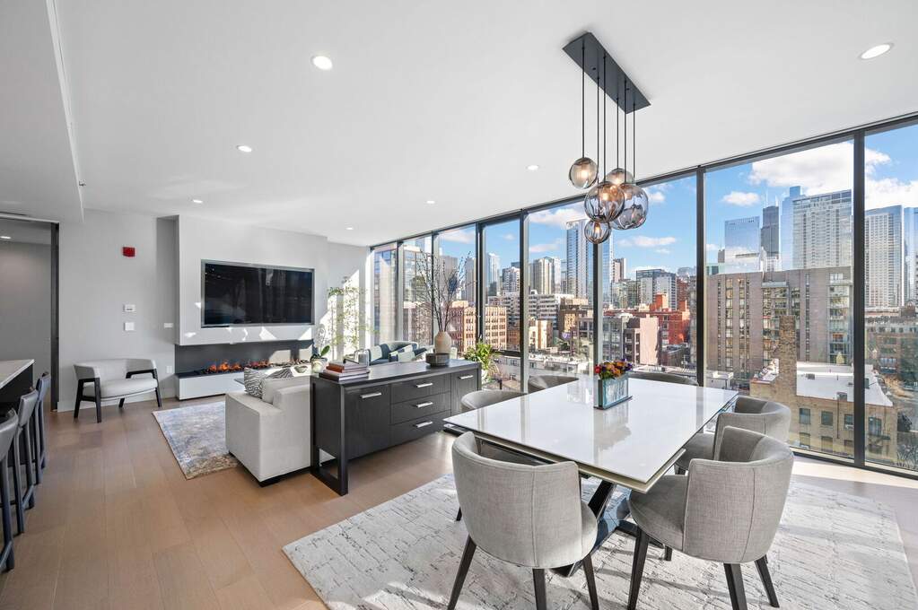 Exquisite 3-bedroom, 3-bath residence offering approximately 2,320 square feet of refined living within the architecturally celebrated Superior House. Built in 2020, this sophisticated home is bathed in natural light through dramatic floor-to-ceiling windows with prized South and West exposures. The expansive living and dining spaces flow seamlessly into a stunning chef's kitchen appointed with Taj Mahal quartzite countertops and backsplash, Sub-Zero refrigeration with dual-zone wine storage, Wolf range and oven, and Miele dishwasher, all complemented by sleek custom Brazilian cabinetry. Elevated design details include in-ceiling invisible speakers, automated window shades, wide-plank engineered oak flooring, and a striking steam fireplace anchoring the living room. The serene primary suite is a true sanctuary featuring heated floors, a spa-inspired bath with rain shower and body sprays, bidet, and a bespoke custom-designed closet. Residents enjoy a full suite of boutique amenities including 24-hour door staff, secure package room, bike room, fitness center, and an elegant indoor party room with chef's kitchen, along with an expansive rooftop sundeck, garden, and outdoor entertaining space. Two garage parking spaces available at $50,000 each, complete with a fully installed EV charger. An exceptional opportunity to experience boutique luxury living in the heart of River North, moments from the neighborhood's premier dining, galleries, shopping, and nightlife.