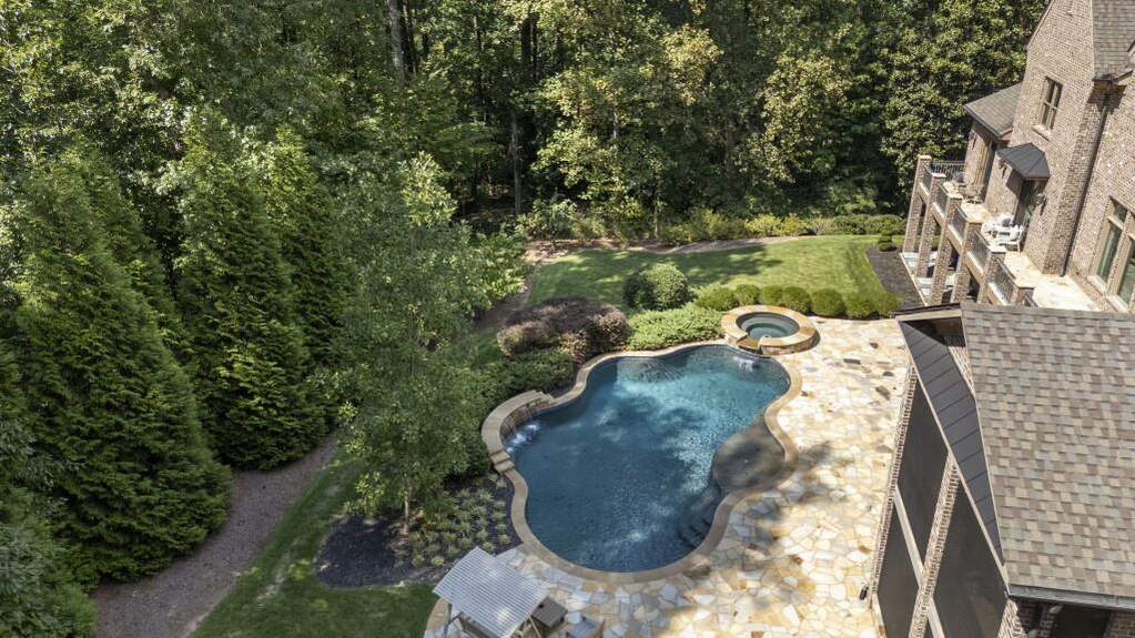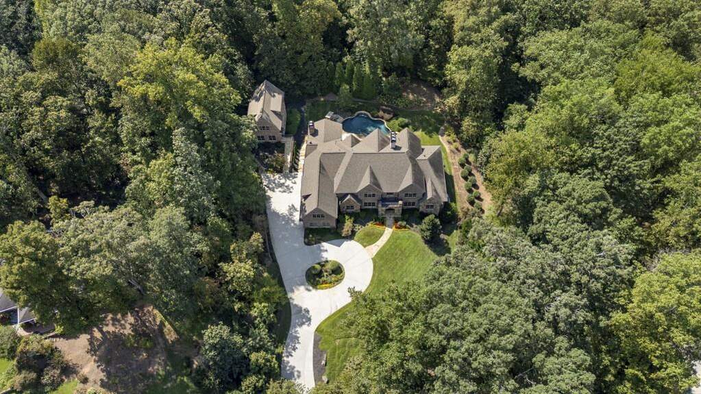 Privacy beyond measure abounds on this 2 +/- acre gated estate. Brilliantly crafted by Mark Alan Homes LLC in 2016. The Owners spent over two and a half years looking for a grand lot of this caliber. Backing up to protected green space. The main house and guest house are all brick and stone with manicured lawns by Ed Castro Landscape. Inside, the home opens to wide hallways, high ceilings, every space is richly detailed. The main level living is anchored by an expansive chef's kitchen appointed with Sub-Zero, Wolf, Bosch, and Scotsman appliances, featuring an oversized Quartzite island and dedicated scullery. Open floor plan leads to fireside Keeping room and outdoor screened porch. The private study w/ Pocket doors is a perfect retreat for business. A dramatic hand painted banquet-sized dining room is located just steps from the scullery and service area, and a paneled elevator connects all 3 levels. The glamours primary suite offers a wing in itself on the main level. Beautiful ceiling details, fireside sitting area, glass doors open to a private balcony overlooking the pool and lush backyard. The marble spa- style bath with soaking tub, steam shower and rich cabinetry lead to a custom built closet with island and chandelier. A laundry room and wet bar add to the suite's functionality. The home features custom wrought iron that add character and craftsmanship throughout the interior and exterior spaces. The terrace level is complete with custom bar that opens to large entertaining spaces with TV's, game room, bedroom, theater, state of the art gym with full bath, steam shower with aromatherapy. Three sets of French doors open to the outdoor porches. In total the home has 7 fireplaces, 2 are located on both screened porches, 4 laundry rooms, a generator that serves both the main home and the guest house. A large 4-car garage comes fully equipped to support up to four electric vehicle charging stations. Outdoor living is a defining Feature of the property. A heated saltwater pool and spa are framed by covered porches, a grilling and bar area designed for year-round enjoyment. The three-story guest house mirrors the quality and craftsmanship of the main residence. Featuring an open floor plan on the main floor overlooking the pool. The kitchen is equipped with Kitchen Aid SS appliances and gas stove with 4 burners, Quartzite counters all open to the dining and family room full of natural light. Two large bedroom suites with sitting areas, two full, and one half baths, stackable laundry room in the upstairs level. The lower level has a cozy den area with desk and French doors to walk out pool. Carefully designed and meticulously maintained. It is a residence built not only to impress, but to live in, now and for years to come.