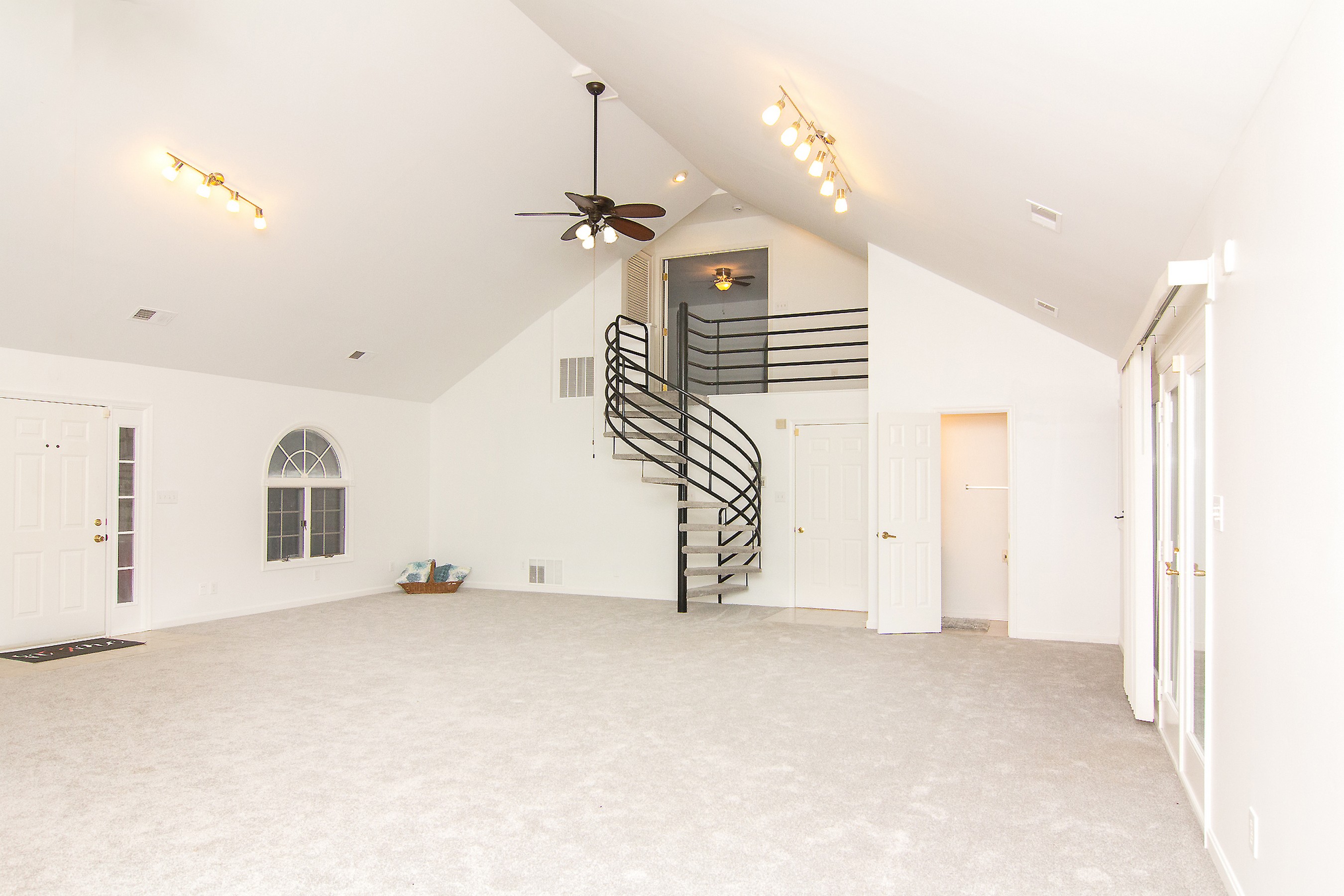 Architectural details add to the home's distinctive charm, including a spiral staircase leading to a loft-style bedroom with balcony overlooks, offering a dramatic and flexible living space. The interesting and functional floor plan provides both openness and separation, making the home as practical as it is memorable.