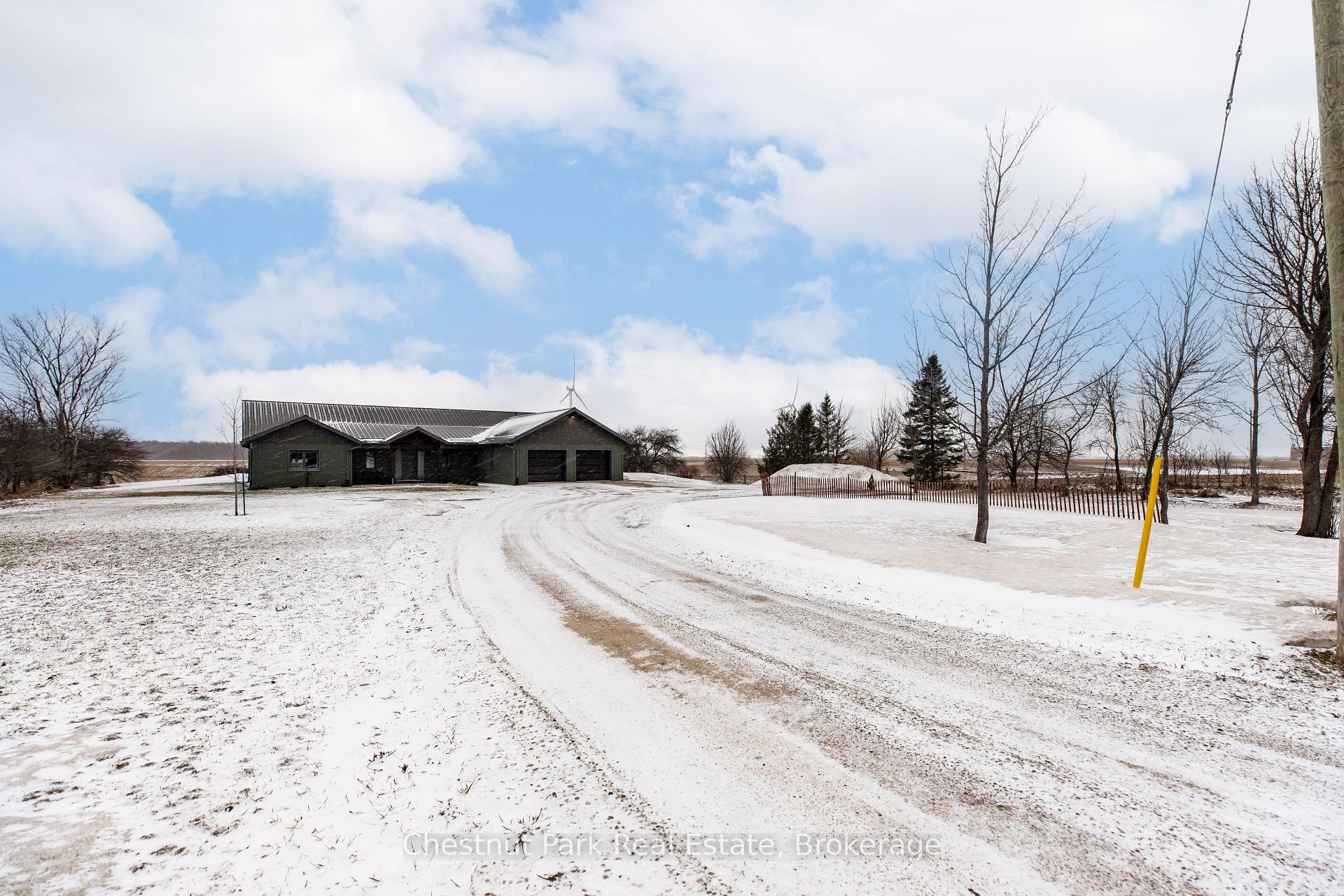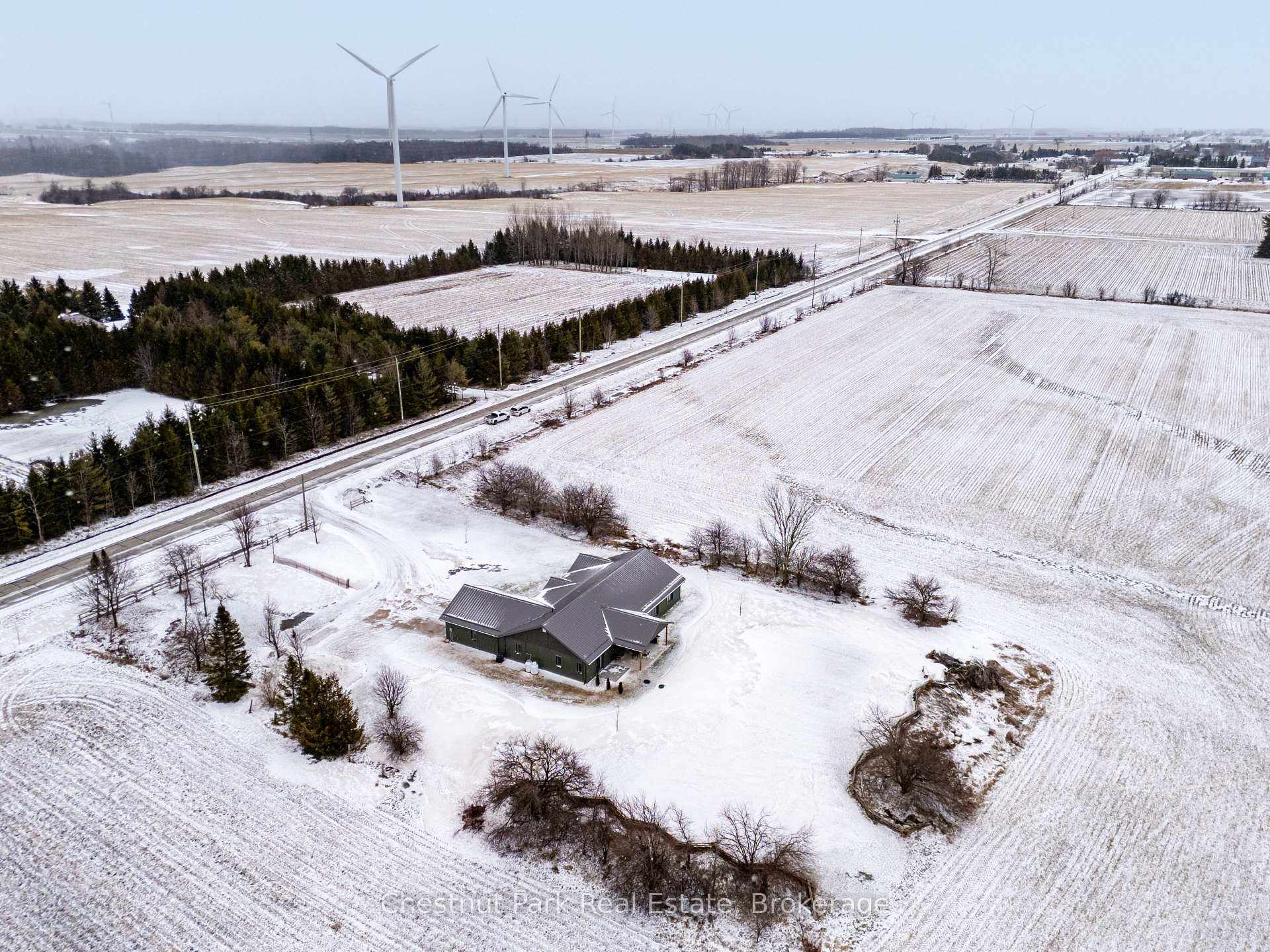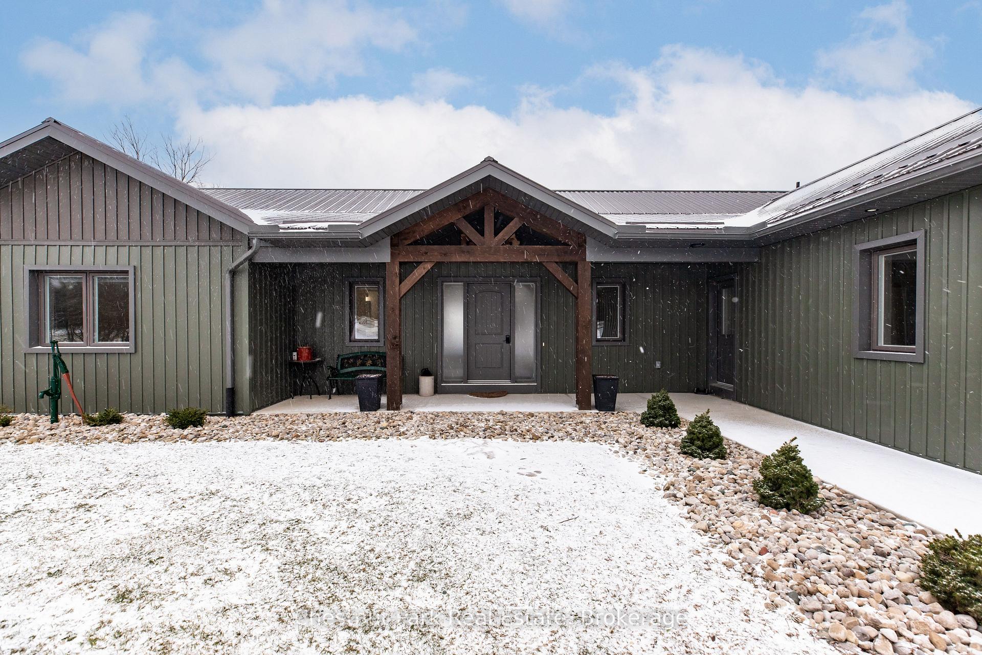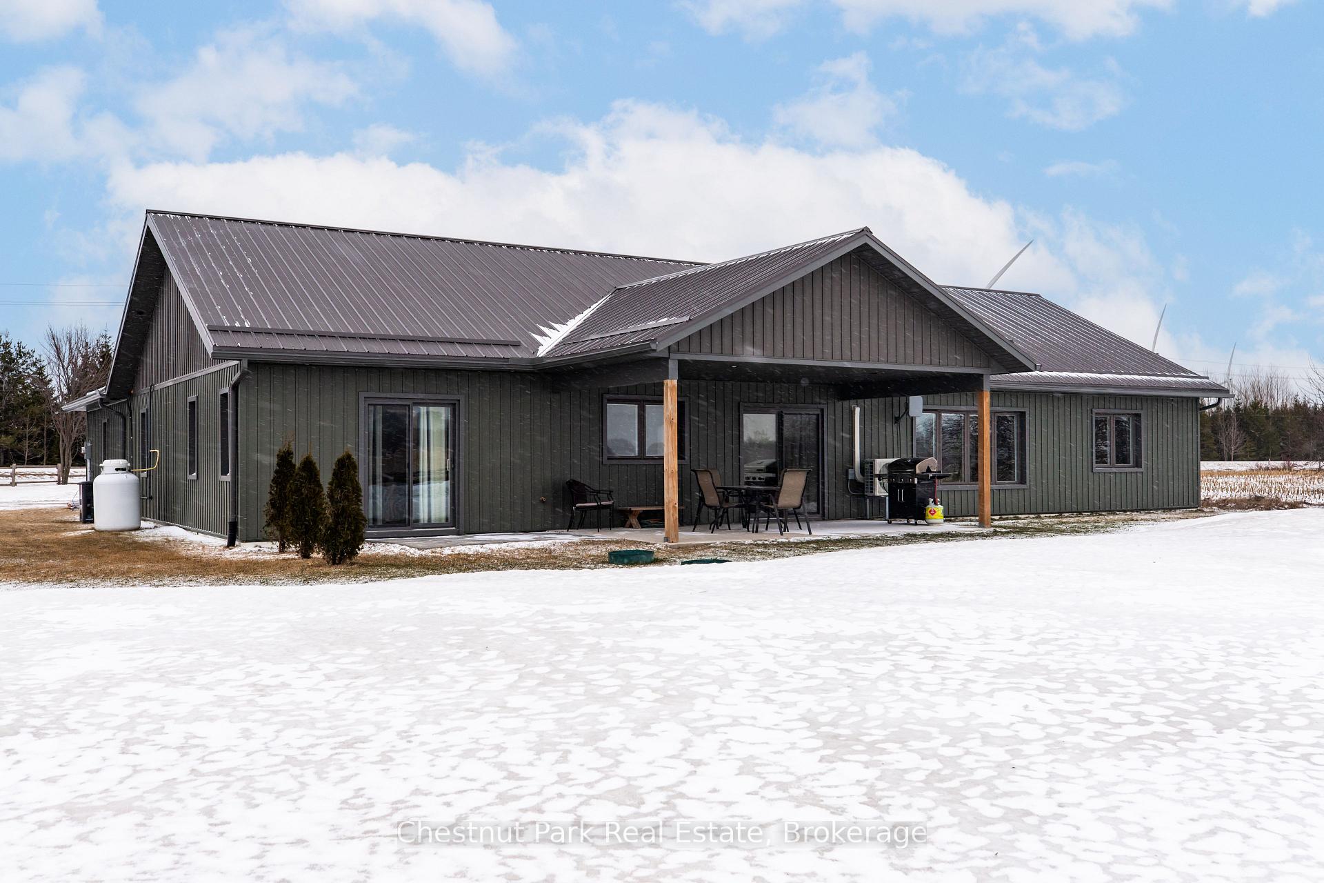 Built in 2022, this exceptional ICF bungalow sits on an acre just five minutes from the gates of Bruce Power. Constructed with ICF right to the roofline for superior durability, energy efficiency, and quiet comfort, the home welcomes you with a grand entrance, soaring ceilings, and a spacious, thoughtfully designed layout. Offering 4 bedrooms, 2 full bathrooms, and 1 half bath, the interior is enhanced with elegant custom built-ins surrounding the living room fireplace and a stylish built-in desk in the open-concept kitchen and dining area. Matching built-in cabinetry continues through the primary walk-in closet and the kitchen pantry, while additional built-ins in the generous mudroom and laundry area add both style and everyday practicality. Radiant in-floor heating runs throughout the home, complemented by separately controlled in-floor heat in the double car garage, along with on-demand hot water and a whole-home standby generator for effortless comfort and peace of mind. Covered front and rear porches provide inviting outdoor living spaces, completing this refined, modern home in an unbeatable location. Washer, Dryer, Dishwasher, Stove, Refrigerator, Most Furniture is Negotiable
