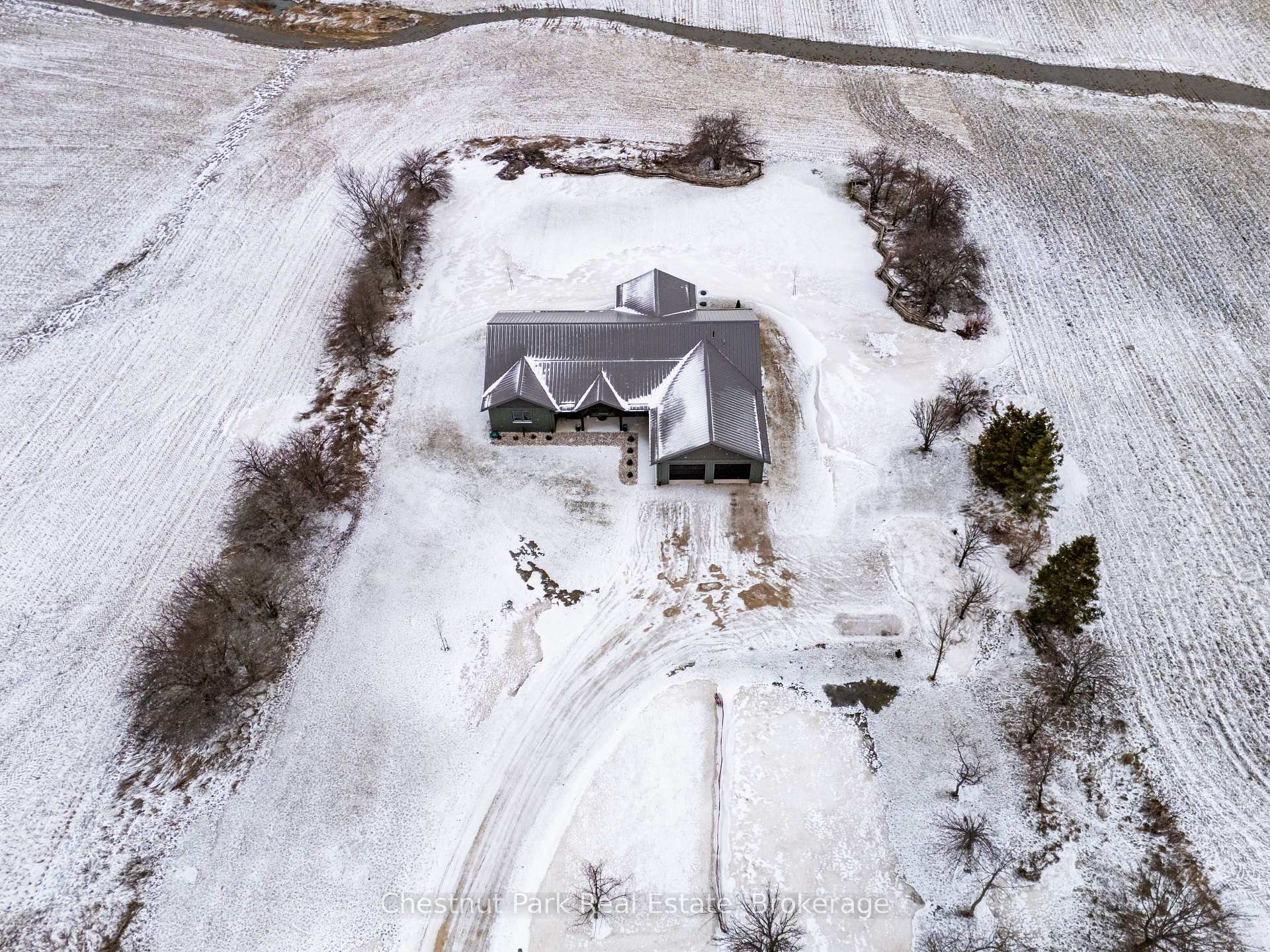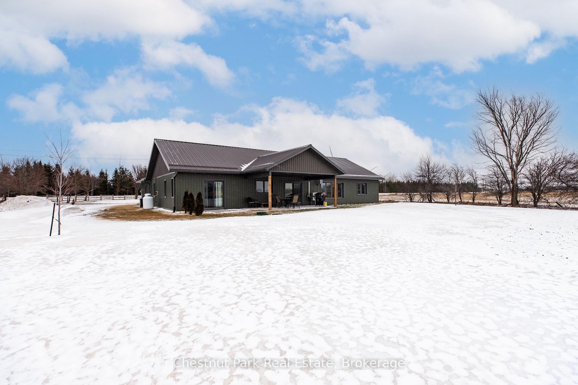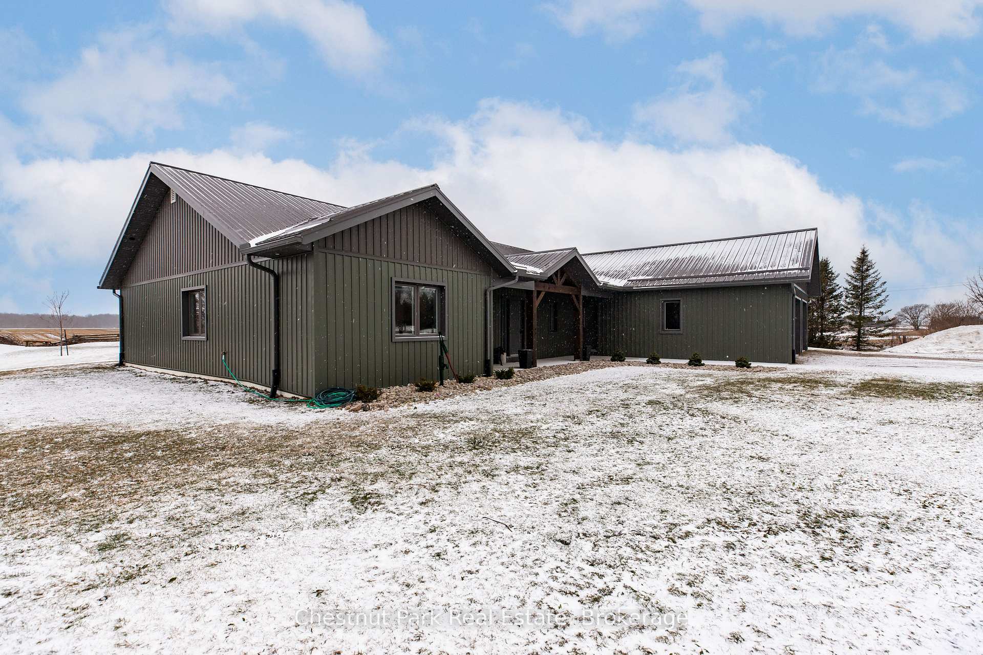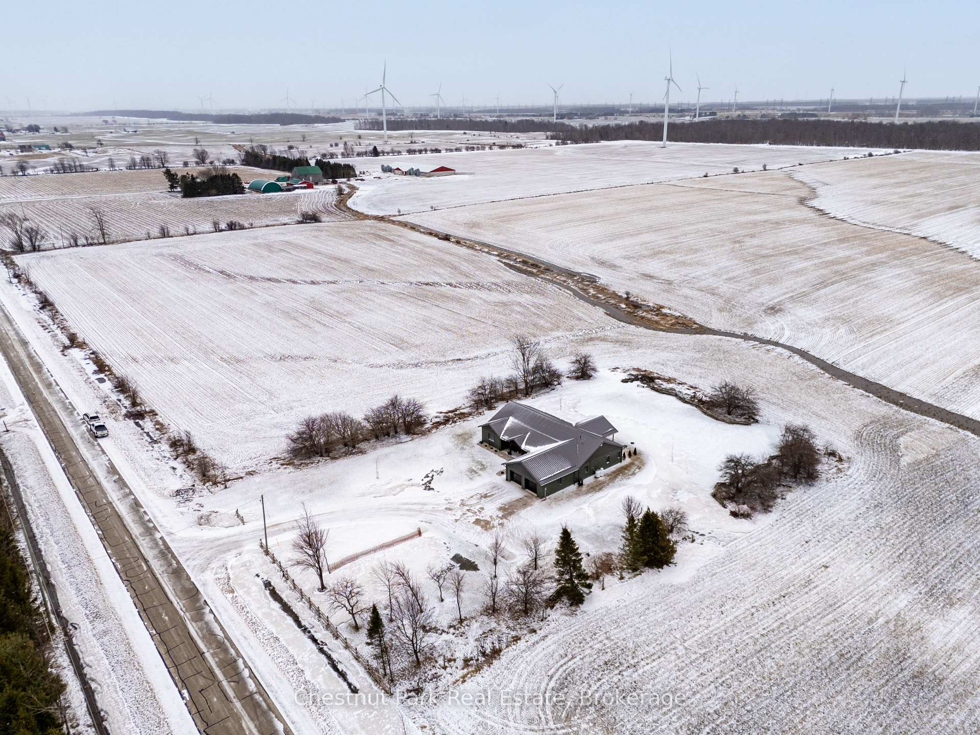 Built in 2022, this exceptional ICF bungalow sits on an acre just five minutes from the gates of Bruce Power. Constructed with ICF right to the roofline for superior durability, energy efficiency, and quiet comfort, the home welcomes you with a grand entrance, soaring ceilings, and a spacious, thoughtfully designed layout. Offering 4 bedrooms, 2 full bathrooms, and 1 half bath, the interior is enhanced with elegant custom built-ins surrounding the living room fireplace and a stylish built-in desk in the open-concept kitchen and dining area. Matching built-in cabinetry continues through the primary walk-in closet and the kitchen pantry, while additional built-ins in the generous mudroom and laundry area add both style and everyday practicality. Radiant in-floor heating runs throughout the home, complemented by separately controlled in-floor heat in the double car garage, along with on-demand hot water and a whole-home standby generator for effortless comfort and peace of mind. Covered front and rear porches provide inviting outdoor living spaces, completing this refined, modern home in an unbeatable location. Washer, Dryer, Dishwasher, Stove, Refrigerator, Most Furniture is Negotiable