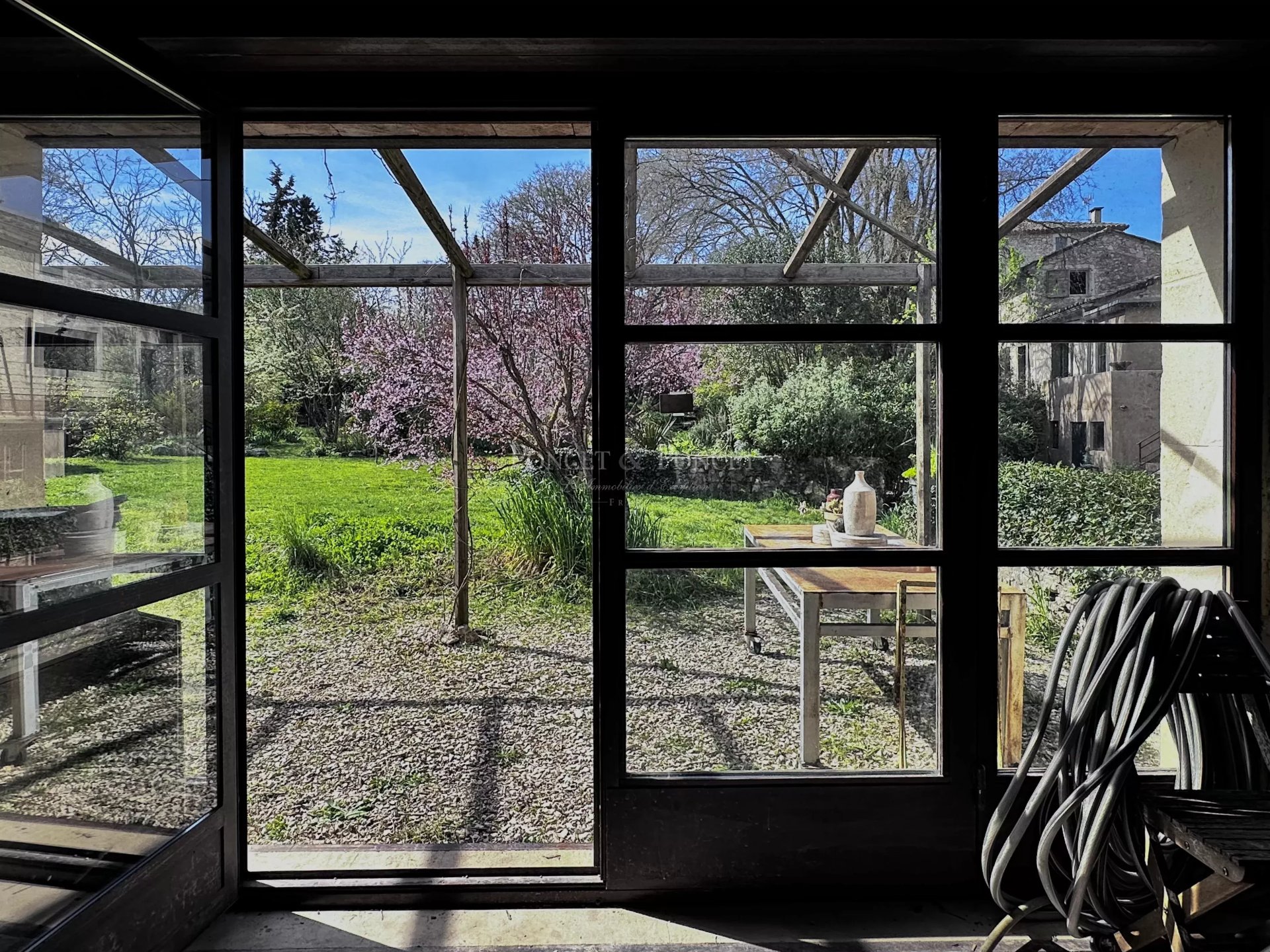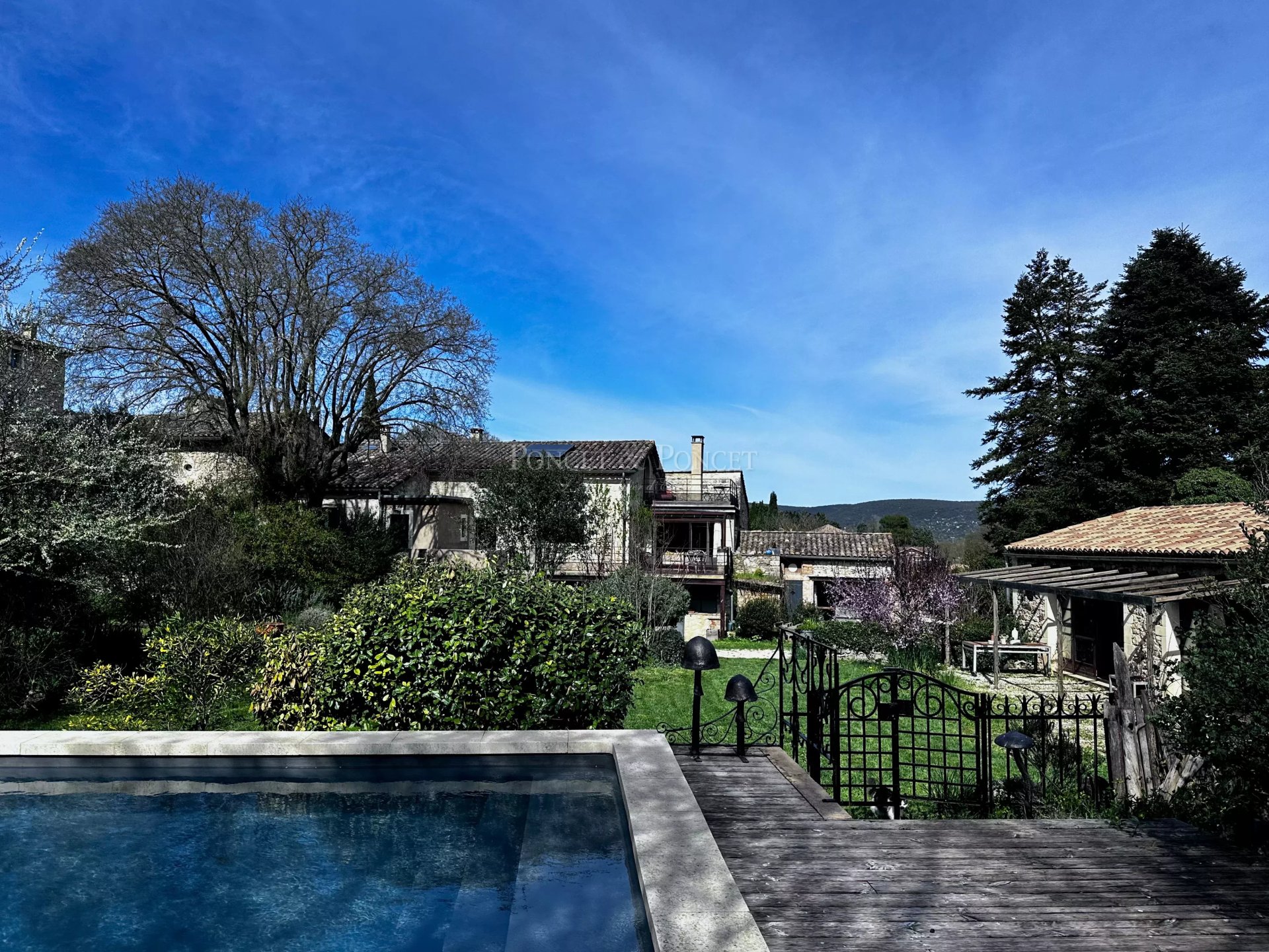 The grounds of approximately 2,500 sqm are entirely designed according to permaculture principles. They feature a variety of fruit trees providing harvests throughout the seasons, as well as a vegetable garden and a well in need of renovation. A 4 x 7 m swimming pool with an outdoor shower completes the outdoor space, fully sheltered from view.