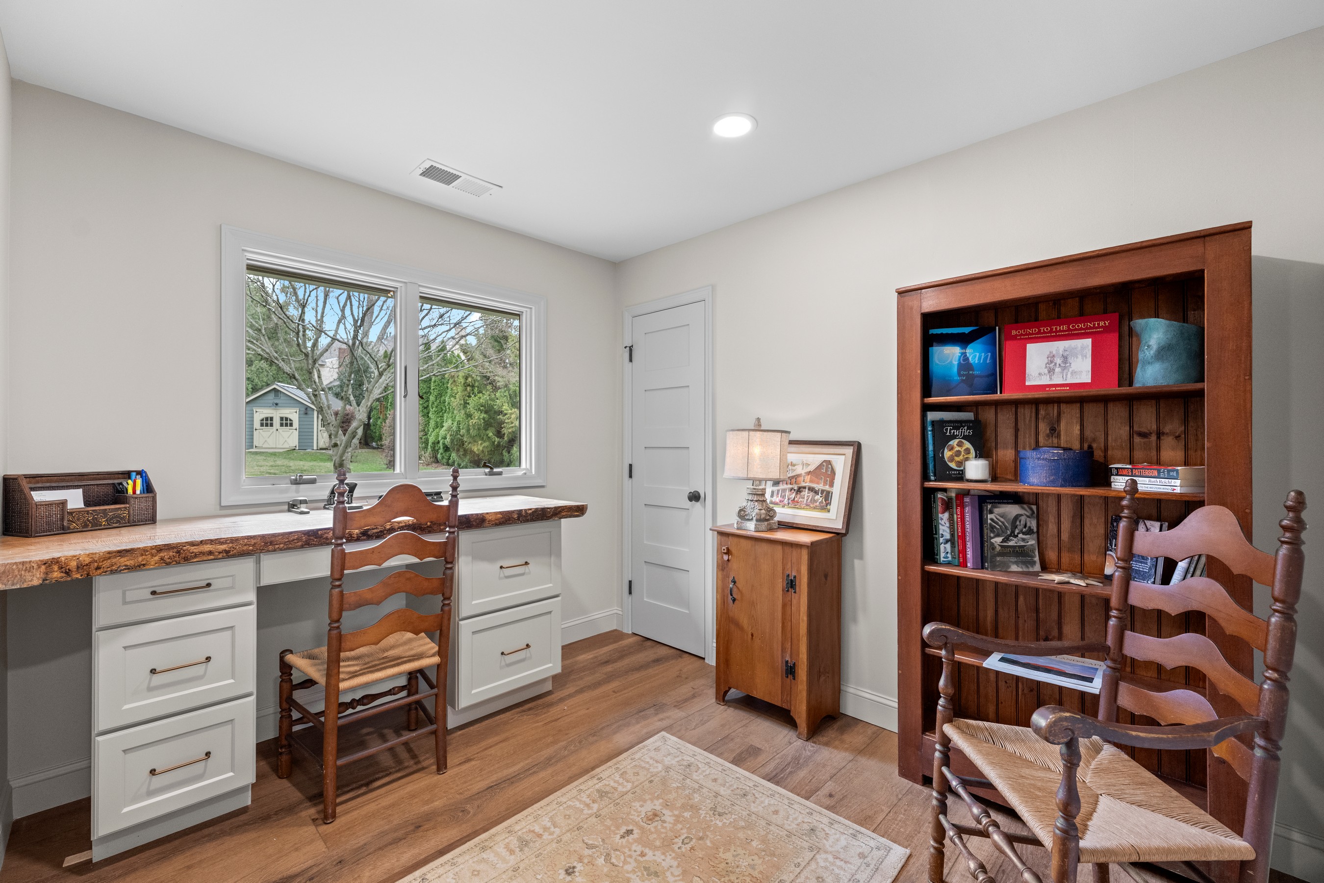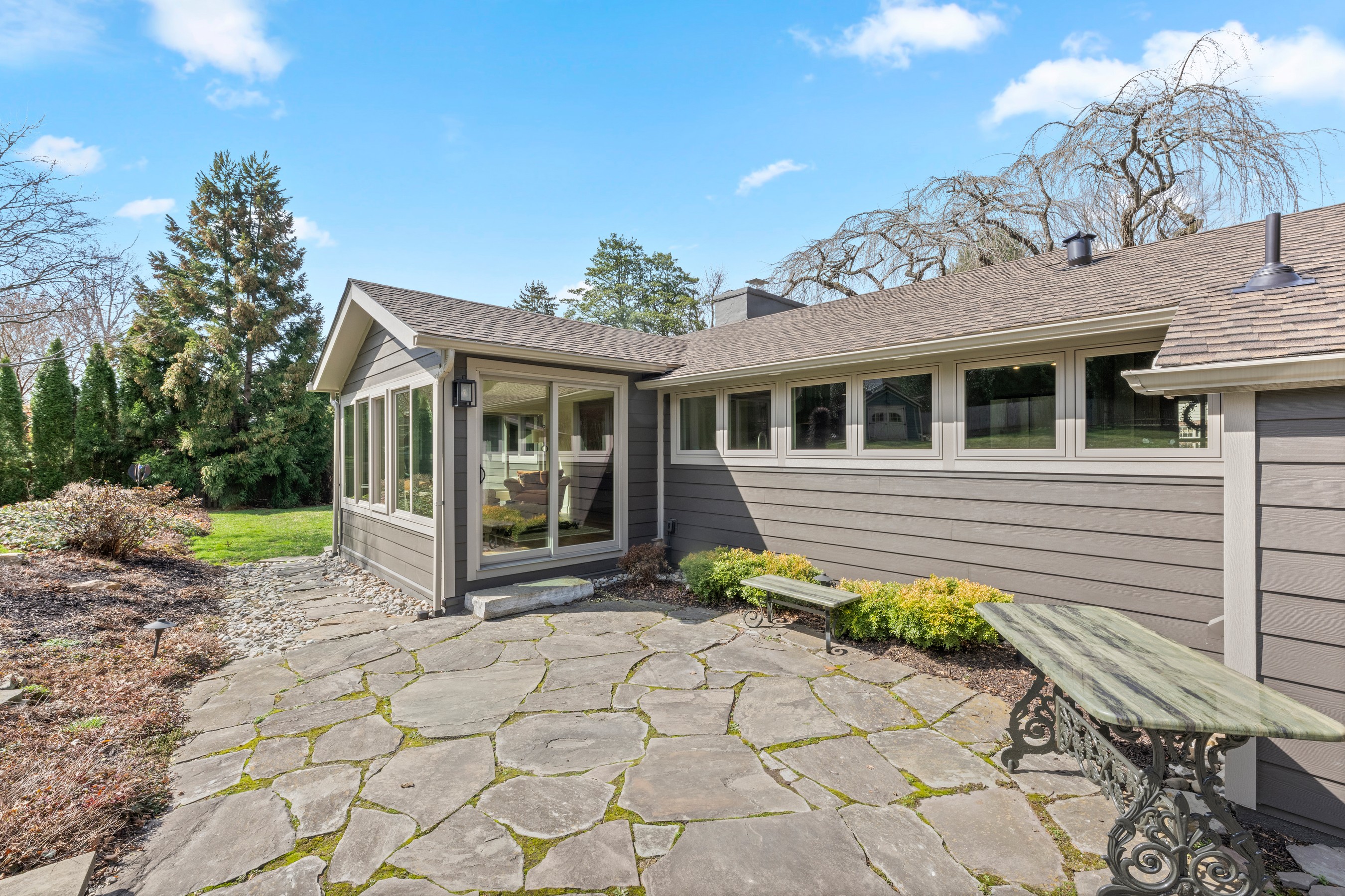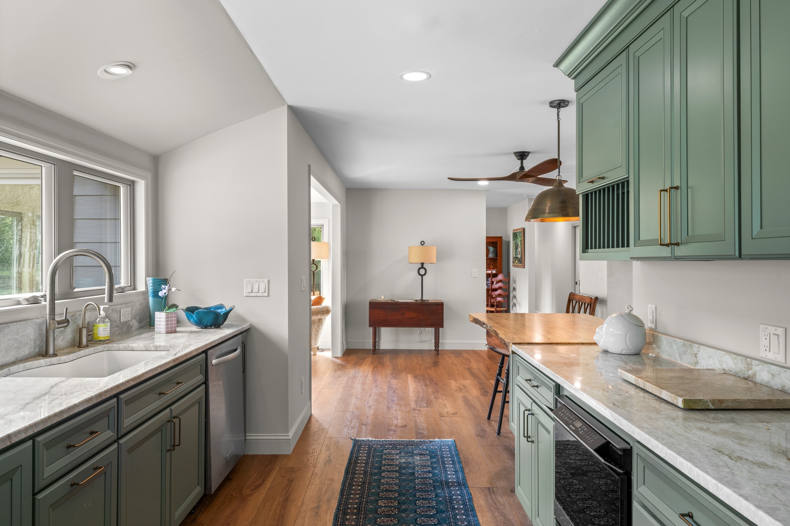 Discover an exceptional opportunity to own a beautifully renovated ranch home nestled on a quiet private lane in Centreville. This immaculate residence, fully reimagined in 2024, blends modern elegance with effortless comfort. Step through the welcoming center entrance into a light-filled, open-concept living space designed for both everyday living and seamless entertaining. The heart of the home is a stunning gourmet kitchen featuring a large island, stainless steel appliances, a six-burner range, and abundant custom cabinetry. Perfectly positioned, the kitchen flows into the dining area, spacious living room, and a bright sunroom overlooking the serene backyard—creating an ideal setting for gatherings of any size. A secondary front entrance leads to a thoughtfully designed mudroom complete with built-in storage, laundry, wine refrigerator, and even a tiled dog wash—combining practicality with elevated style. The private bedroom wing offers a tranquil retreat, highlighted by a luxurious primary suite with a spa-inspired bath, including a soaking tub and walk-in shower. Two additional bedrooms—one currently used as a home office—provide flexibility, complemented by a well-appointed half bath. Step outside to your own backyard oasis, where beautifully curated landscaping, retaining walls, and extensive hardscaping surround a peaceful pond with a fountain and specimen plantings. A flagstone terrace sets the stage for unforgettable outdoor entertainment or quiet relaxation. This comprehensive 2024 renovation includes a new roof, Hardie-style siding, Gutters with Leaf Guard filters, HVAC system, and a complete interior transformation with new flooring, doors, appliances, and fixtures. Move-in ready and truly turnkey, this exceptional home is ready to welcome its next owner.