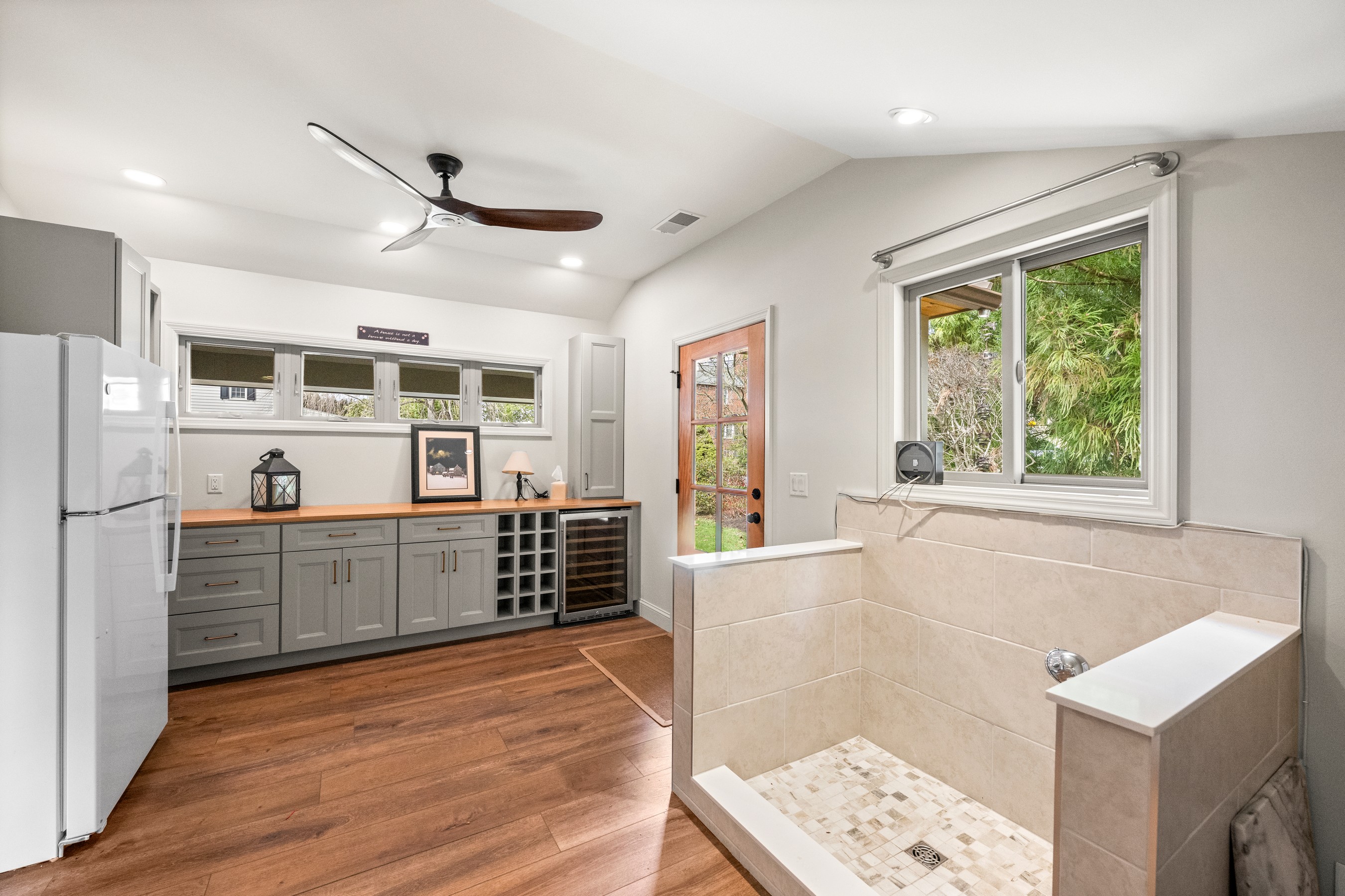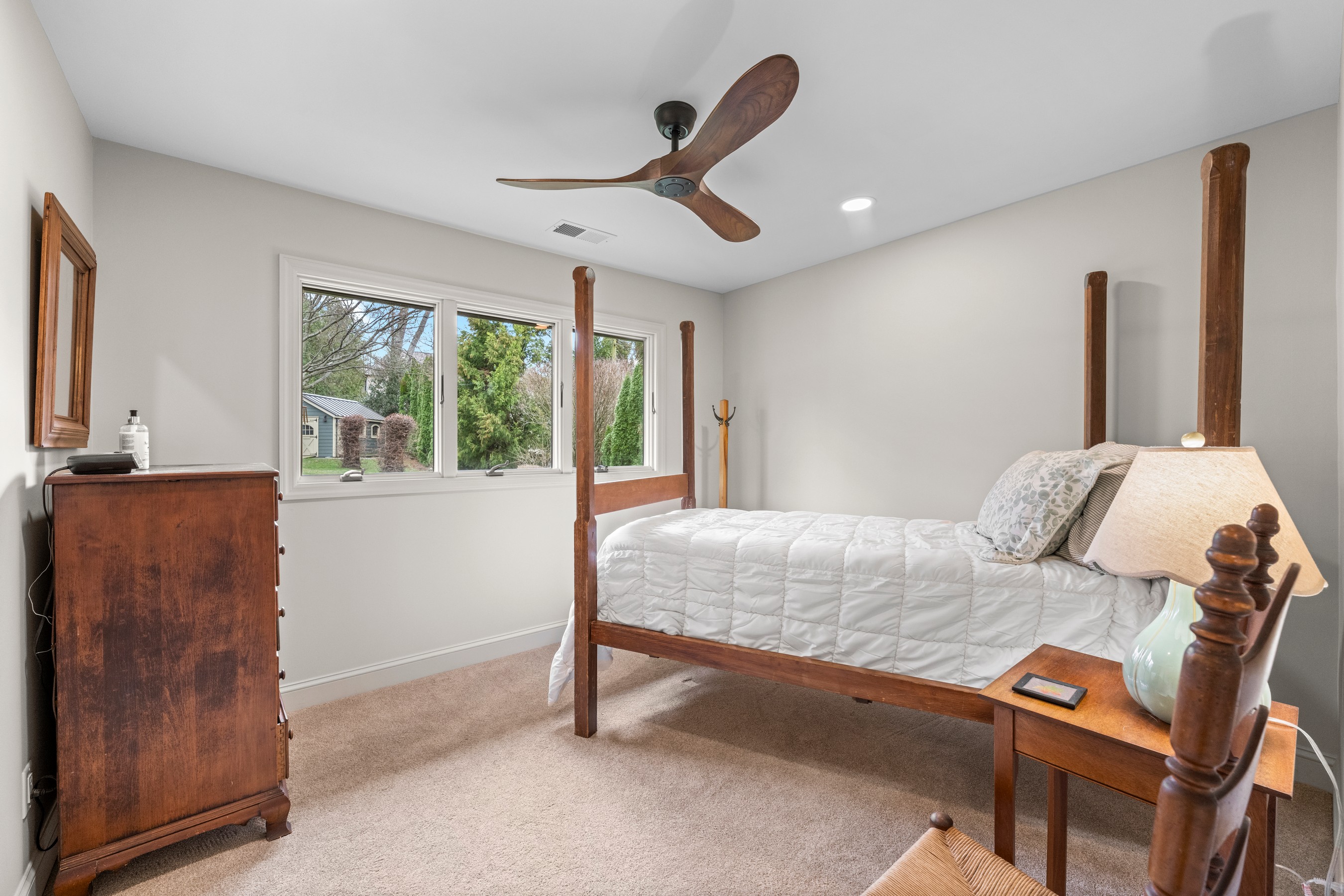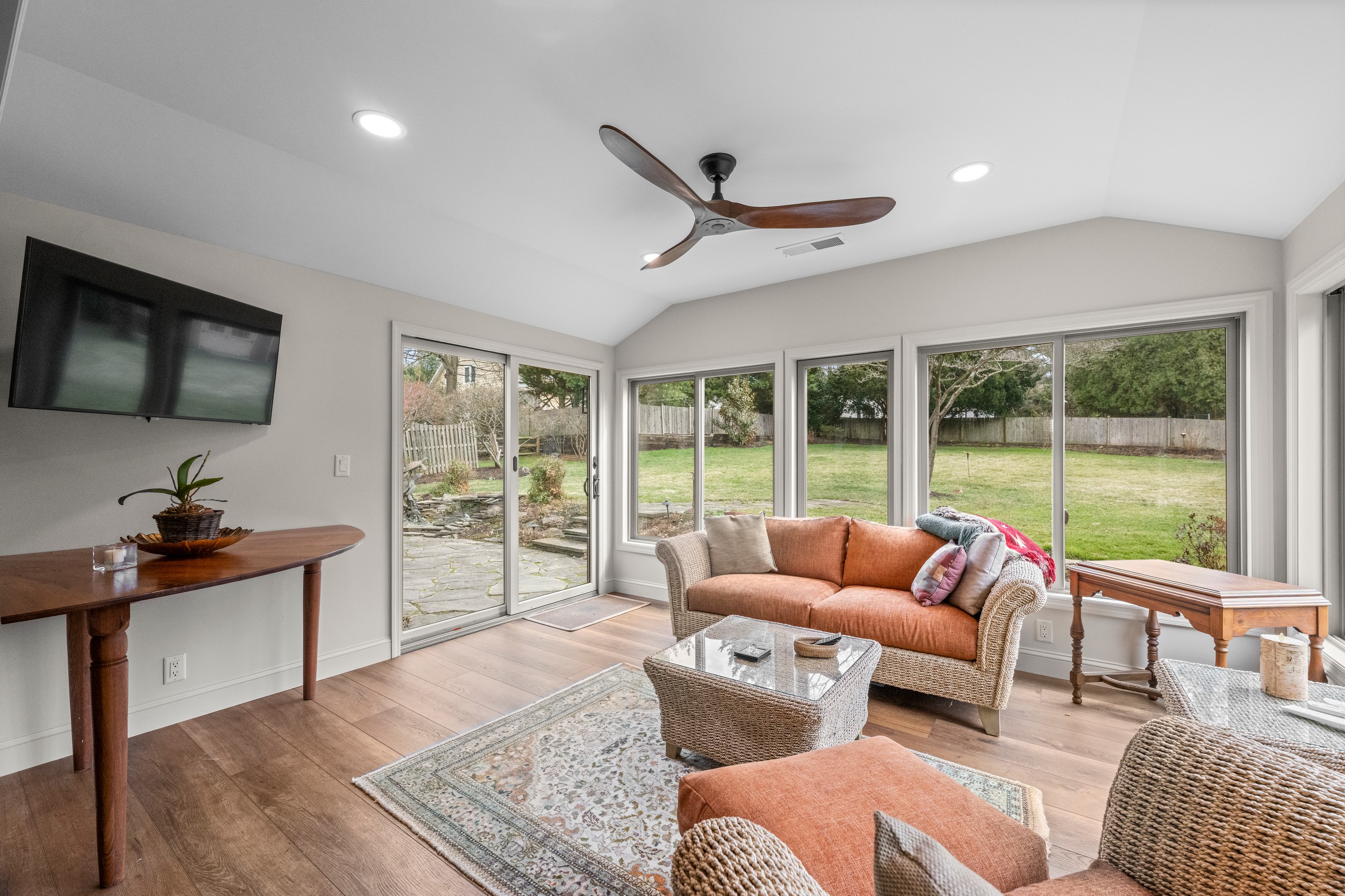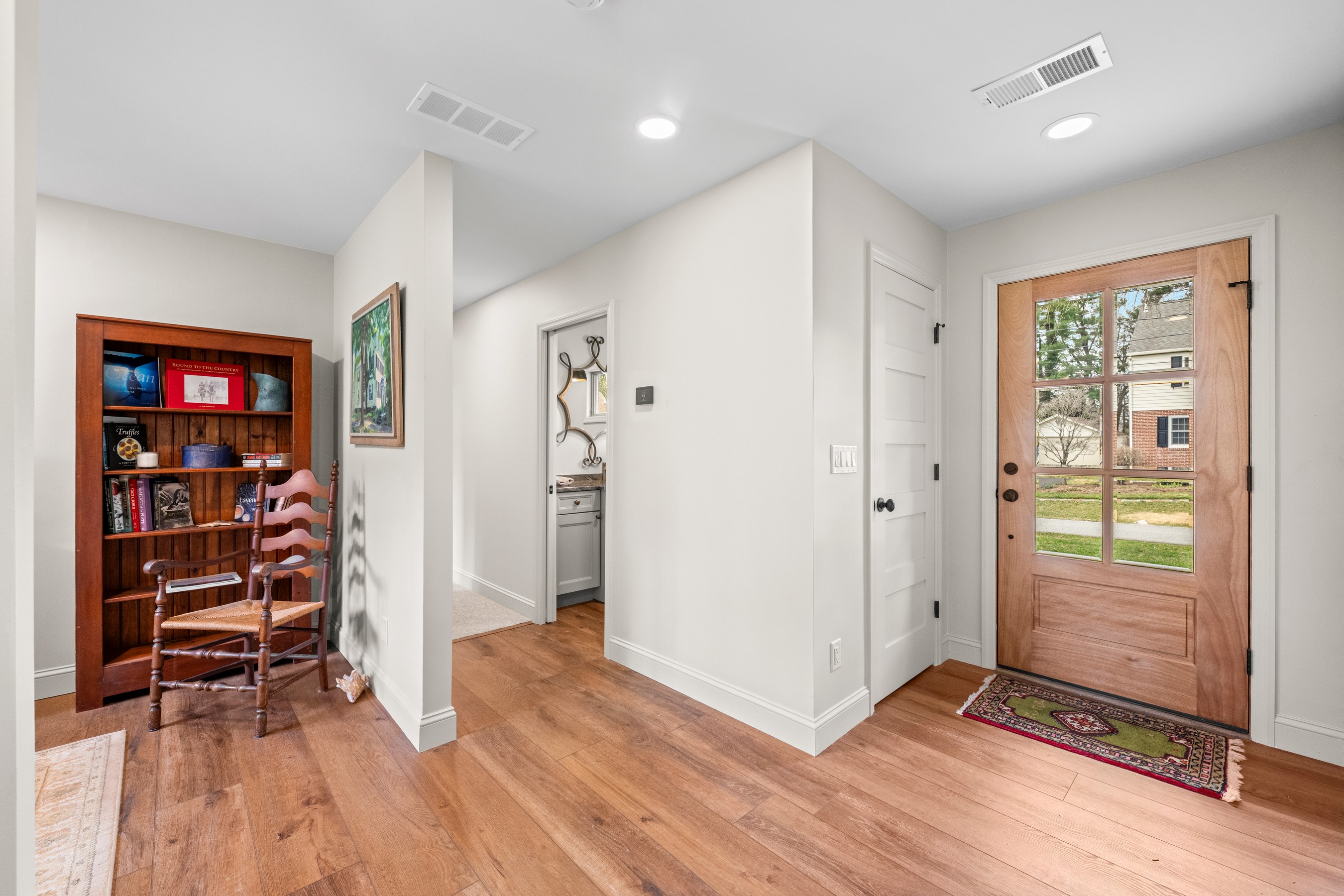 Discover an exceptional opportunity to own a beautifully renovated ranch home nestled on a quiet private lane in Centreville. This immaculate residence, fully reimagined in 2024, blends modern elegance with effortless comfort. Step through the welcoming center entrance into a light-filled, open-concept living space designed for both everyday living and seamless entertaining. The heart of the home is a stunning gourmet kitchen featuring a large island, stainless steel appliances, a six-burner range, and abundant custom cabinetry. Perfectly positioned, the kitchen flows into the dining area, spacious living room, and a bright sunroom overlooking the serene backyard—creating an ideal setting for gatherings of any size. A secondary front entrance leads to a thoughtfully designed mudroom complete with built-in storage, laundry, wine refrigerator, and even a tiled dog wash—combining practicality with elevated style. The private bedroom wing offers a tranquil retreat, highlighted by a luxurious primary suite with a spa-inspired bath, including a soaking tub and walk-in shower. Two additional bedrooms—one currently used as a home office—provide flexibility, complemented by a well-appointed half bath. Step outside to your own backyard oasis, where beautifully curated landscaping, retaining walls, and extensive hardscaping surround a peaceful pond with a fountain and specimen plantings. A flagstone terrace sets the stage for unforgettable outdoor entertainment or quiet relaxation. This comprehensive 2024 renovation includes a new roof, Hardie-style siding, Gutters with Leaf Guard filters, HVAC system, and a complete interior transformation with new flooring, doors, appliances, and fixtures. Move-in ready and truly turnkey, this exceptional home is ready to welcome its next owner.