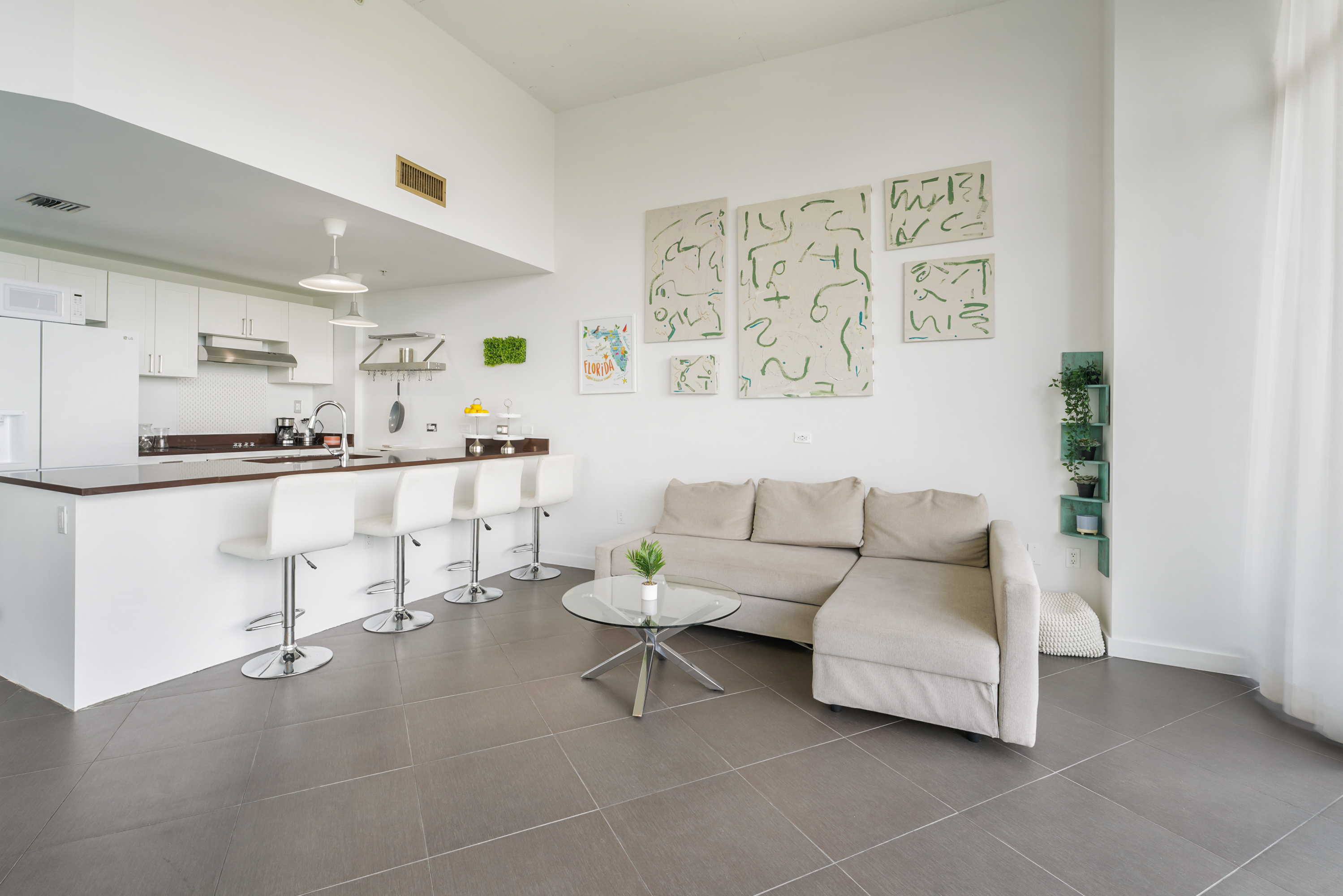 Stunning fully furnished 2-bed, 2-bath gem nestled in the heart of Midtown! This residence is flooded with natural light, boasts captivating city views, and showcases unique 14-foot floor-to-ceiling glass windows that are exclusive to this level. 4Midtown presents an array of amenities including a large pool deck with a Jacuzzi, a well-equipped gym with a yoga room, a sauna, steam room, barbecue area, a clubhouse, and round-the-clock concierge service. Convenience is paramount with this location, as you'll be within walking distance of the vibrant Miami Design District, shops, cafes, restaurants, and much more. Rent includes water, basic cable, and basic internet services. Discover a lifestyle of opulence and sophistication in the heart of Midtown!