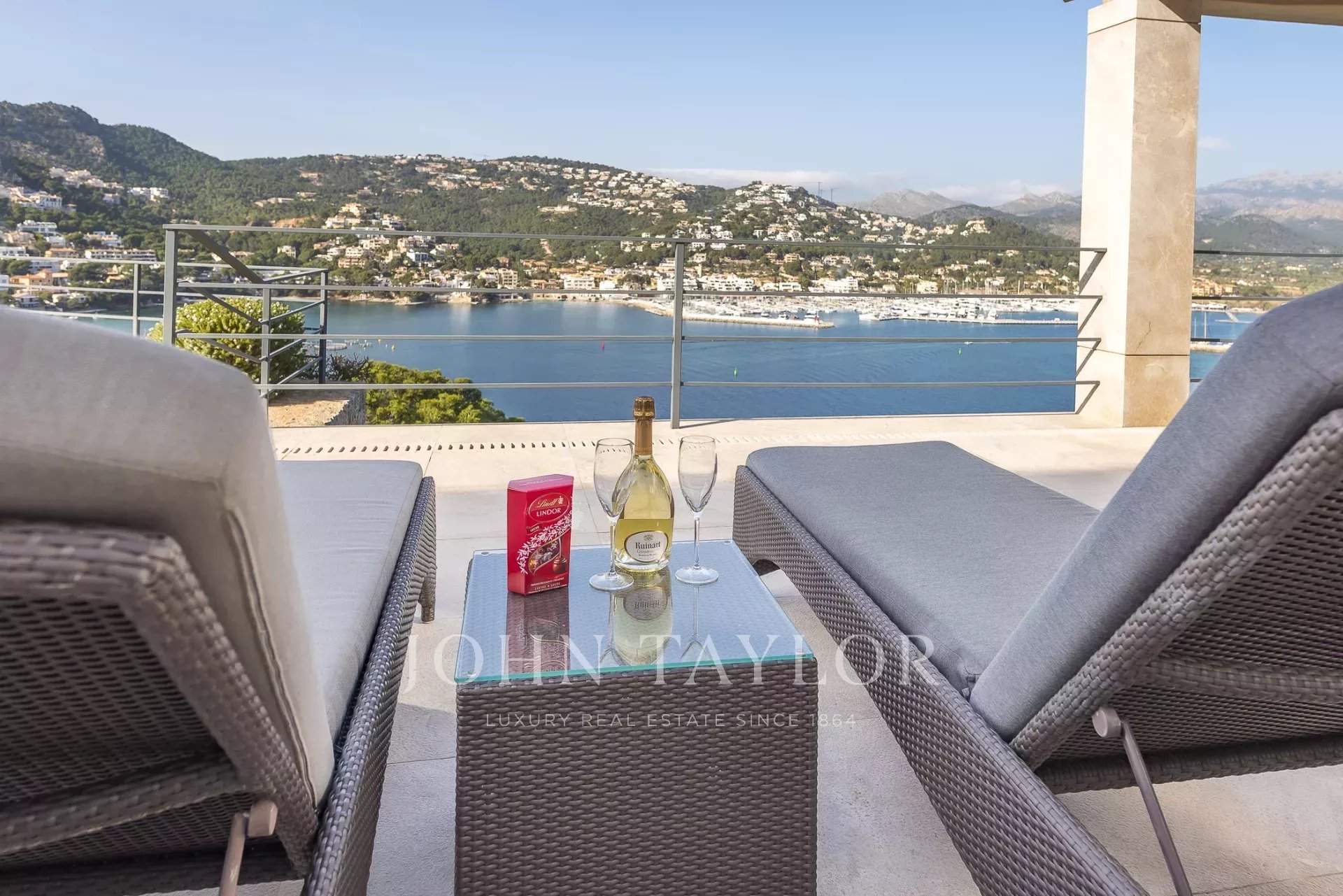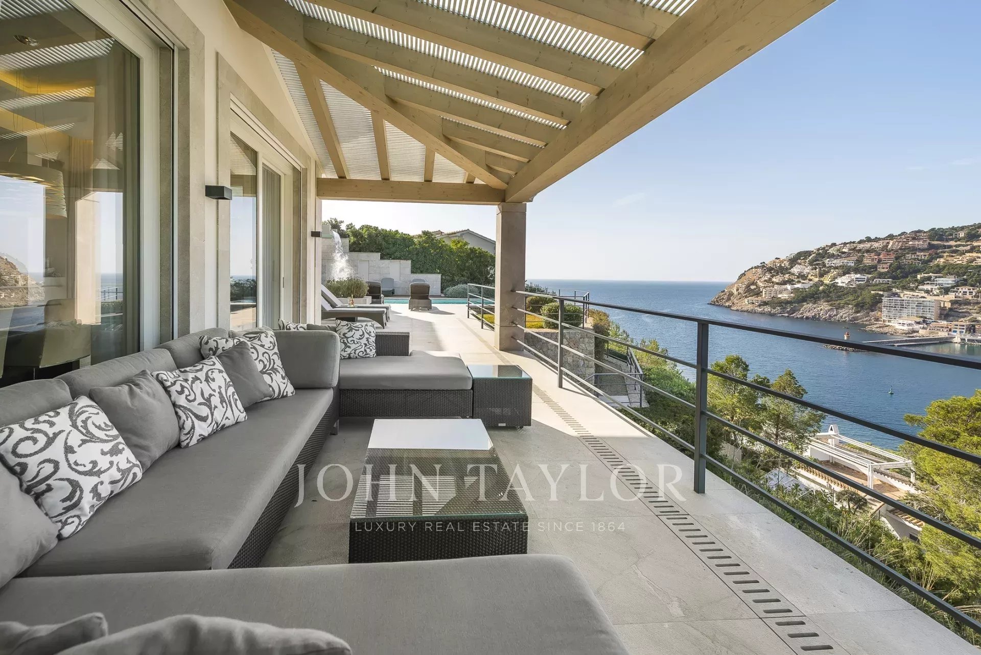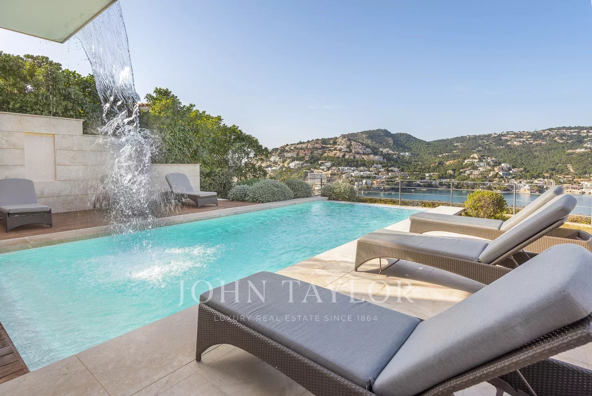 Luxury villa in top location. In this newly built villa, 5 bedrooms with en-suite bathrooms are distributed over 600 m2 of living space. Modern construction and design run through the entire house. The fully equipped open-plan kitchen leaves nothing to be desired. Whether from the bedroom, the cosy living area with fireplace, or the kitchen, every room has a breathtaking view over the bay of Puerto de Andratx and the harbour. Outside, you will find the heated infinity pool with a chill-out area and a large dining table with a BBQ. A special highlight is the in-house sauna, from which you can enjoy a magnificent view over the sea thanks to the large glass front. Breathtaking sunsets are guaranteed here. The villa has its own domotic system which can be controlled from any location via an iPad. The harbour and the promenade of Puerto de Andratx with its numerous boutiques, art galleries, and first-class restaurants can be reached on foot in just a few minutes. Golf lovers will enjoy the nearby golf course in Camp de Mar, just one of Mallorca's many golf courses. The island's capital, Palma, is about 20 minutes away by car, and the airport can be reached in about 25 minutes by car.ETV/7015The Port of Andrach (officially and in Catalan, Port d'Andratx) is a natural port of the Balearic Islands, surrounded by coves with transparent waters such as Cala Llamp, Cala Moragues, and Cala d'Egos. This modern port town, with 3,000 inhabitants, has gone from being a former fishermen's refuge to being one of the most important and visited tourist centers in Mallorca, thanks to its nautical activity, which is conducive to very exclusive residential tourism. El Puerto is a cosmopolitan and lively place, where many cultures mix and shopping, sun, and nightlife are combined. It also offers an infinity of activities related to the sea. However, it has one of the best-equipped marinas on the Islands, the Puerto de Andrach Sailing Club, with about 500 berths occupied by sports and pleasure boats. Shops and restaurants with pleasant terraces overlooking the sea overlook the promenade, which leads to the lighthouse and the Club de Vela, passing through the small torrent des Saluet. The Port of Andrach has a select hotel infrastructure and also some of the most renowned establishments in the island's gastronomic offer. In the afternoon, it becomes one of the liveliest areas of the municipality. From the port, it is possible to go to Sa Mola, from where you can admire a splendid sunset and the open sea with the island of Dragonera.
